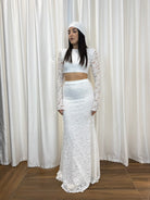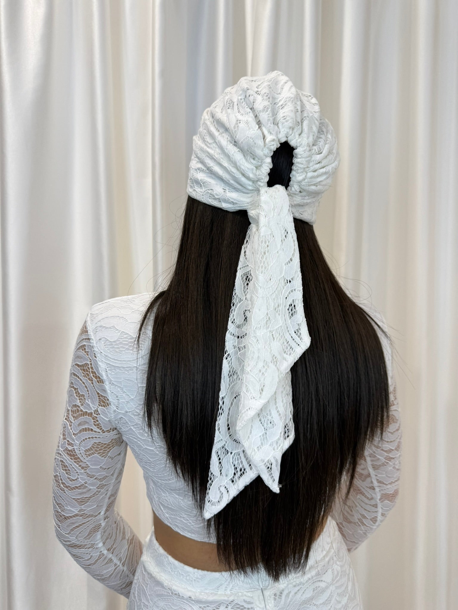 Questo foulard in pizzo bianco aggiunge un tocco glamour a qualsiasi look, perfetto per impreziosire un outfit estivo o cerimonia con stile e personalità.