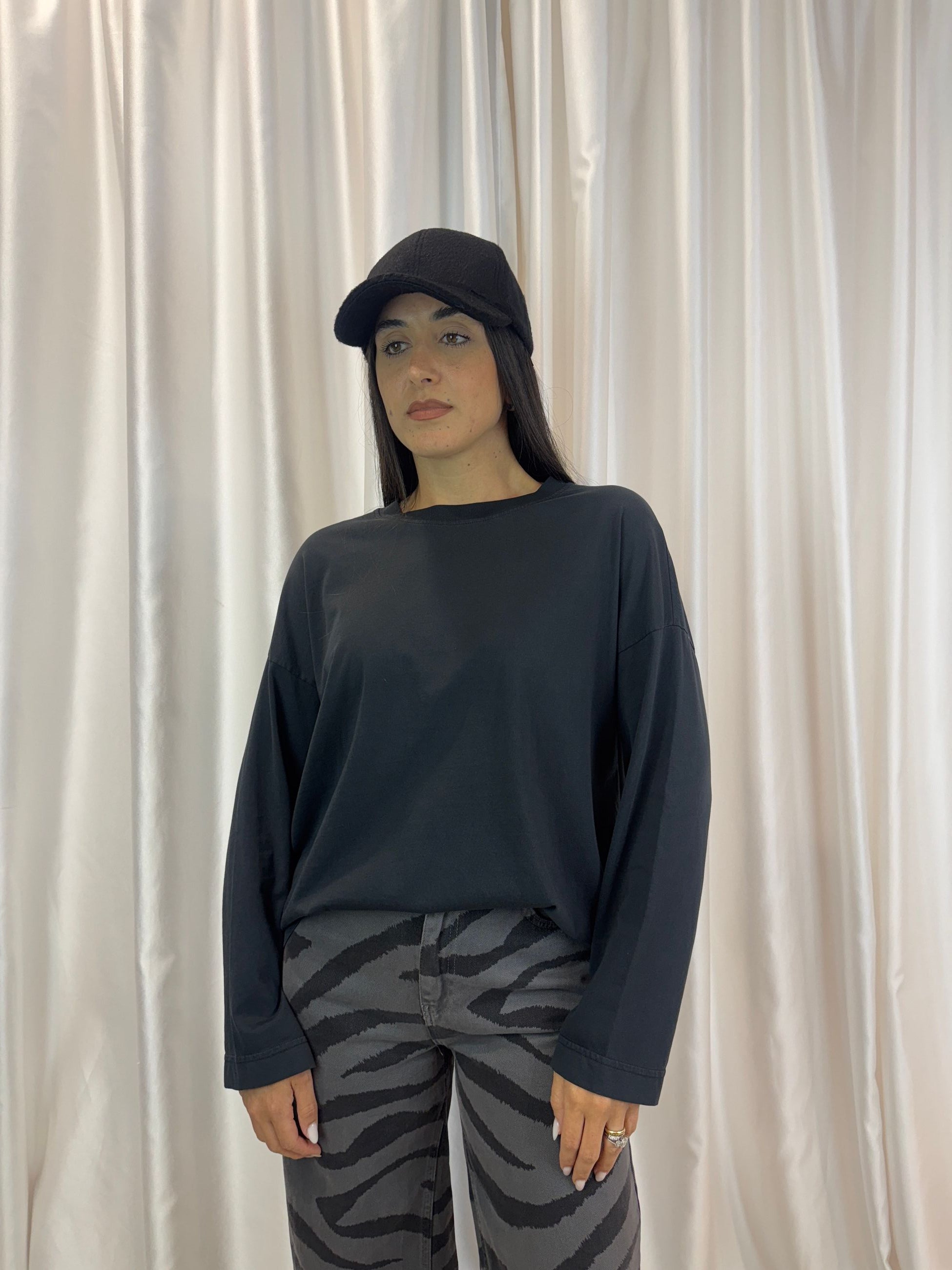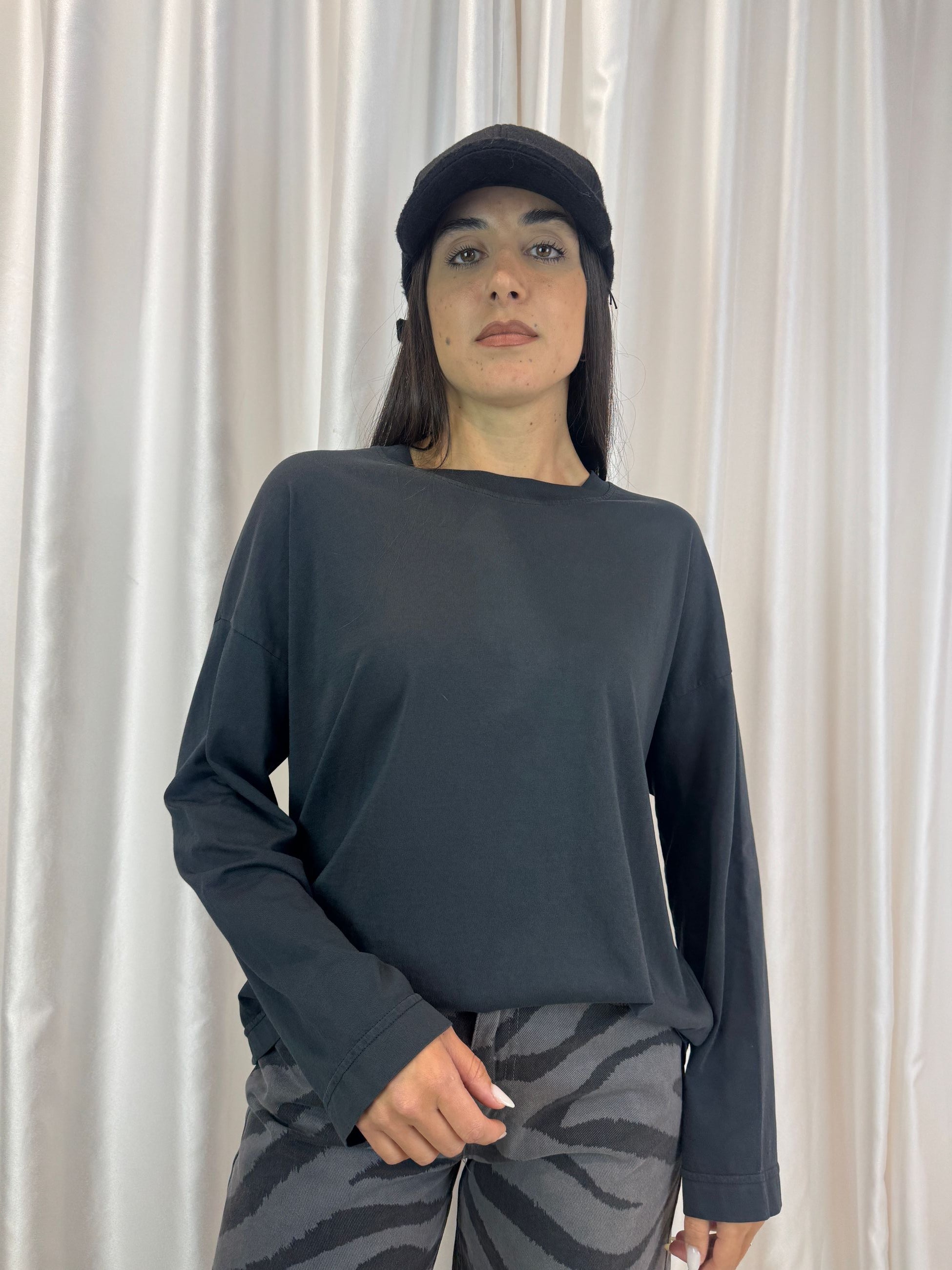 T-shirt manica lunga in cotone asfalto – Haveone