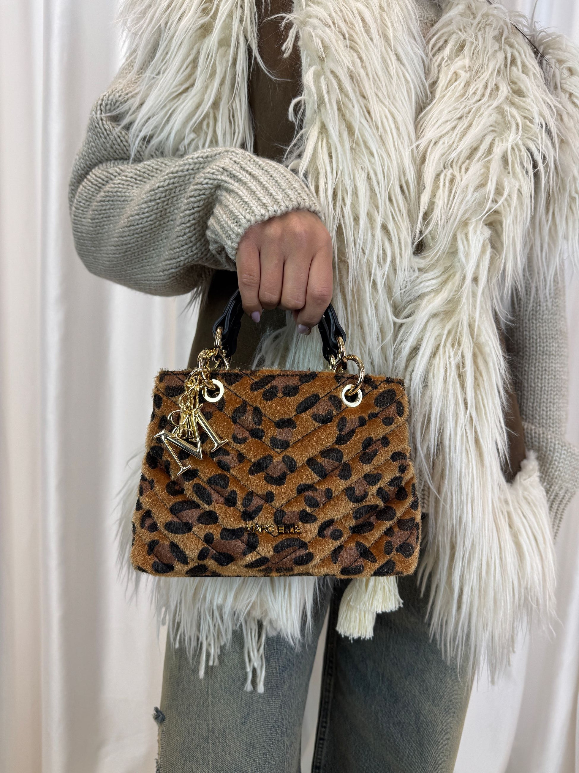 La borsa Arisu targata Marc Ellis unisce eleganza e funzionalità con i suoi manici impreziositi da ciondoli dorati e la tracolla rimovibile per diverse modalità di trasporto. Realizzata in eco cavallino matelassé, presenta una finitura raffinata e resistente. La chiusura con pattina garantisce sicurezza e praticità, rendendo questa borsa un accessorio di stile ideale per chi cerca qualità e design distintivo.