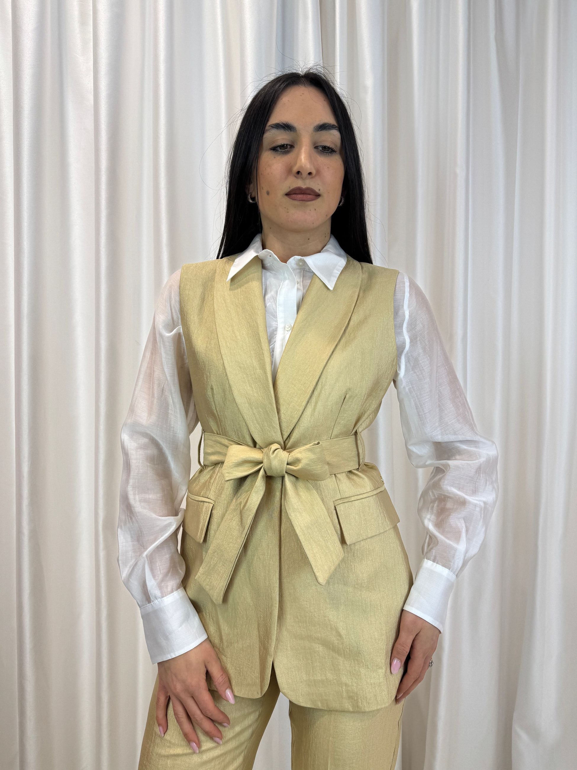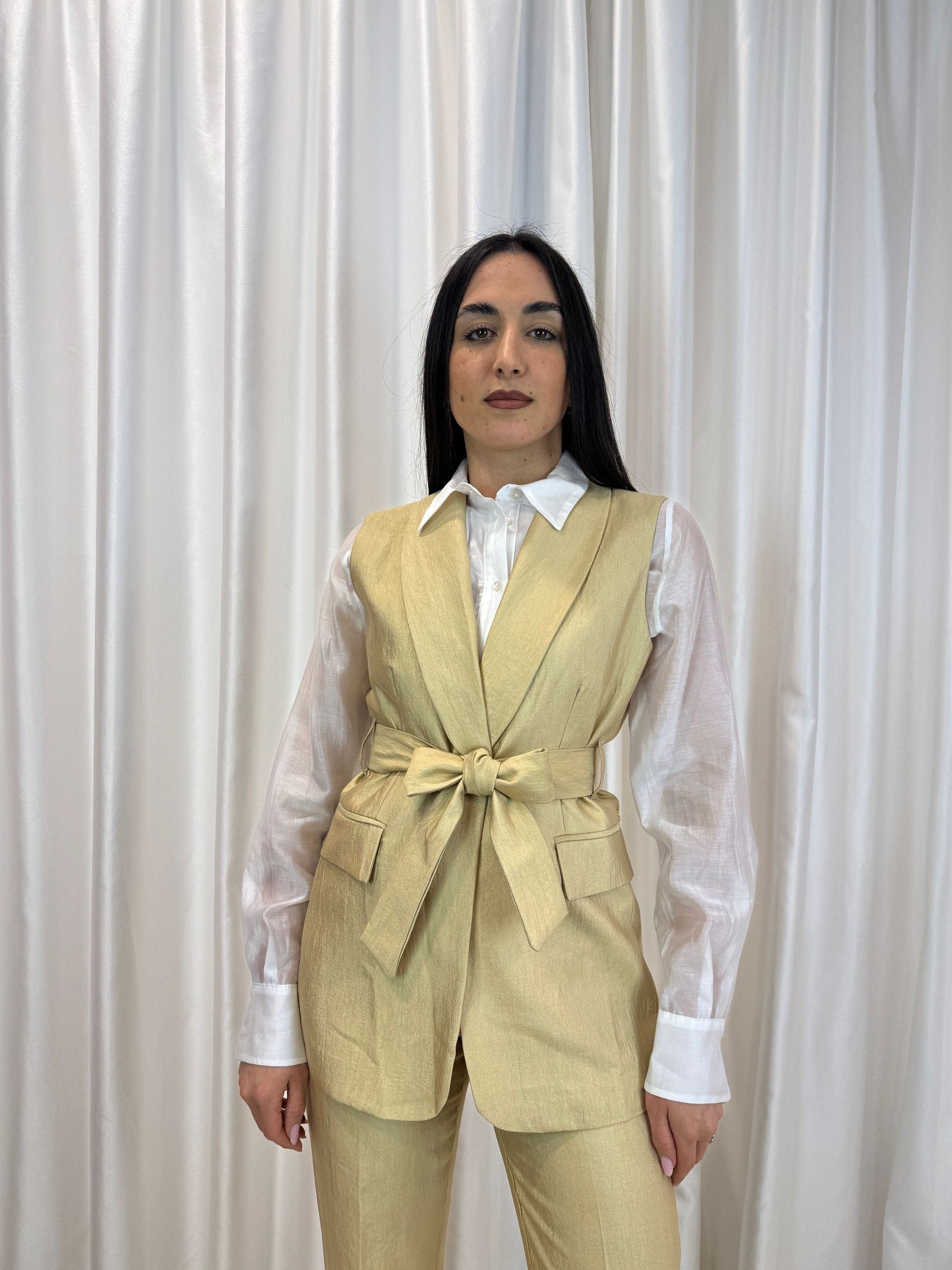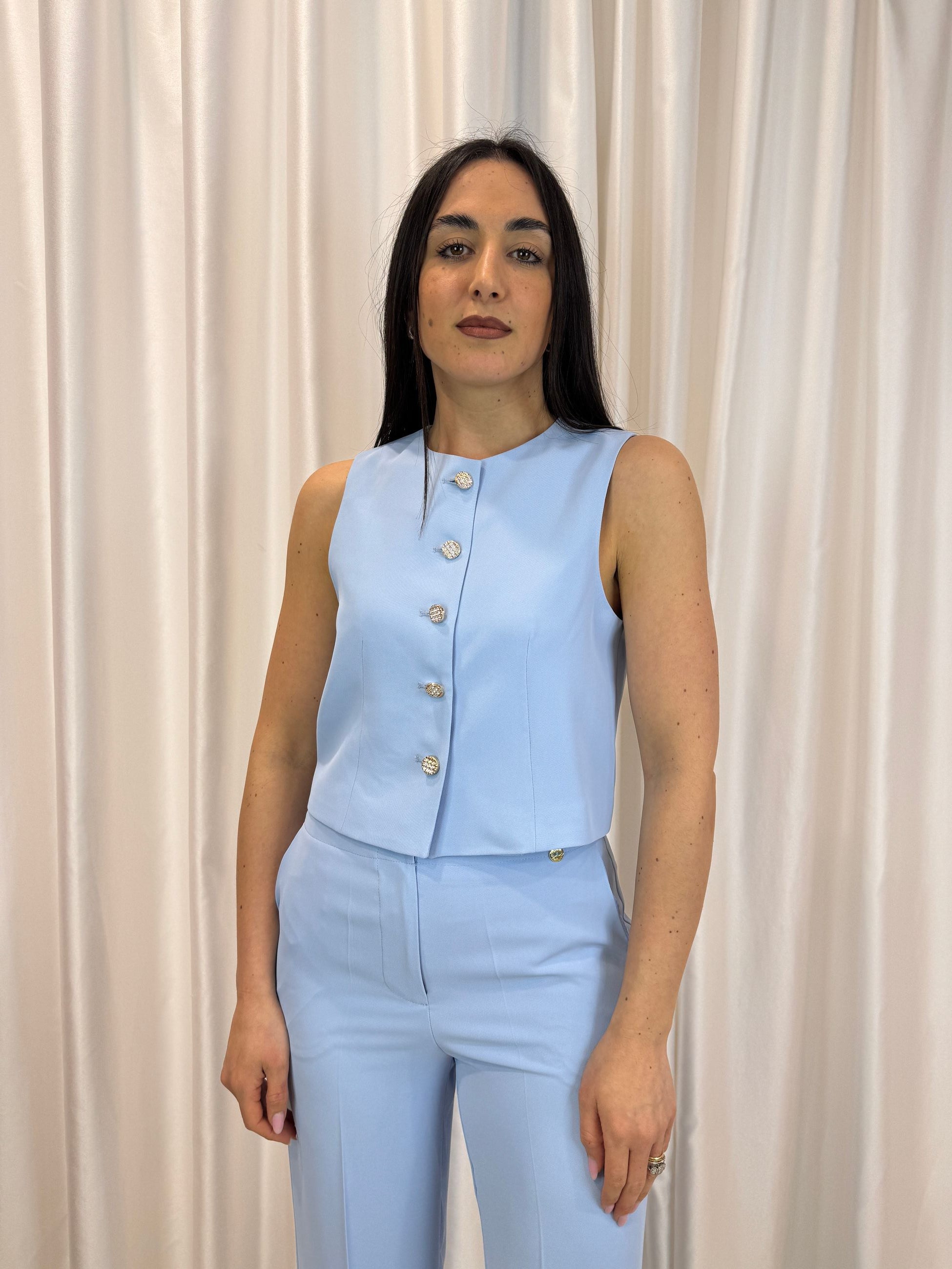 Gilet in cady con bottoni gioiello celeste - Erica Bellucci