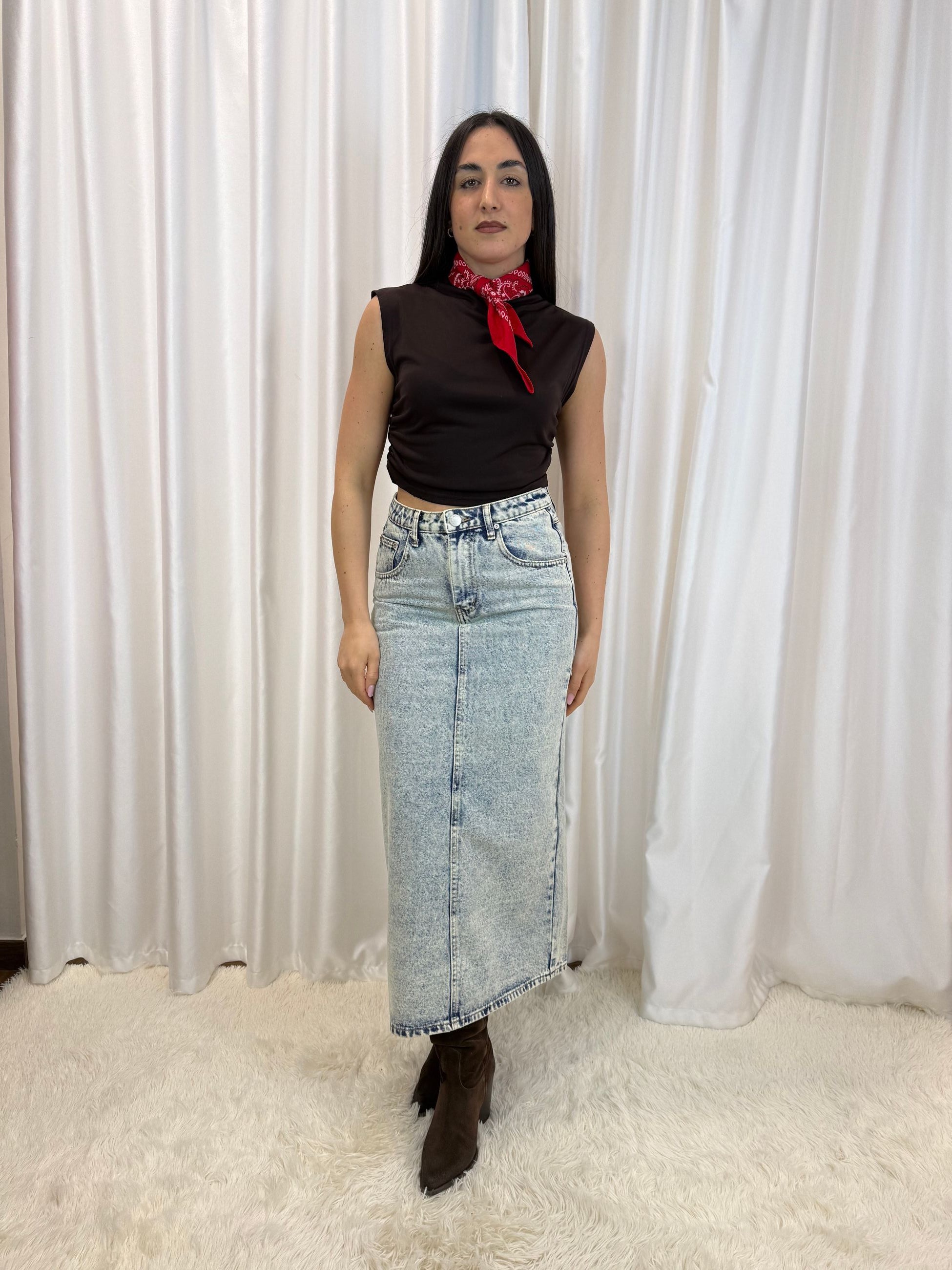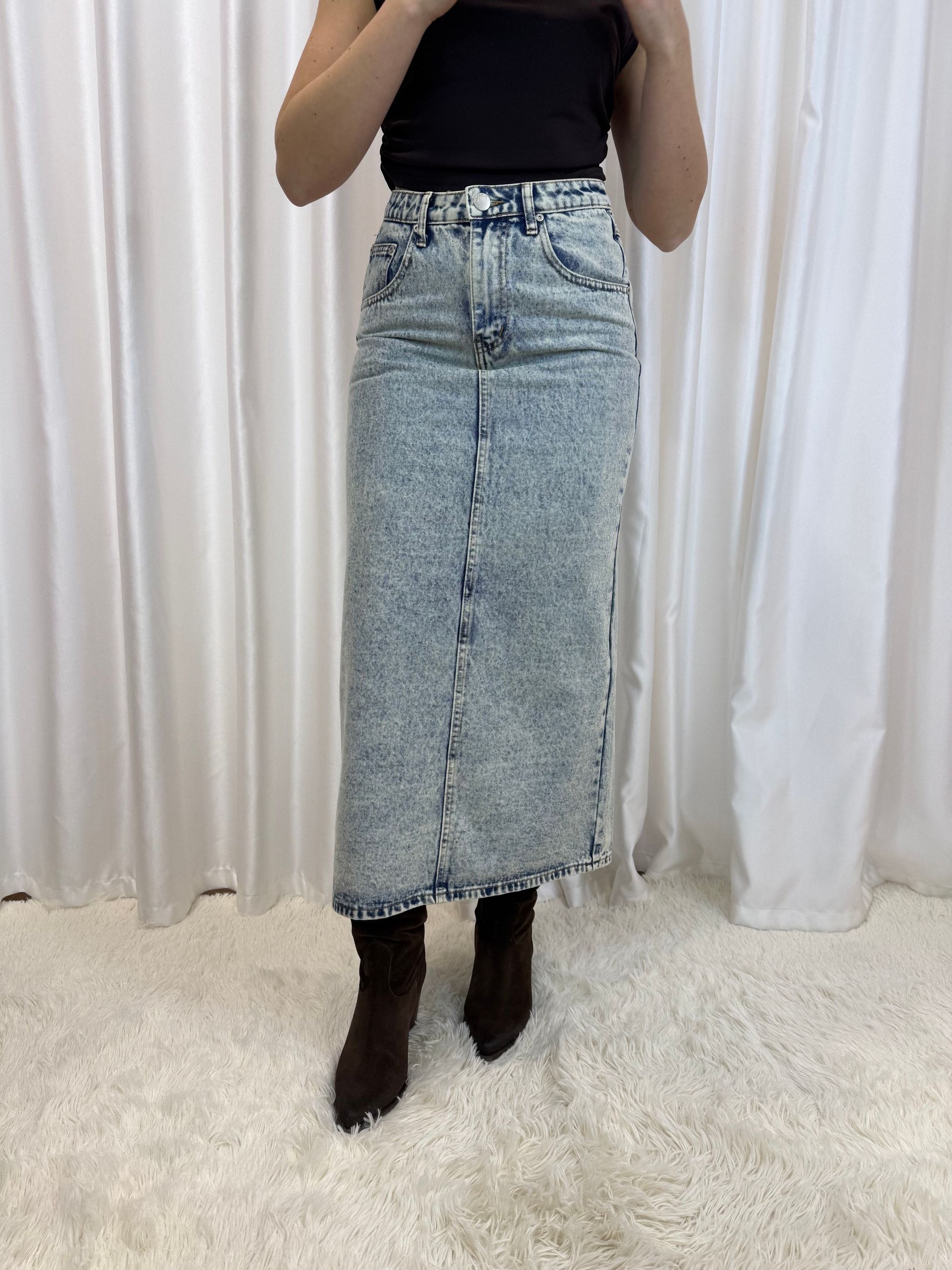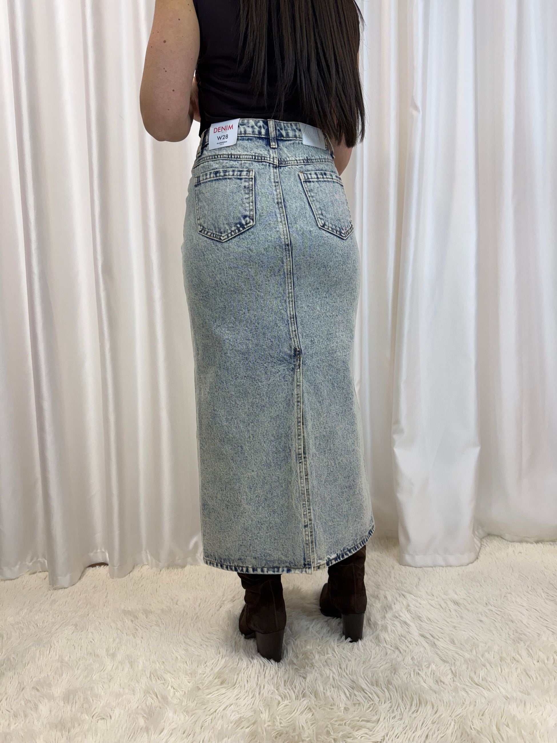 Gonna lunga in denim chiaro effetto slavato - Glamorous