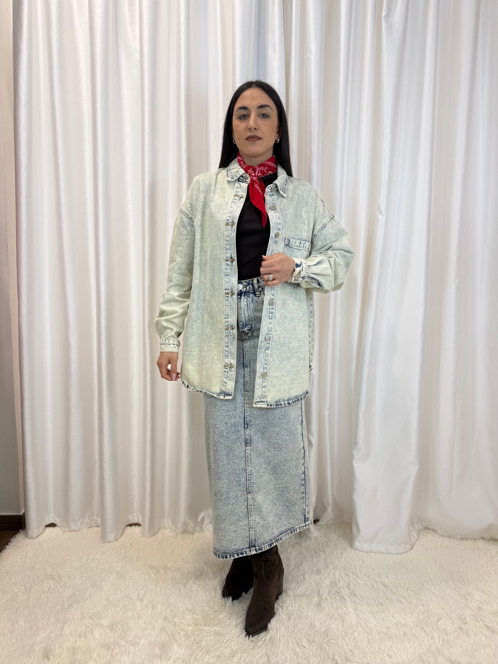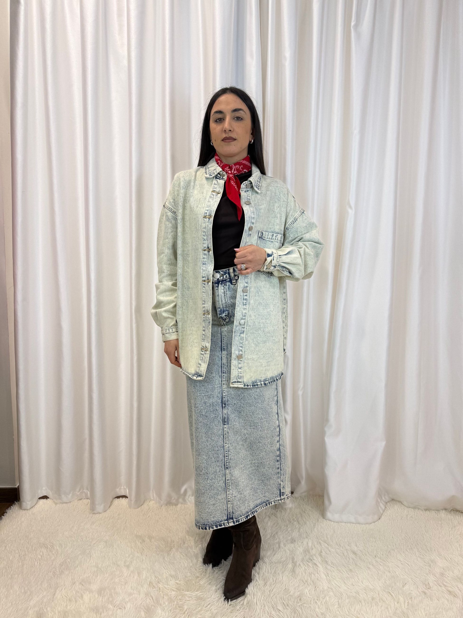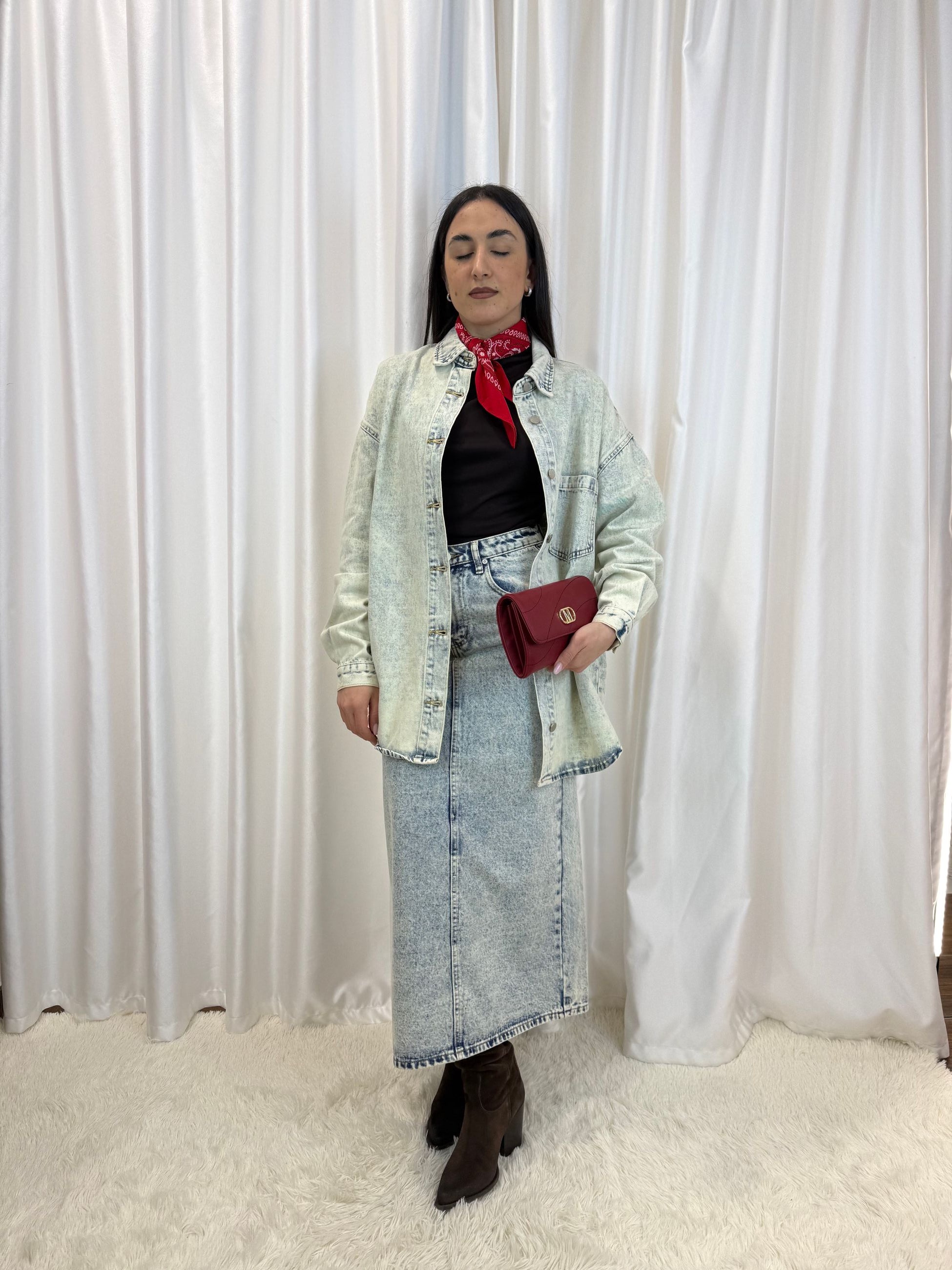 Gonna lunga in denim chiaro effetto slavato - Glamorous