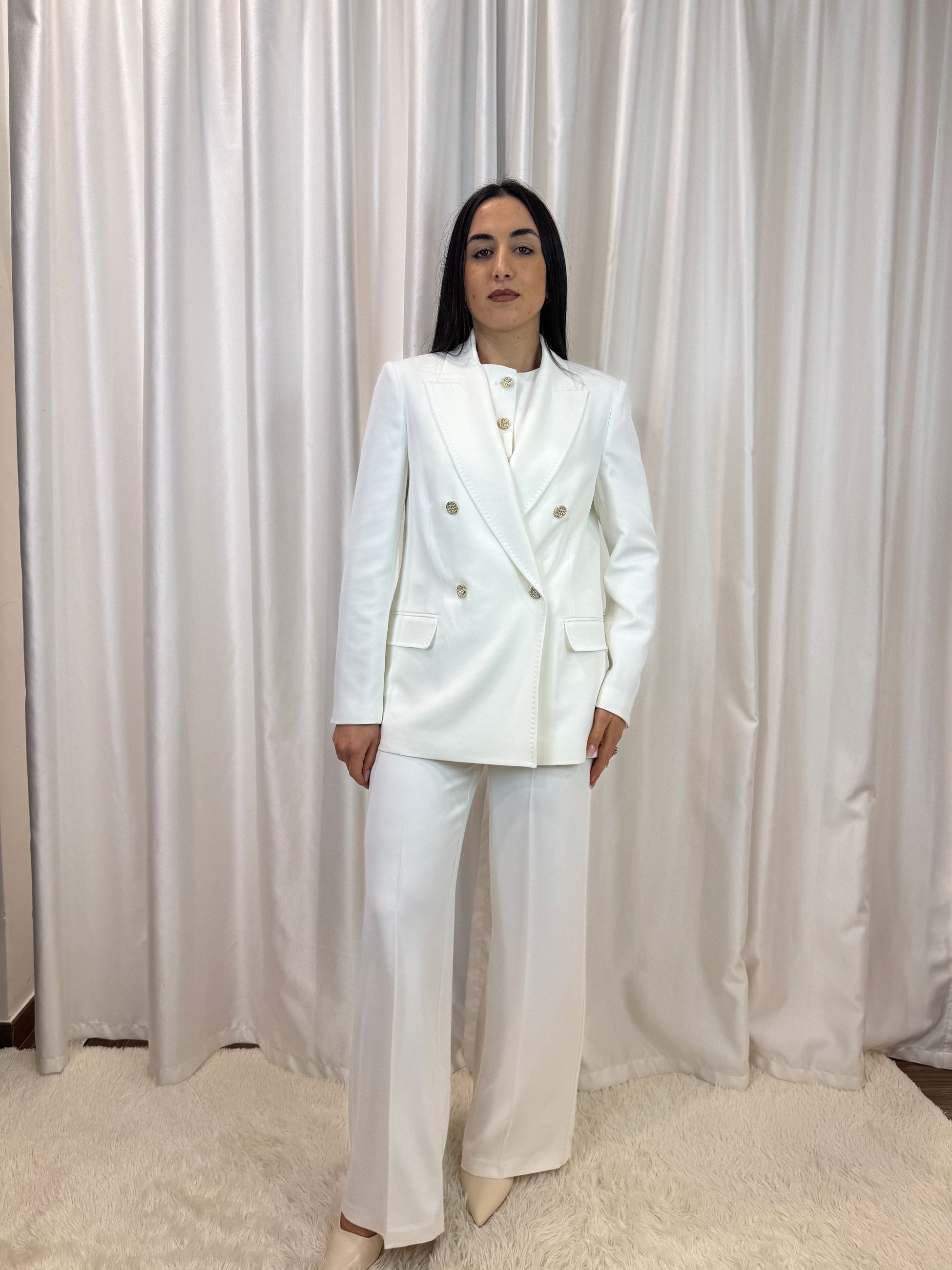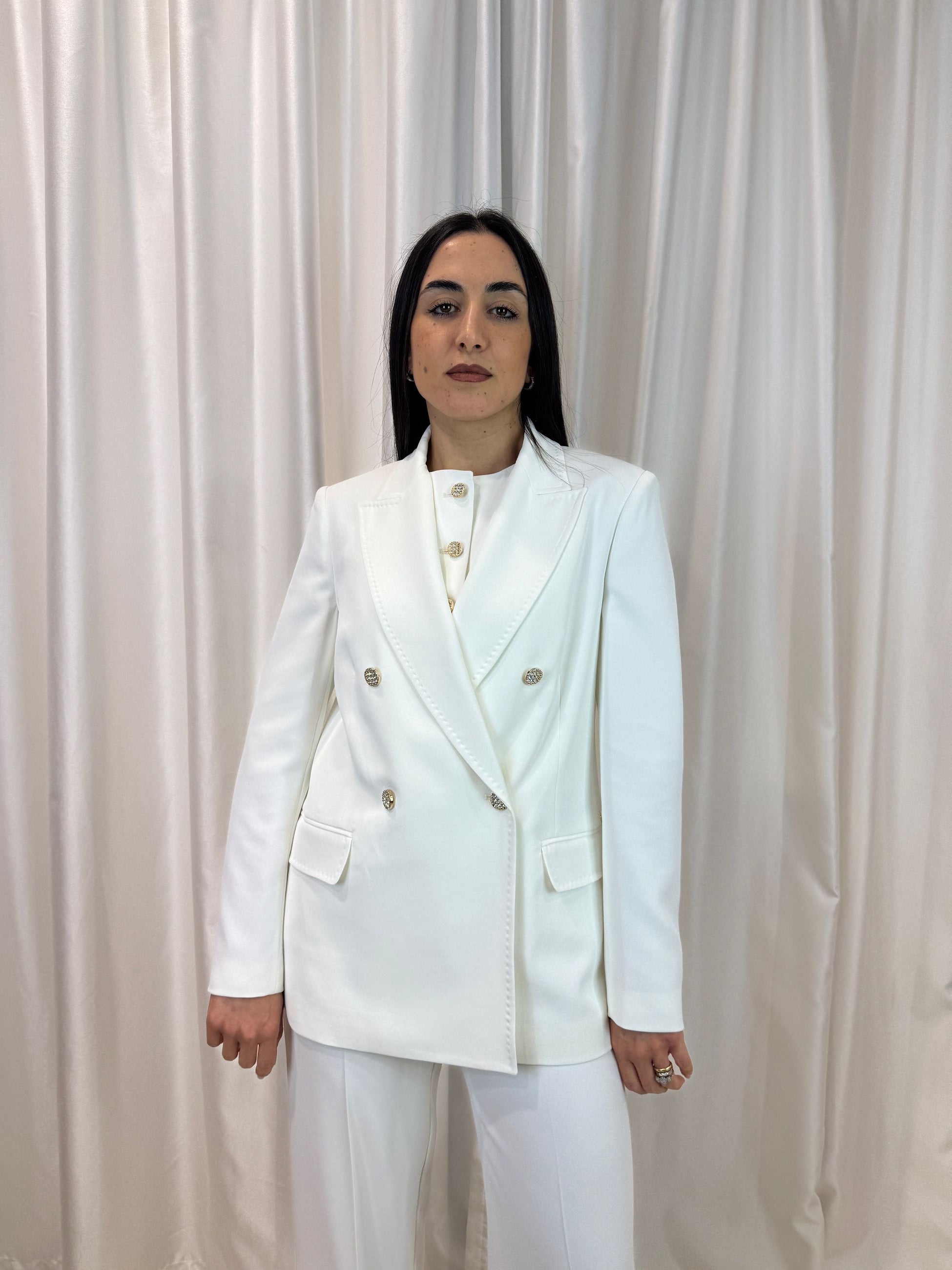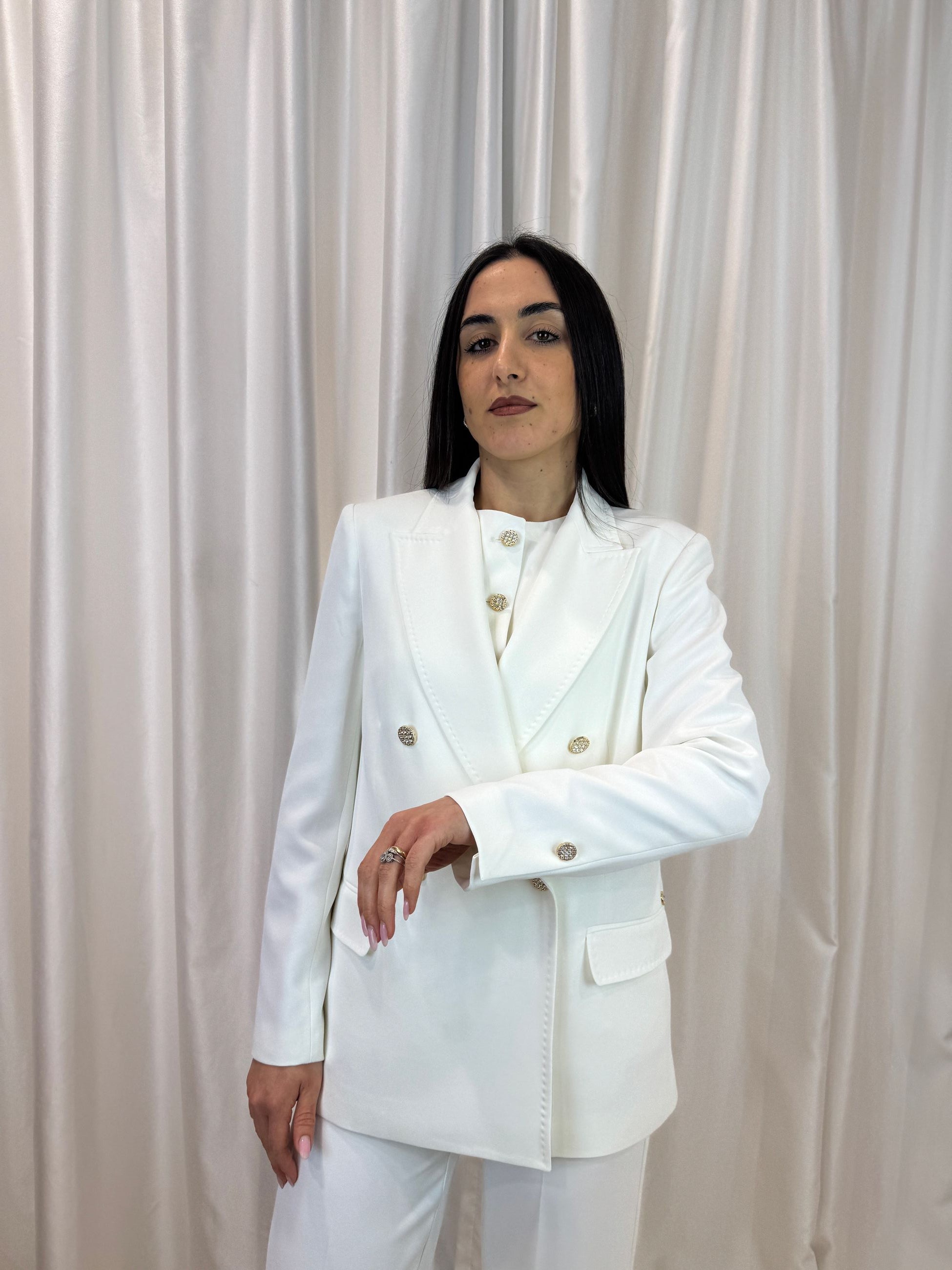 Giacca doppiopetto in cady con bottoni gioiello bianca - Erica Bellucci
