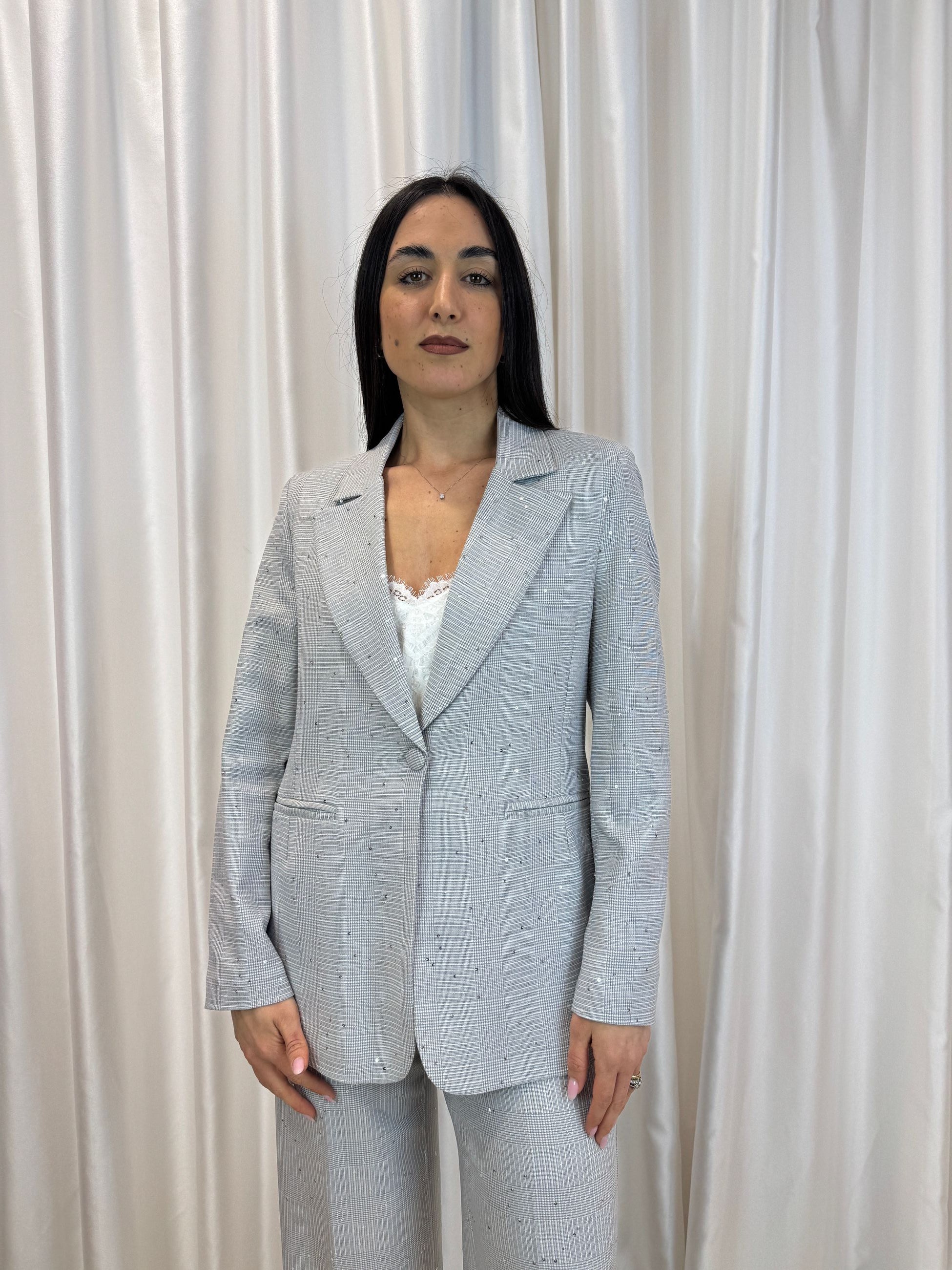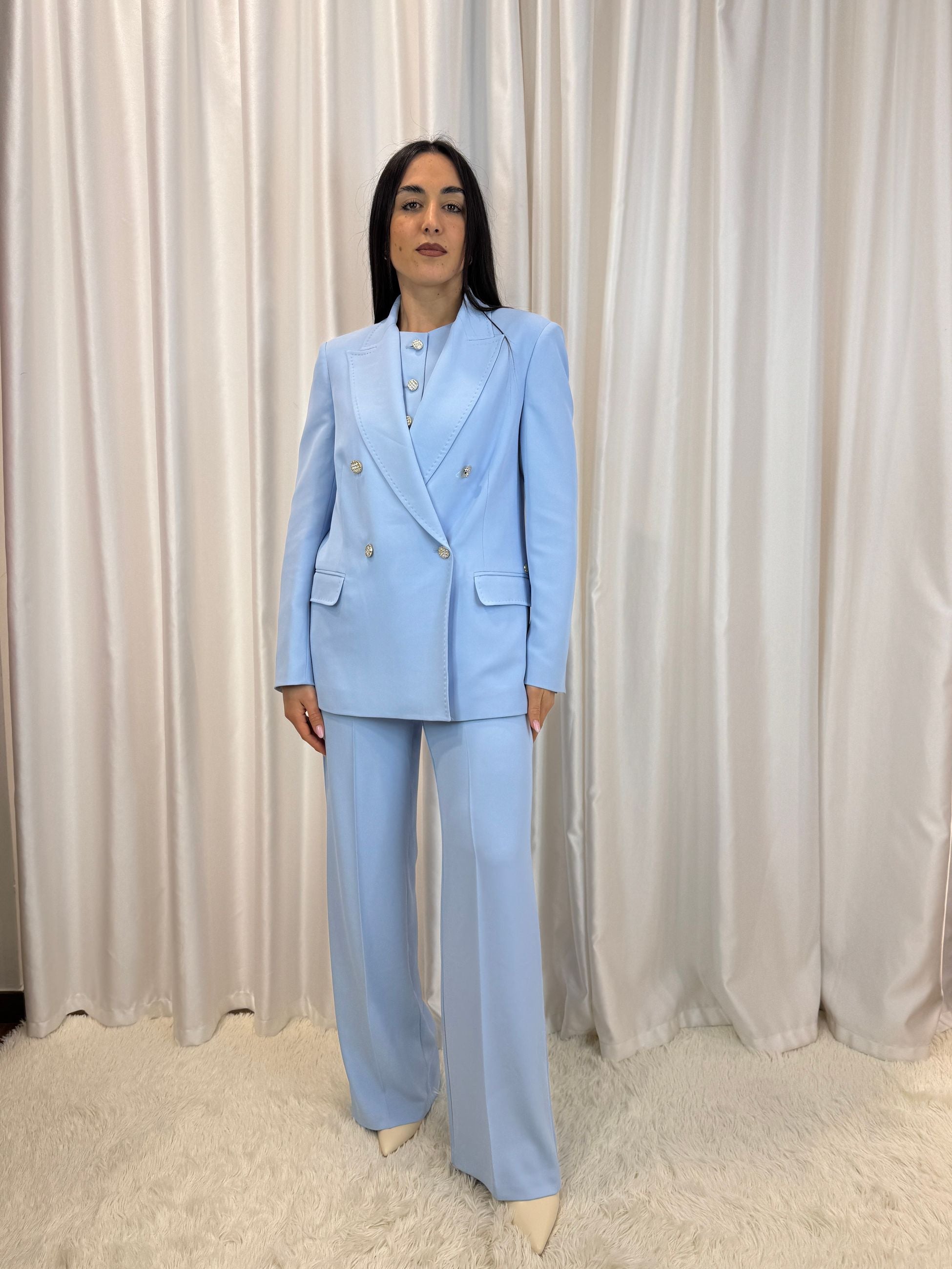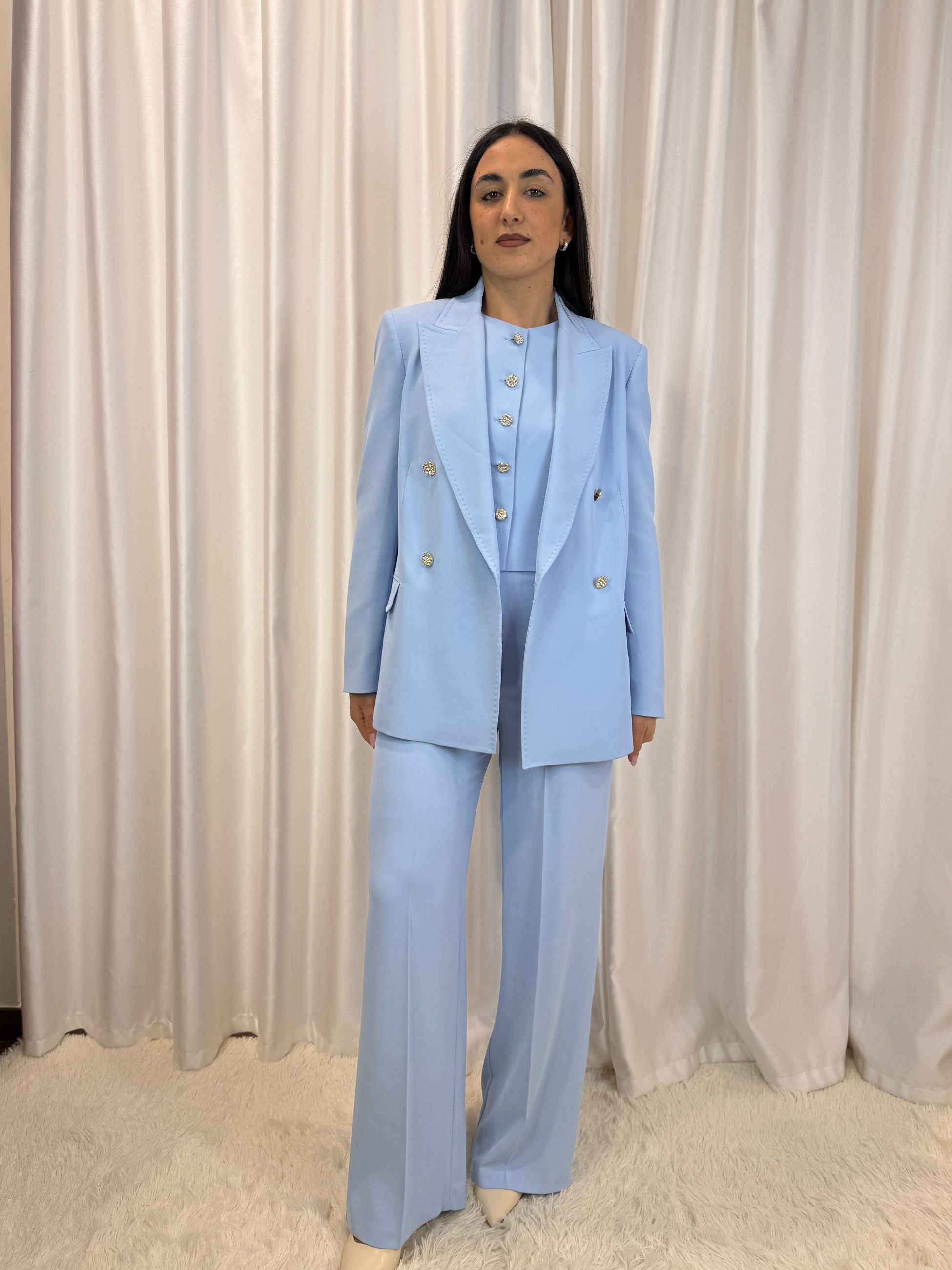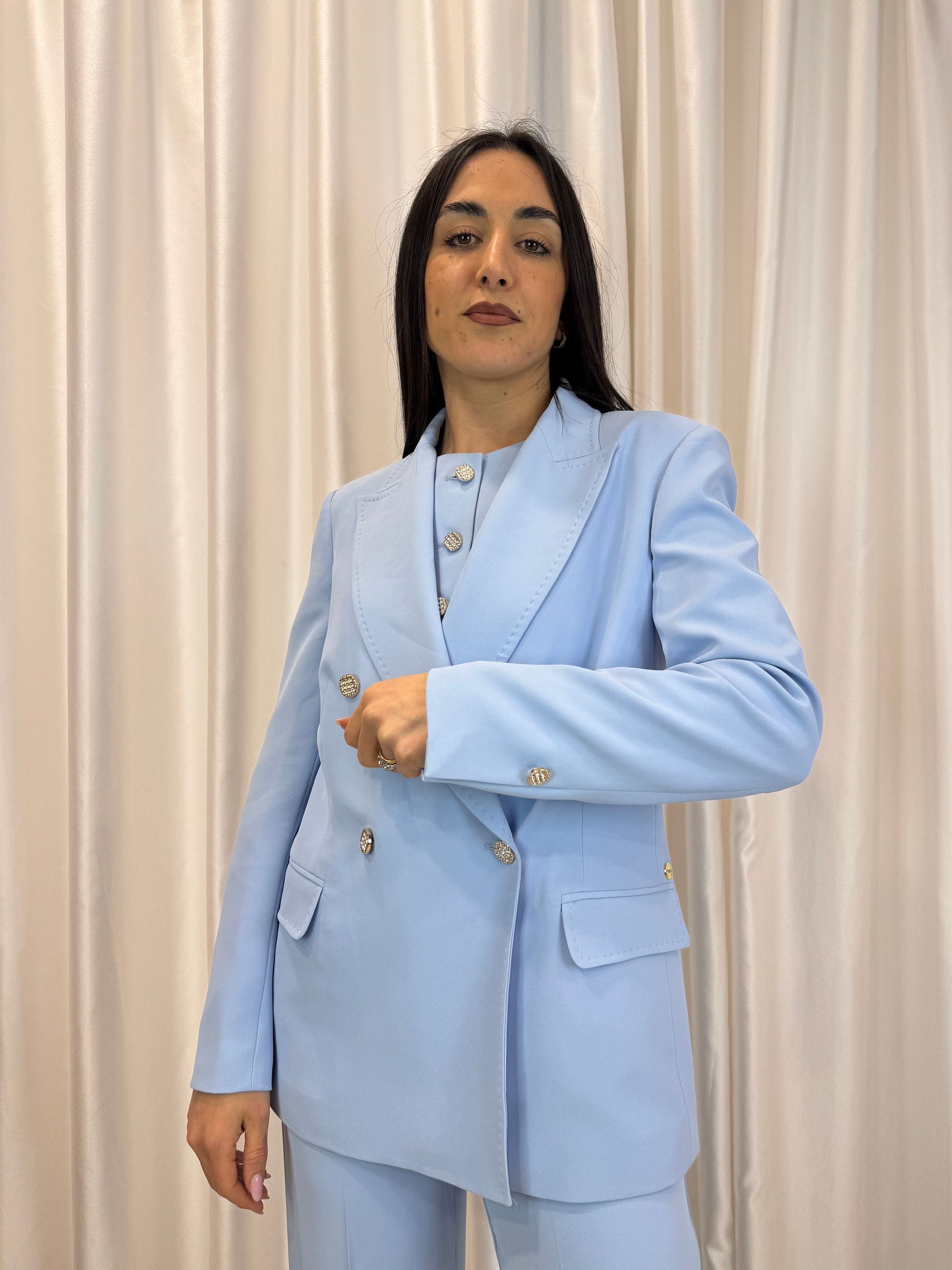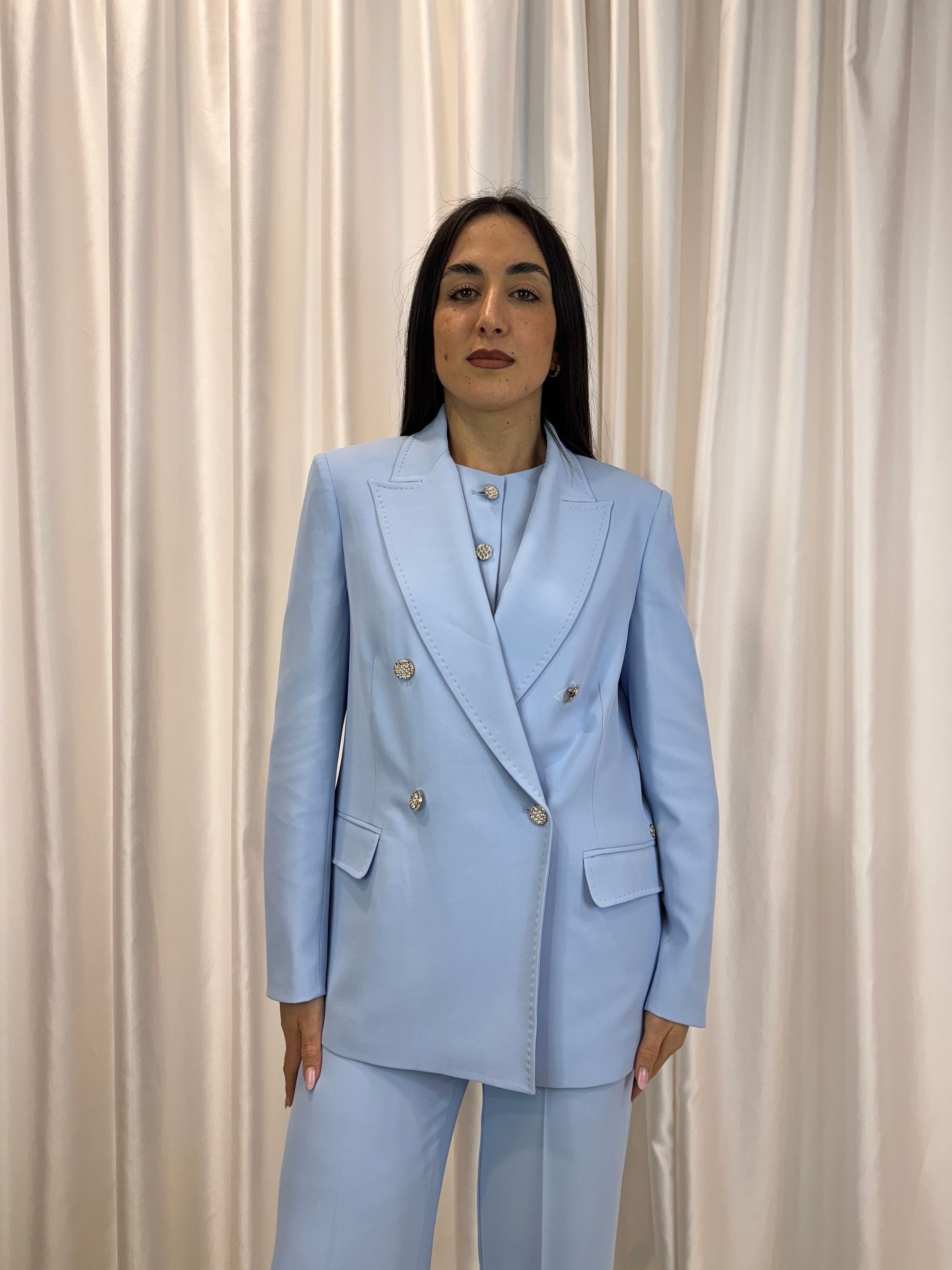 Giacca doppiopetto in cady con bottoni gioiello celeste - Erica Bellucci