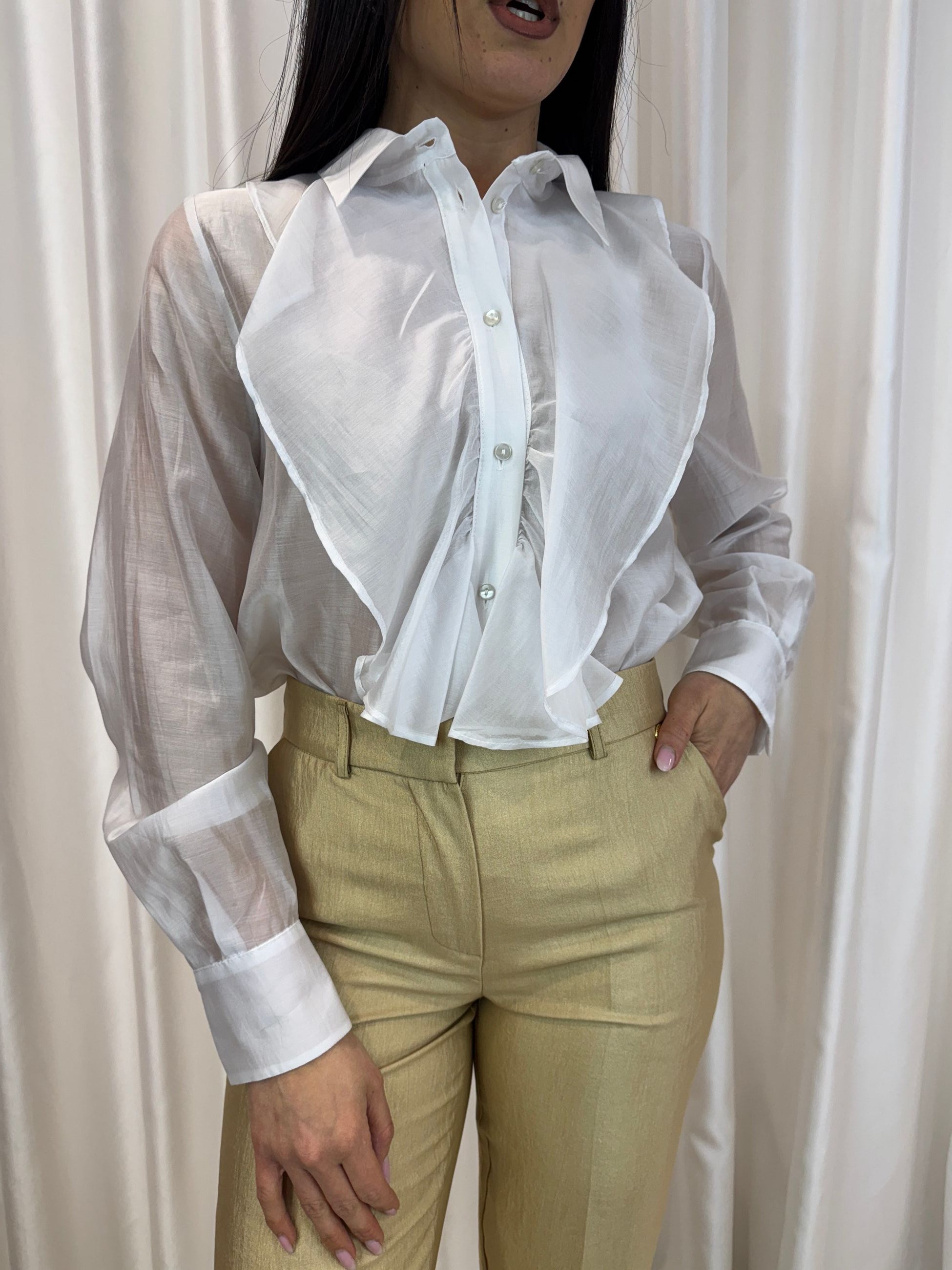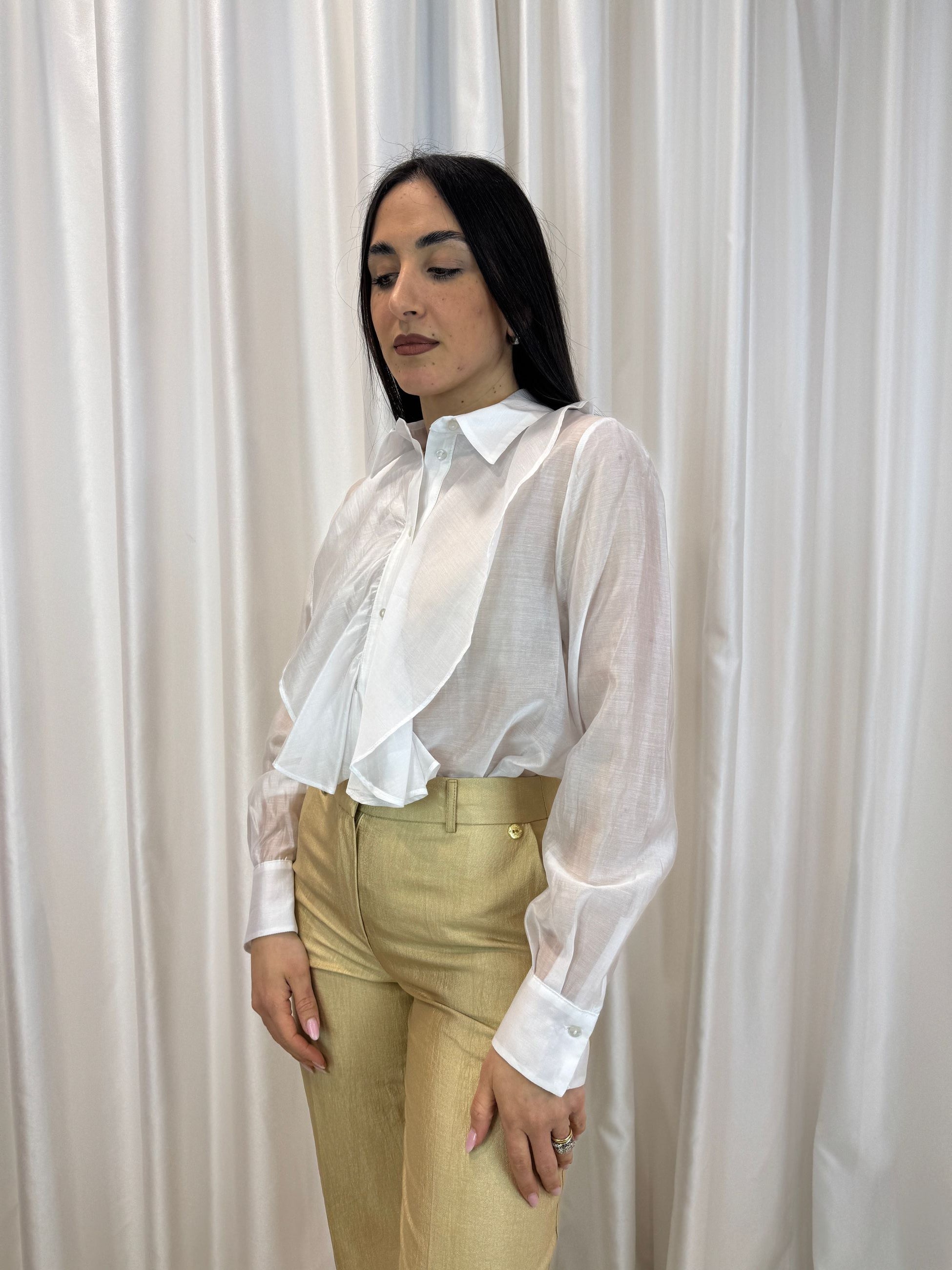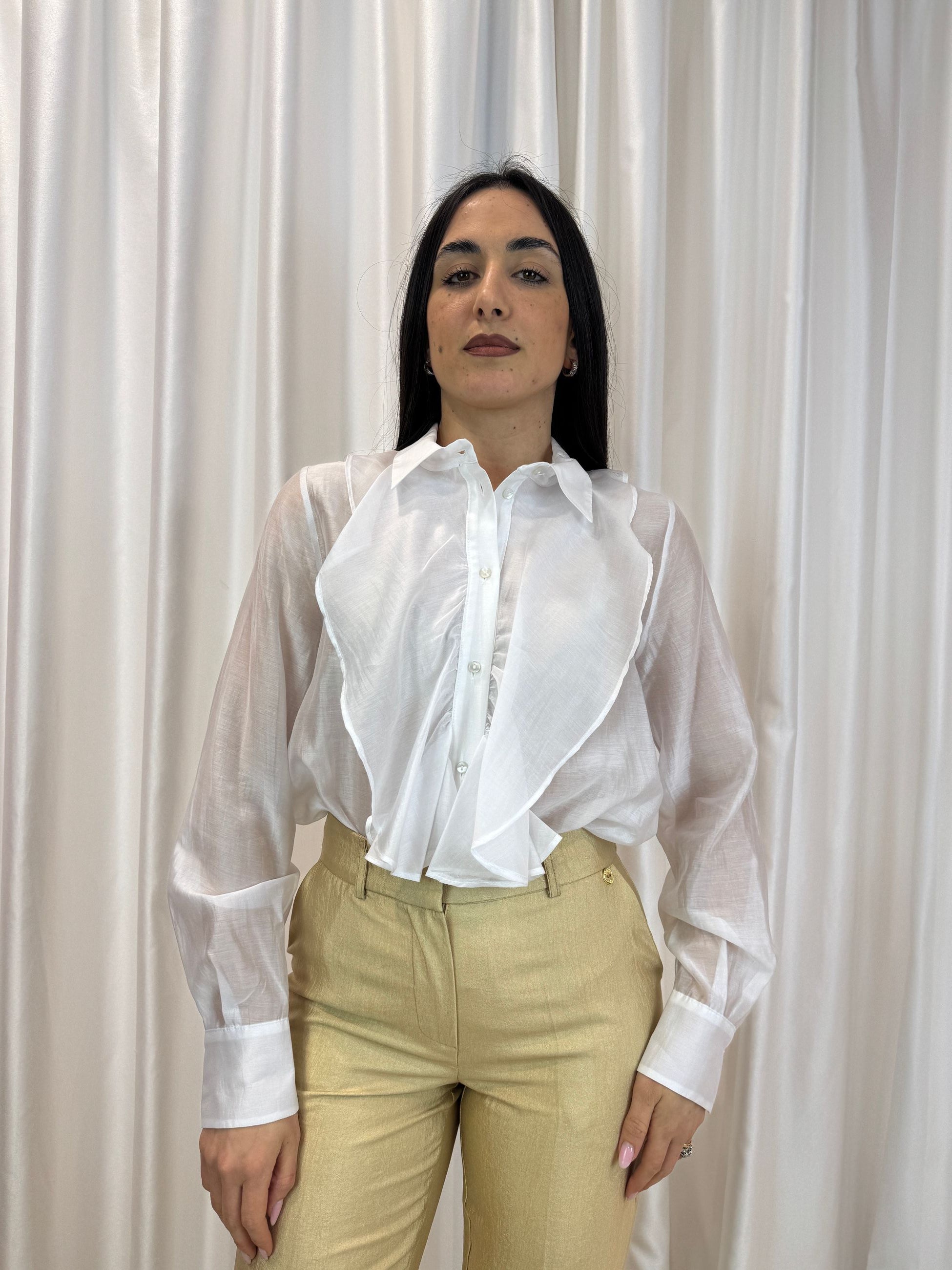 Camicia in lyocell con rouches panna - Erica Bellucci