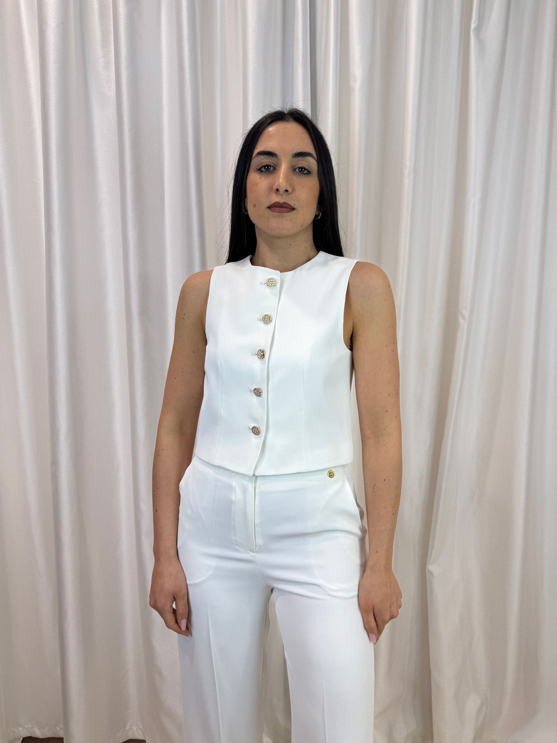 Gilet in cady con bottoni gioiello bianco - Erica Bellucci