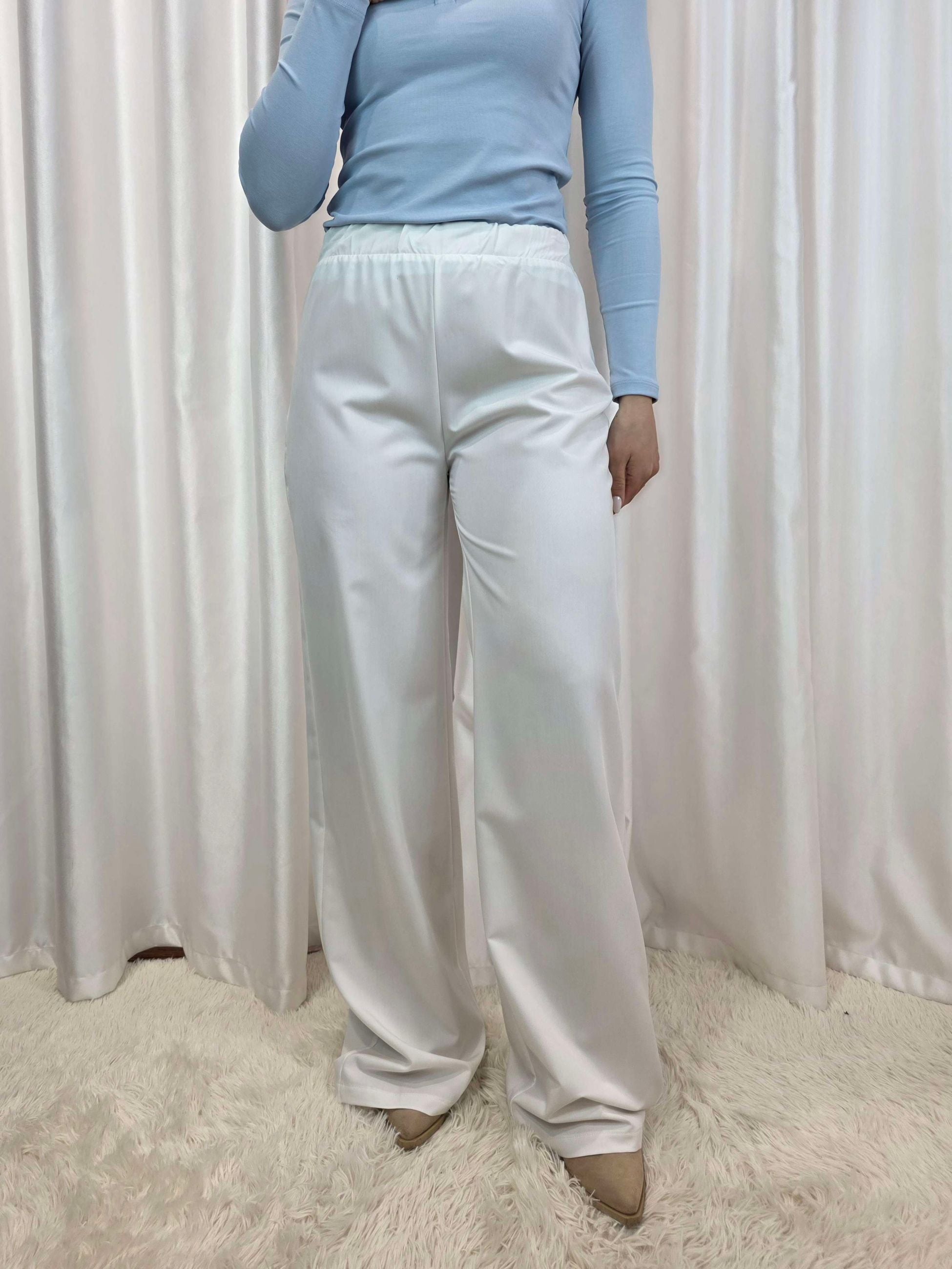 Pantalone palazzo bianco con elastico - Kostumn1