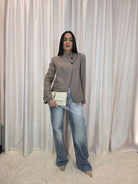Una pochette dal design sofisticato, caratterizzata da una lavorazione intrecciata effetto pelle che dona subito un’allure luxury. Il dettaglio gold frontale firma il look con classe, rendendola perfetta per occasioni speciali o per elevare anche gli outfit più semplici.