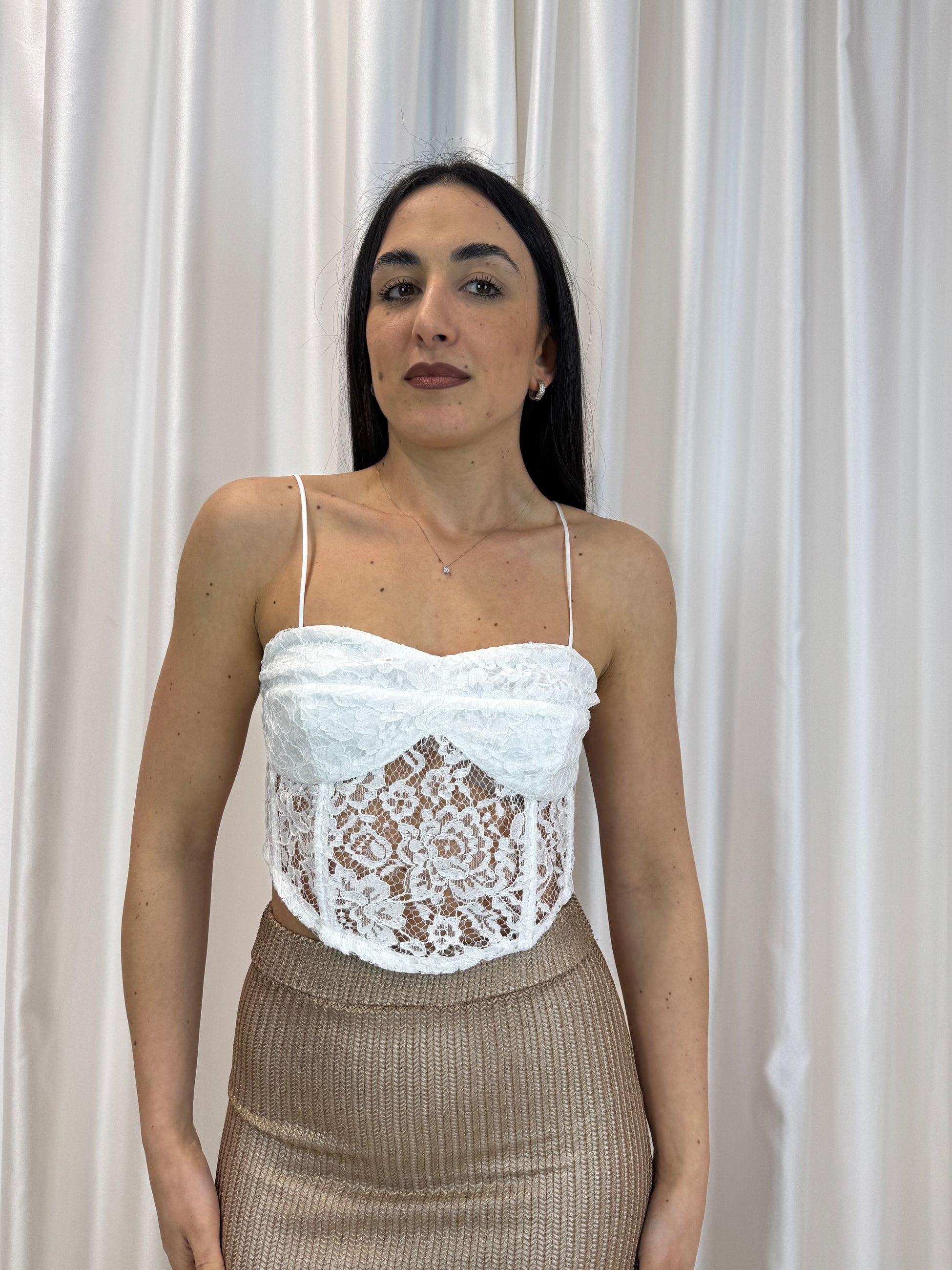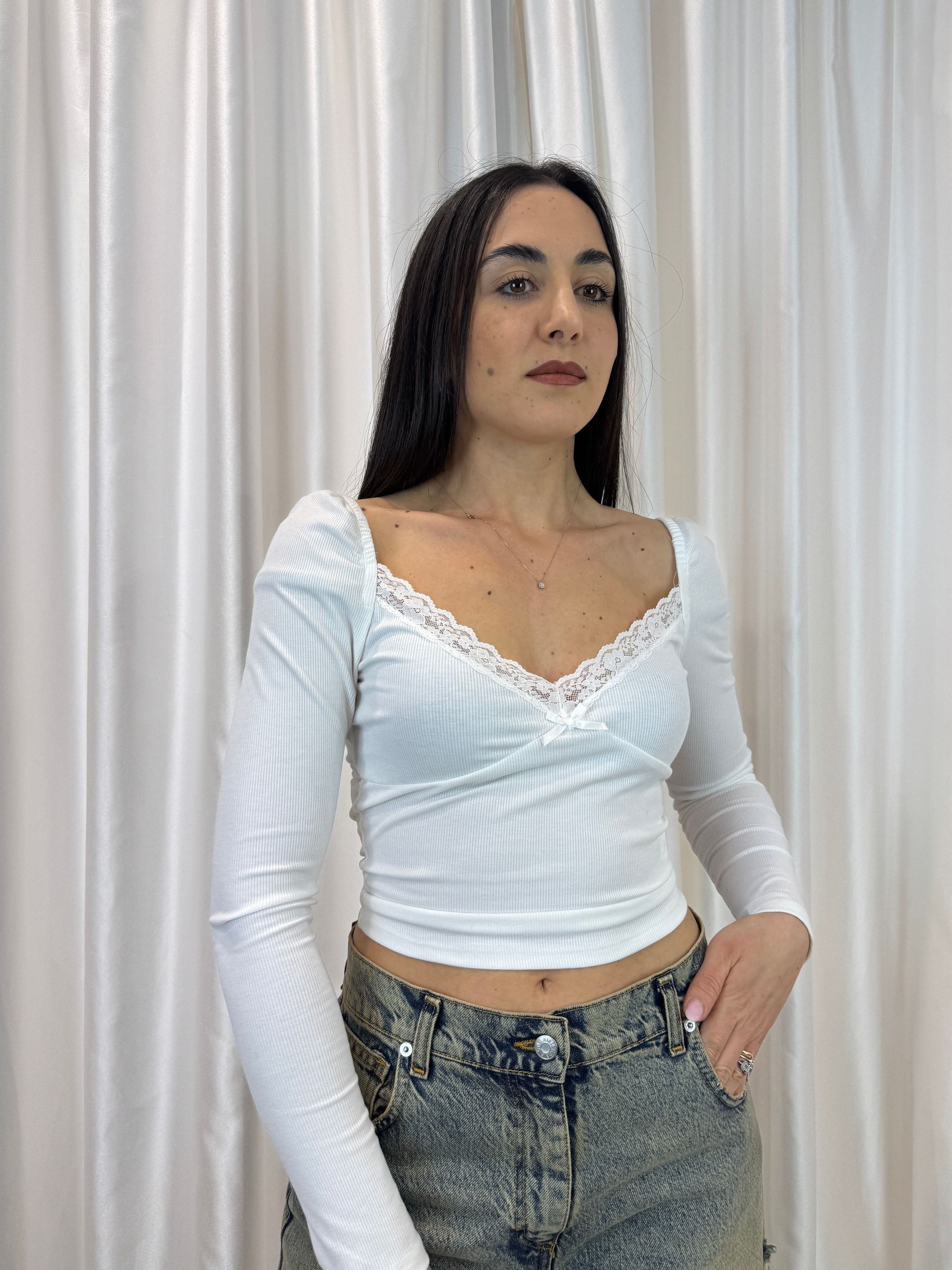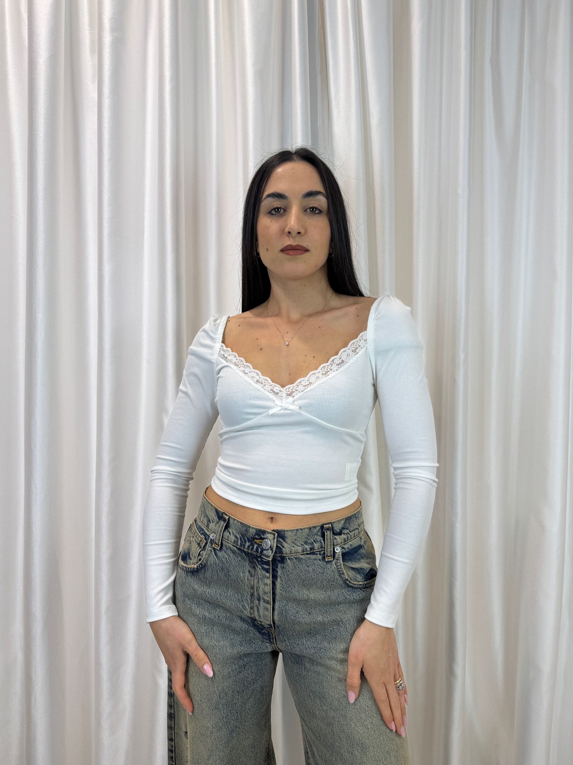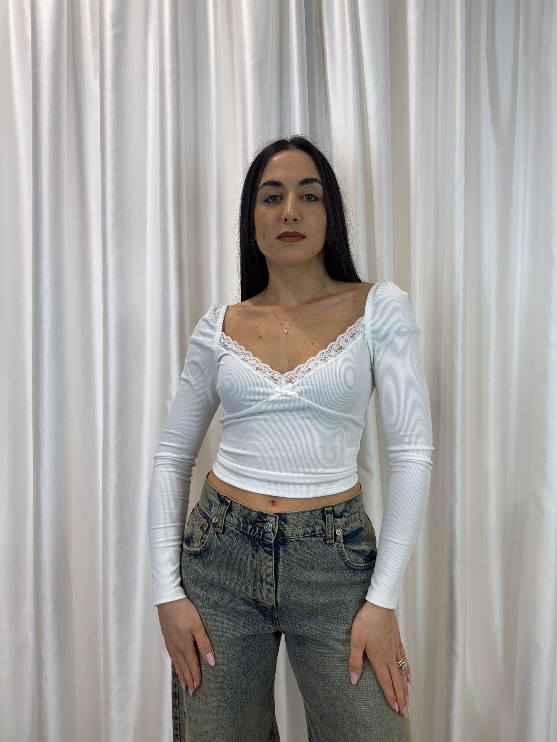 Top bianco con pizzo e scollo a cuore - Glamorous