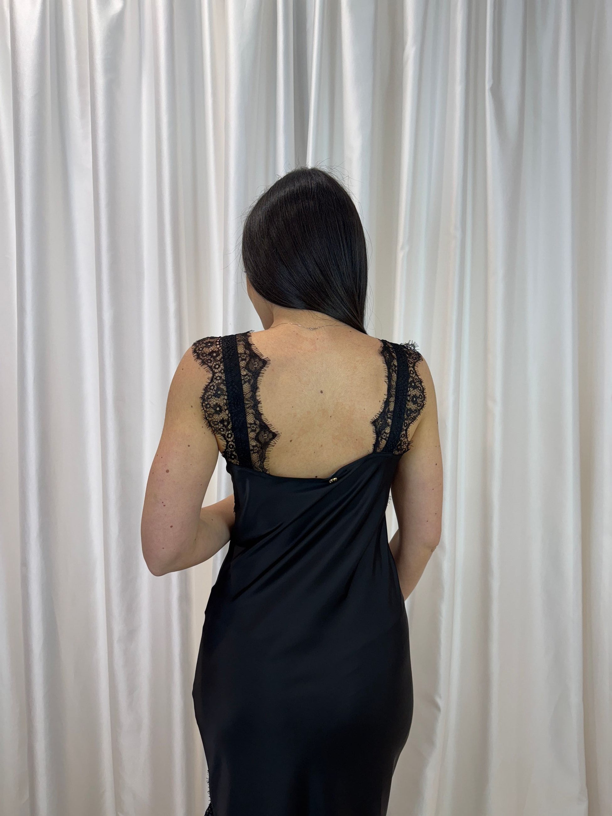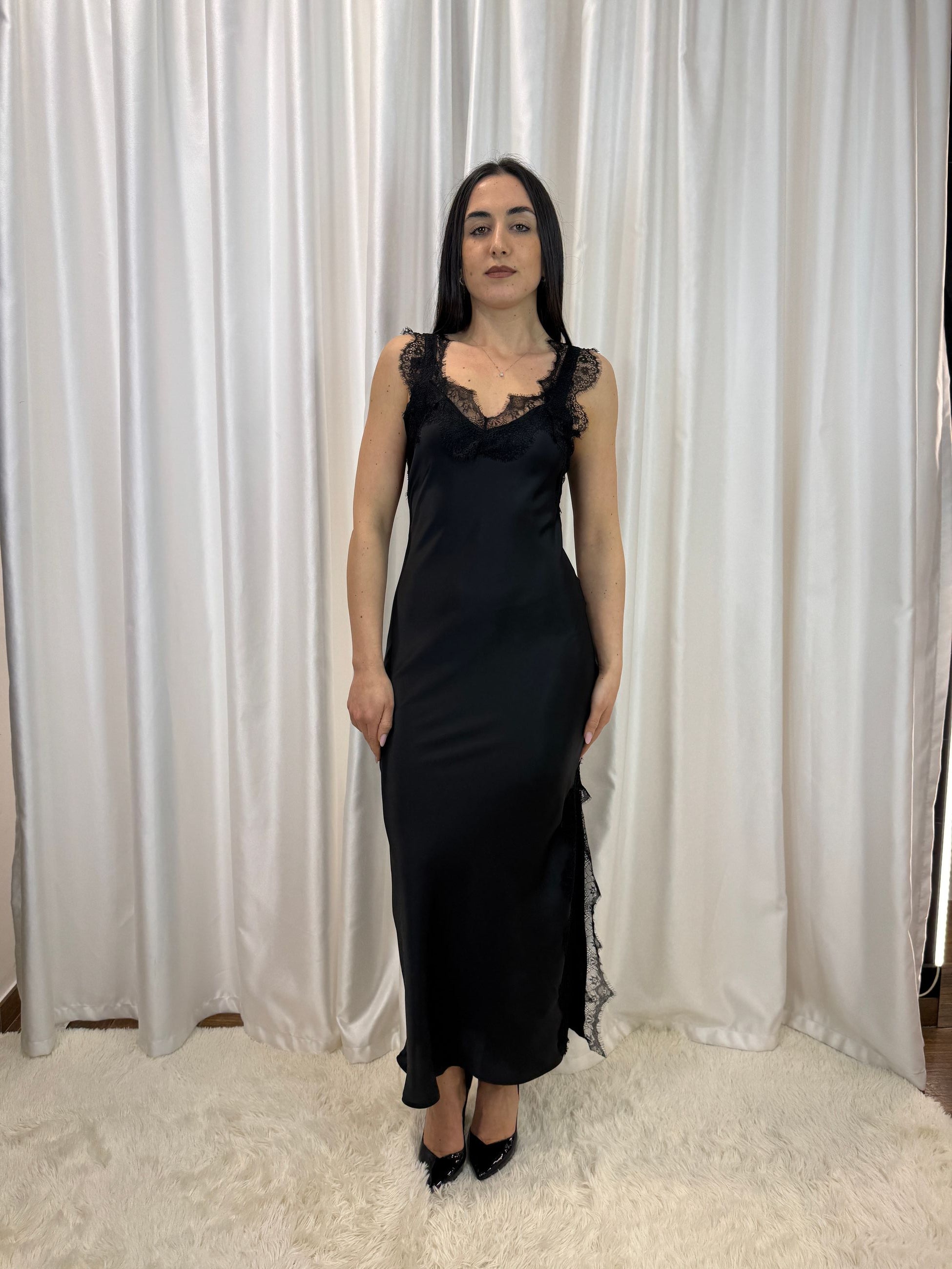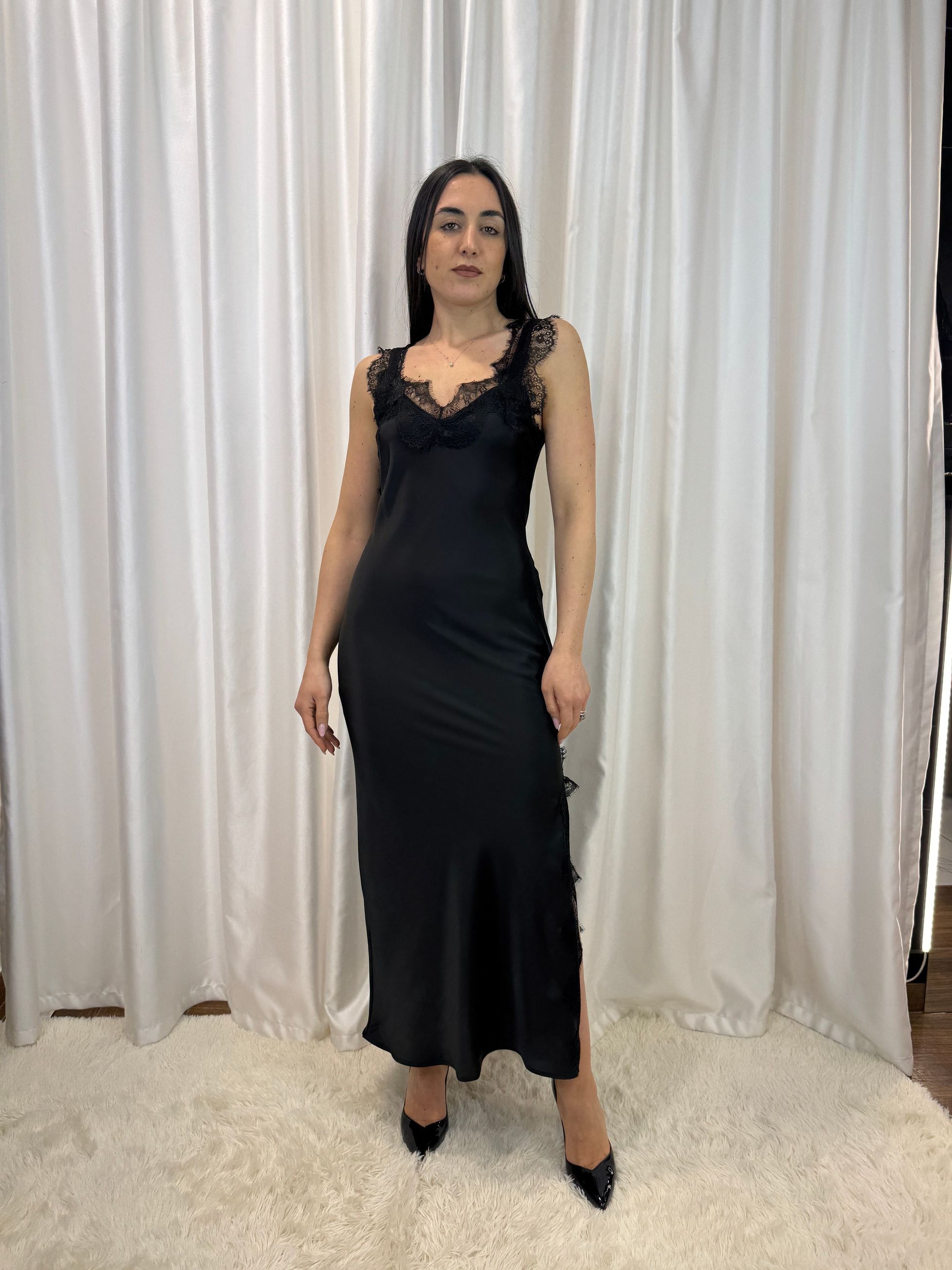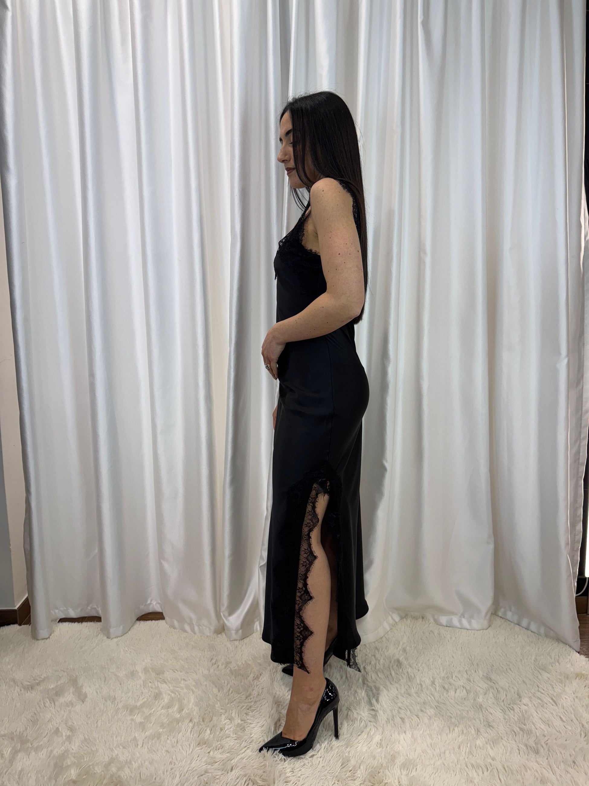 Abito lungo satin e pizzo nero - Erica Bellucci