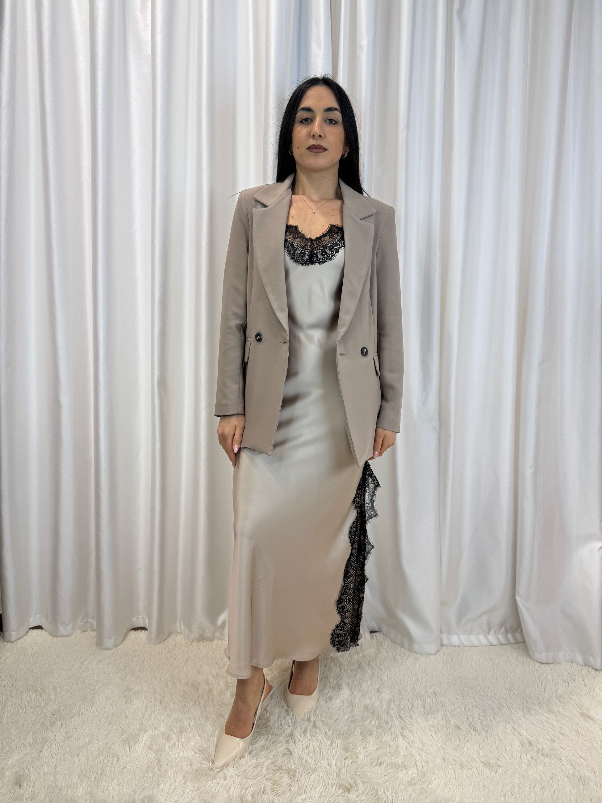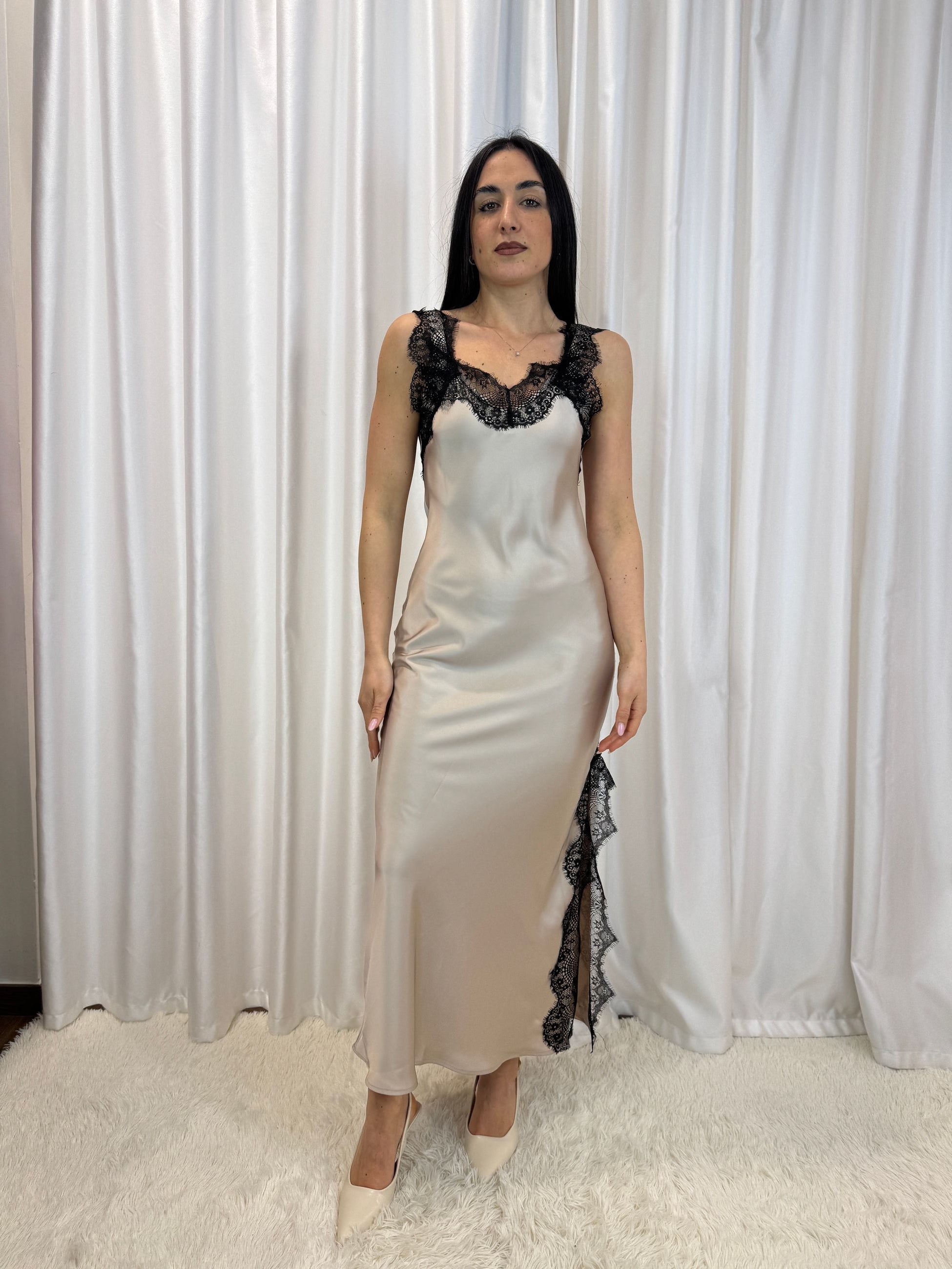 Abito lungo satin e pizzo burro - Erica Bellucci