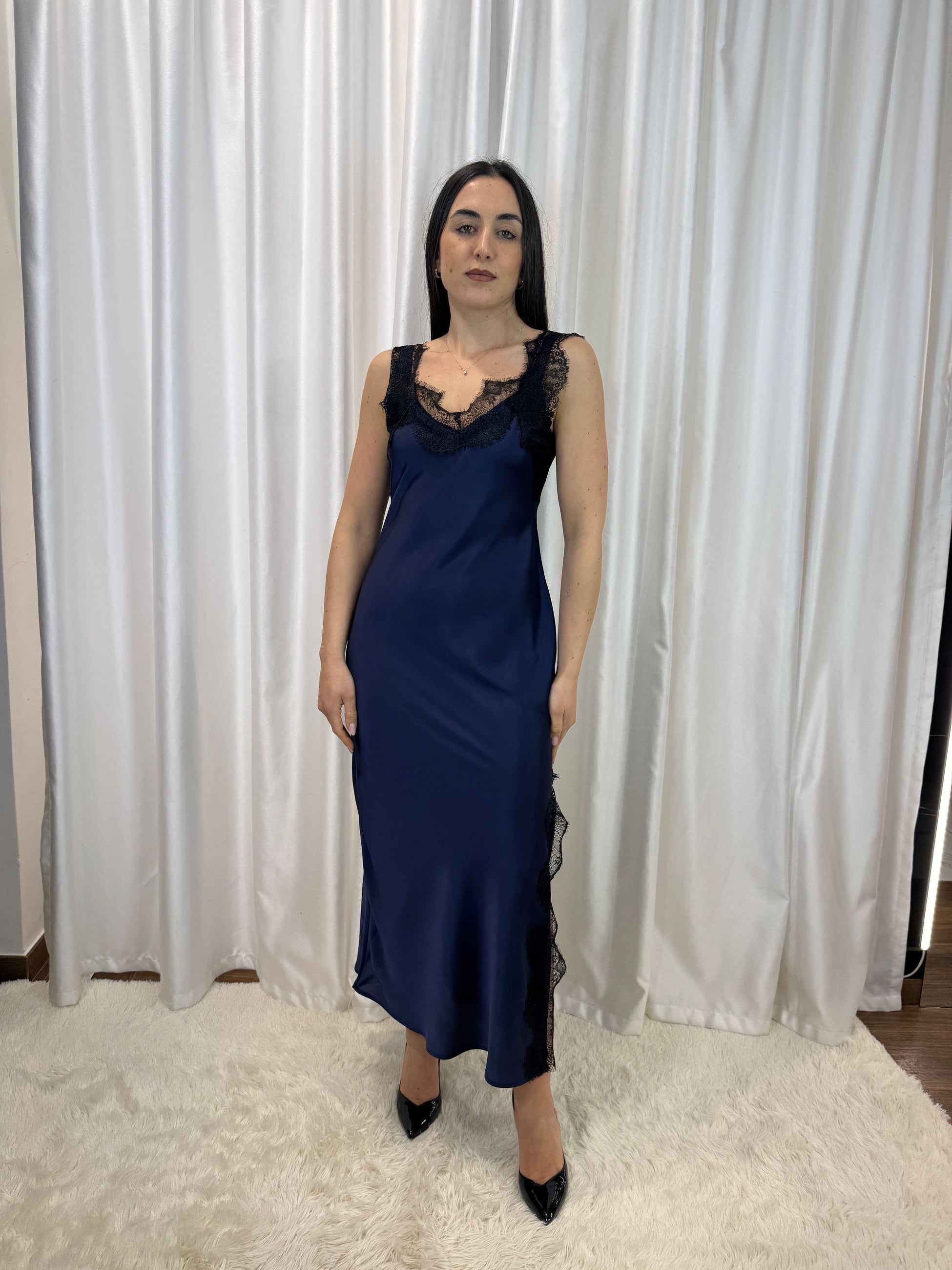 Abito lungo satin e pizzo blu - Erica Bellucci