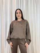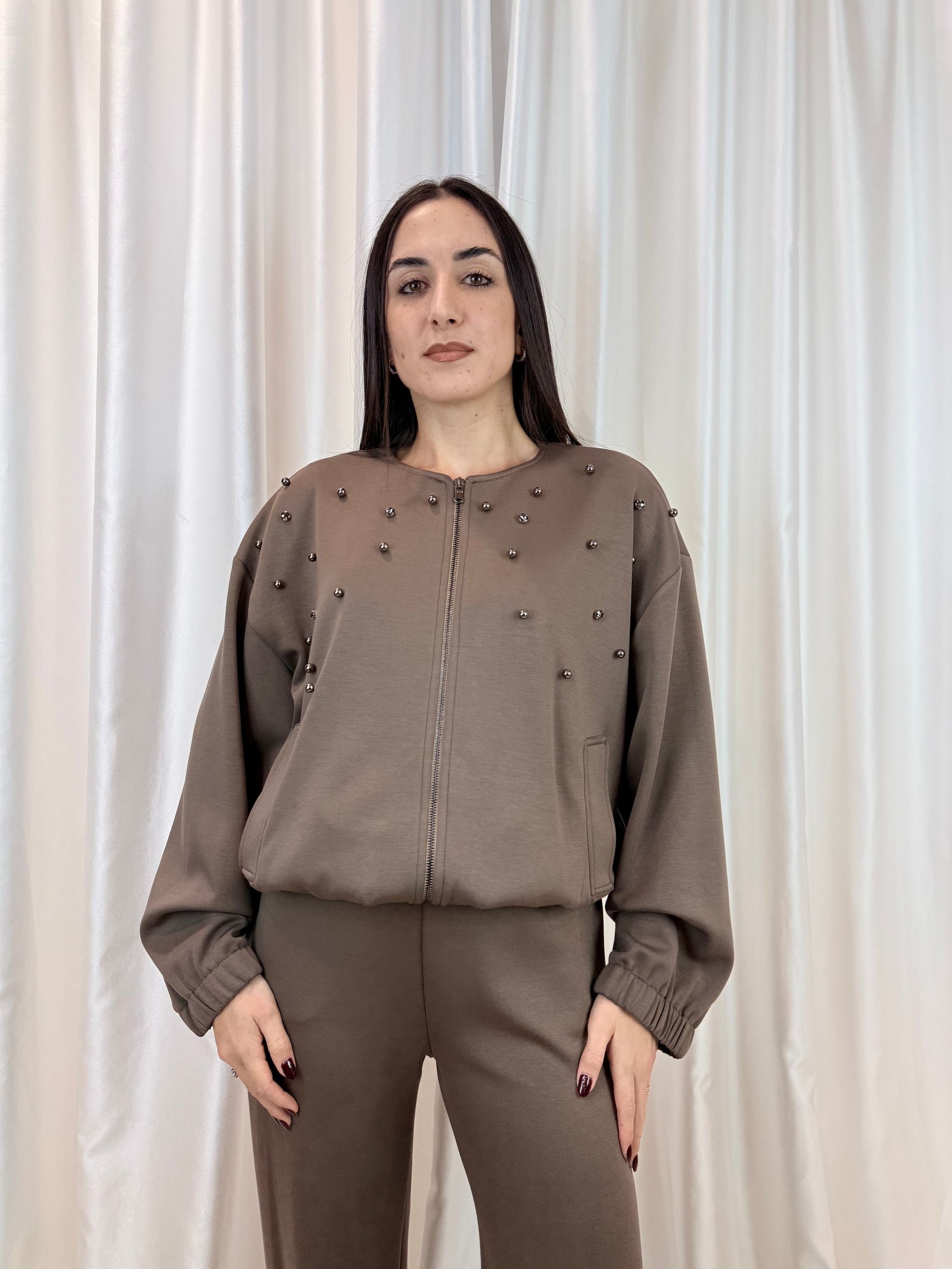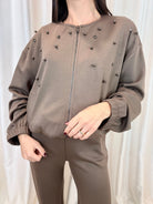 Felpa taupe con applicazioni gioiello – Erica Bellucci