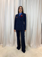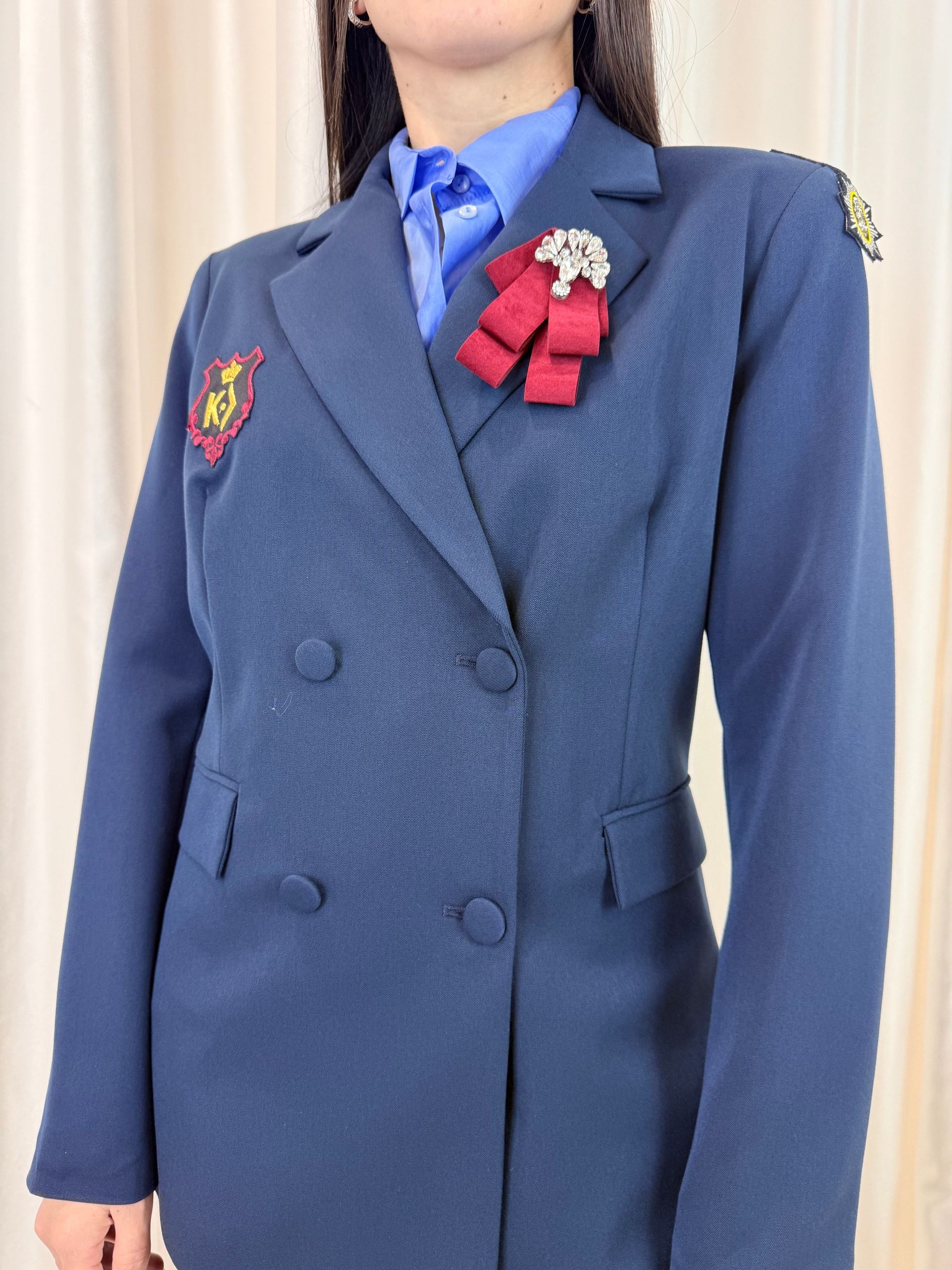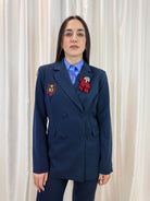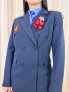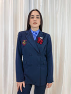 Blazer doppiopetto in manolana blu con patch – Kostumn1