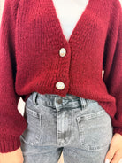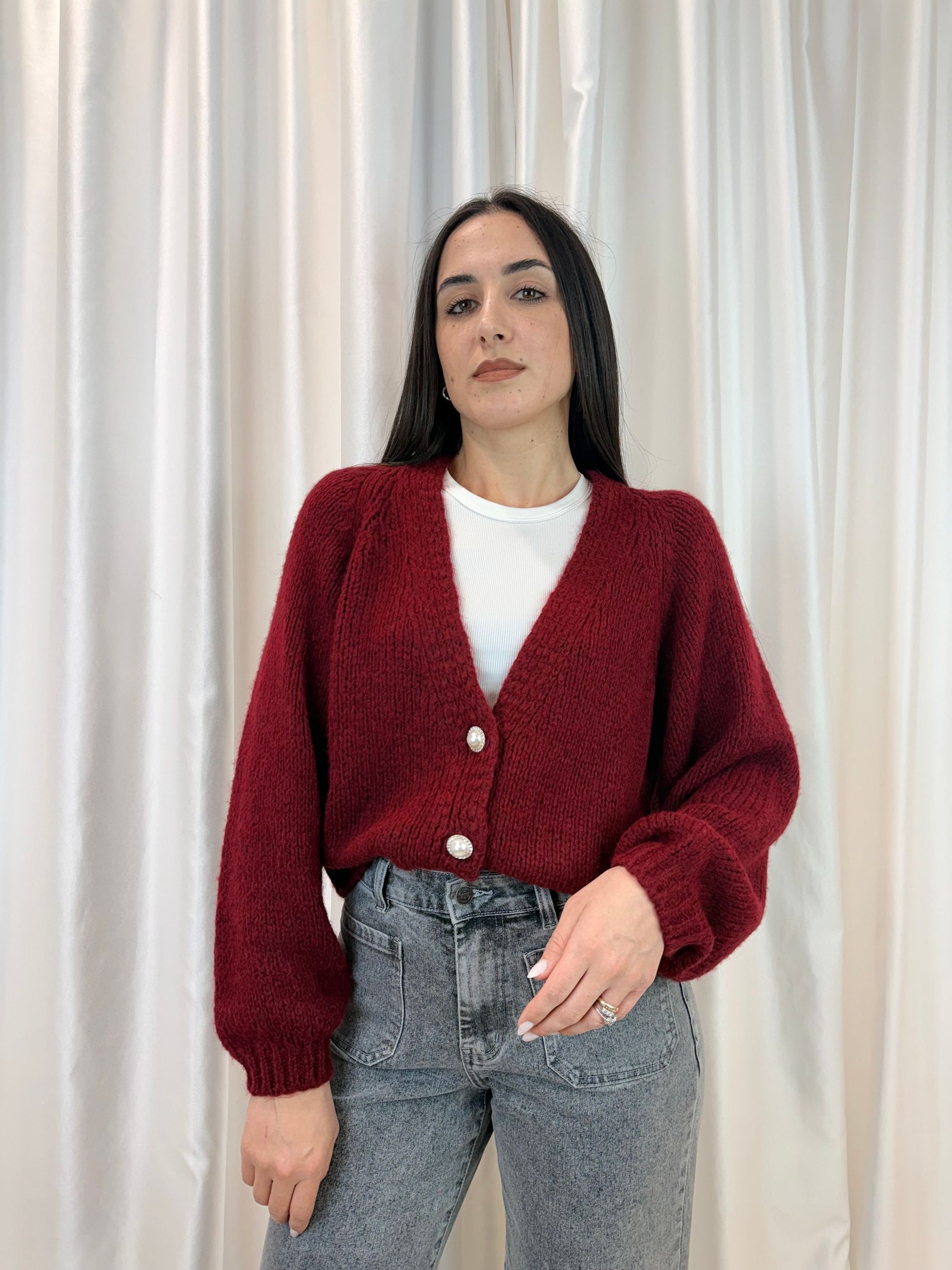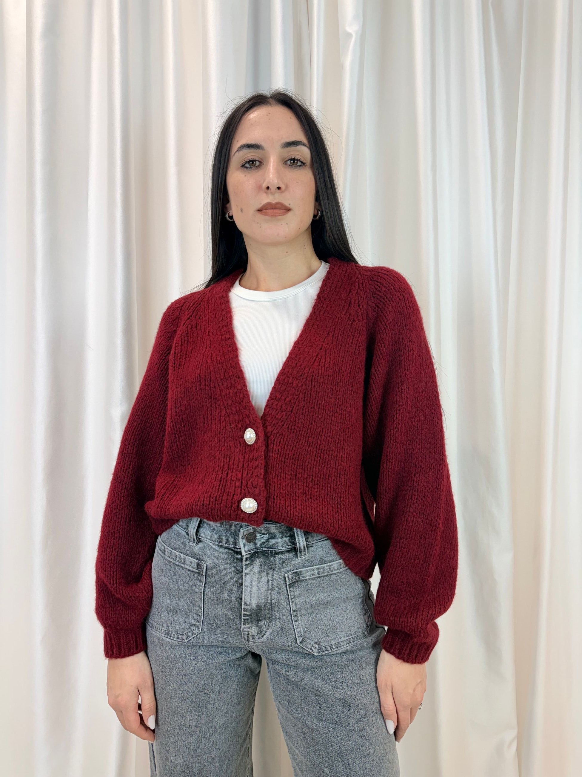 Cardigan Haveone in maglia in misto lana e viscosa. Modello corto con scollo a V e chiusura a bottoni gioiello che donano un dettaglio luminoso e raffinato. Perfetto da indossare con gonne o pantaloni a vita alta per look femminili e moderni.