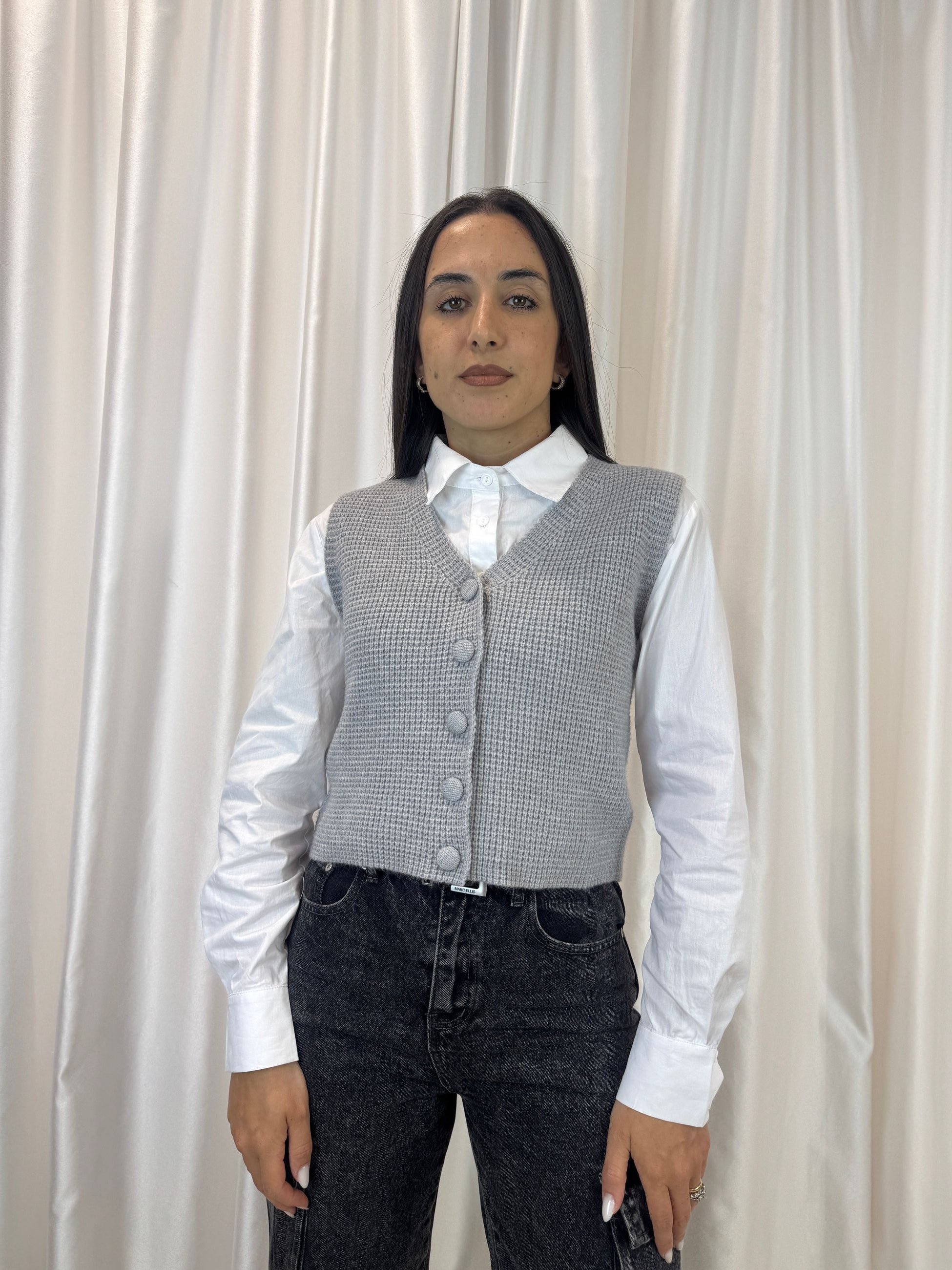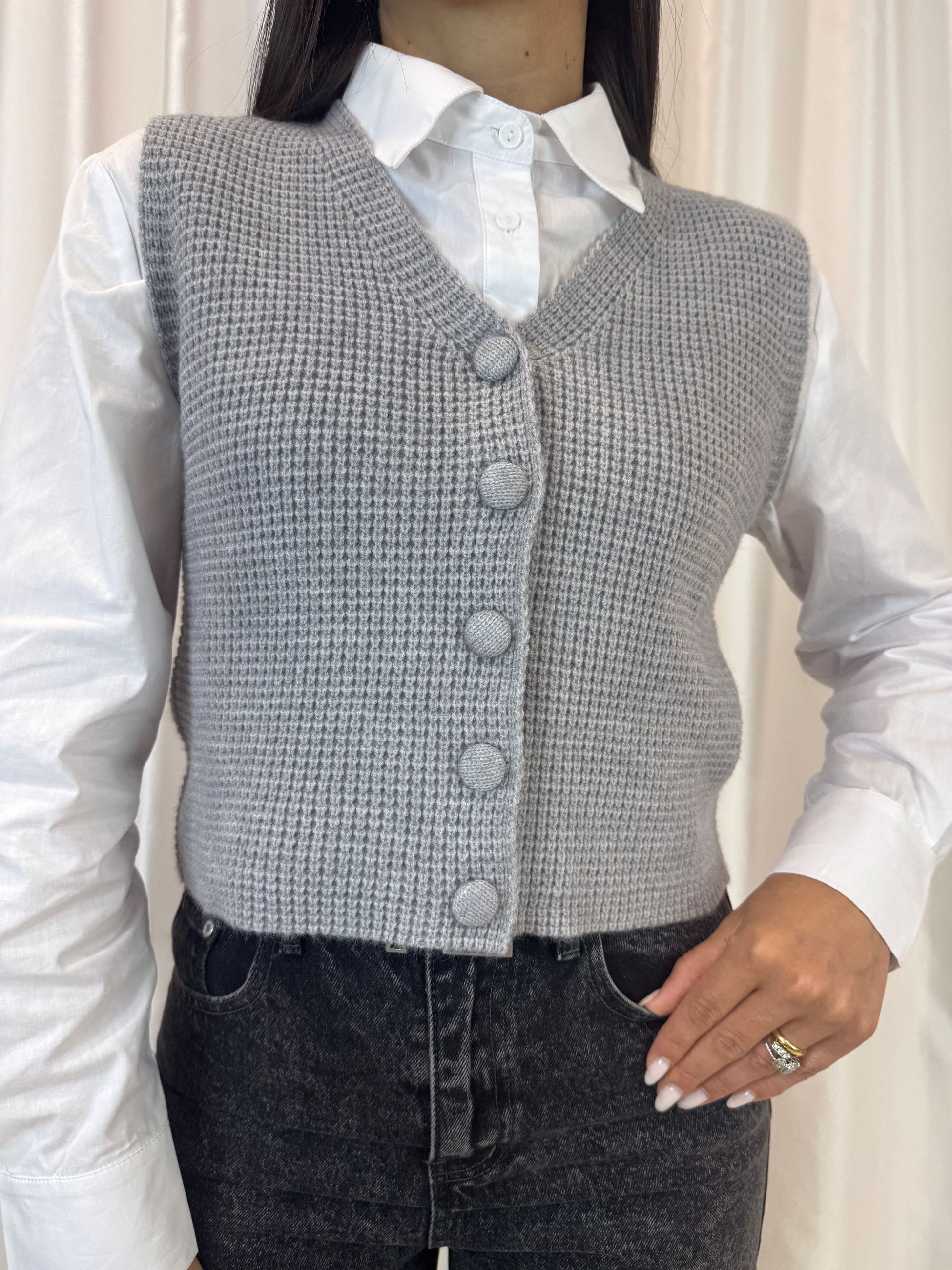Gilet in maglia con bottoni grigio – Vicky Mood