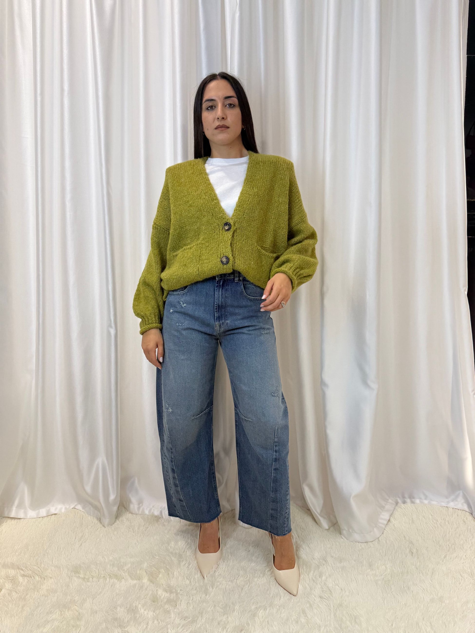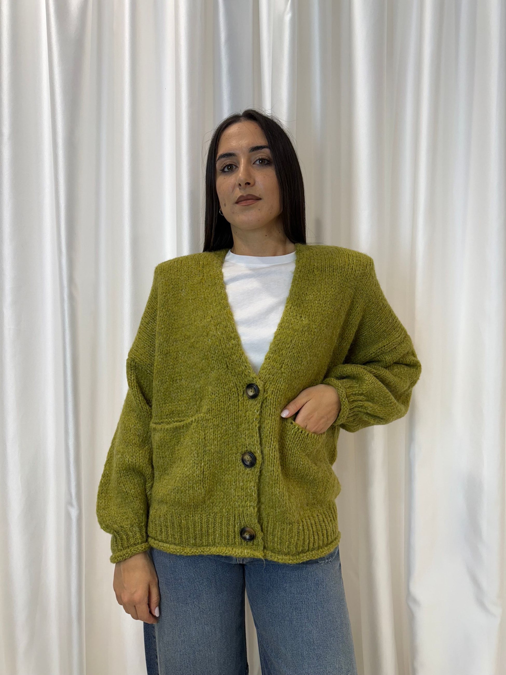 Cardigan olio in misto lana e viscosa – Haveone