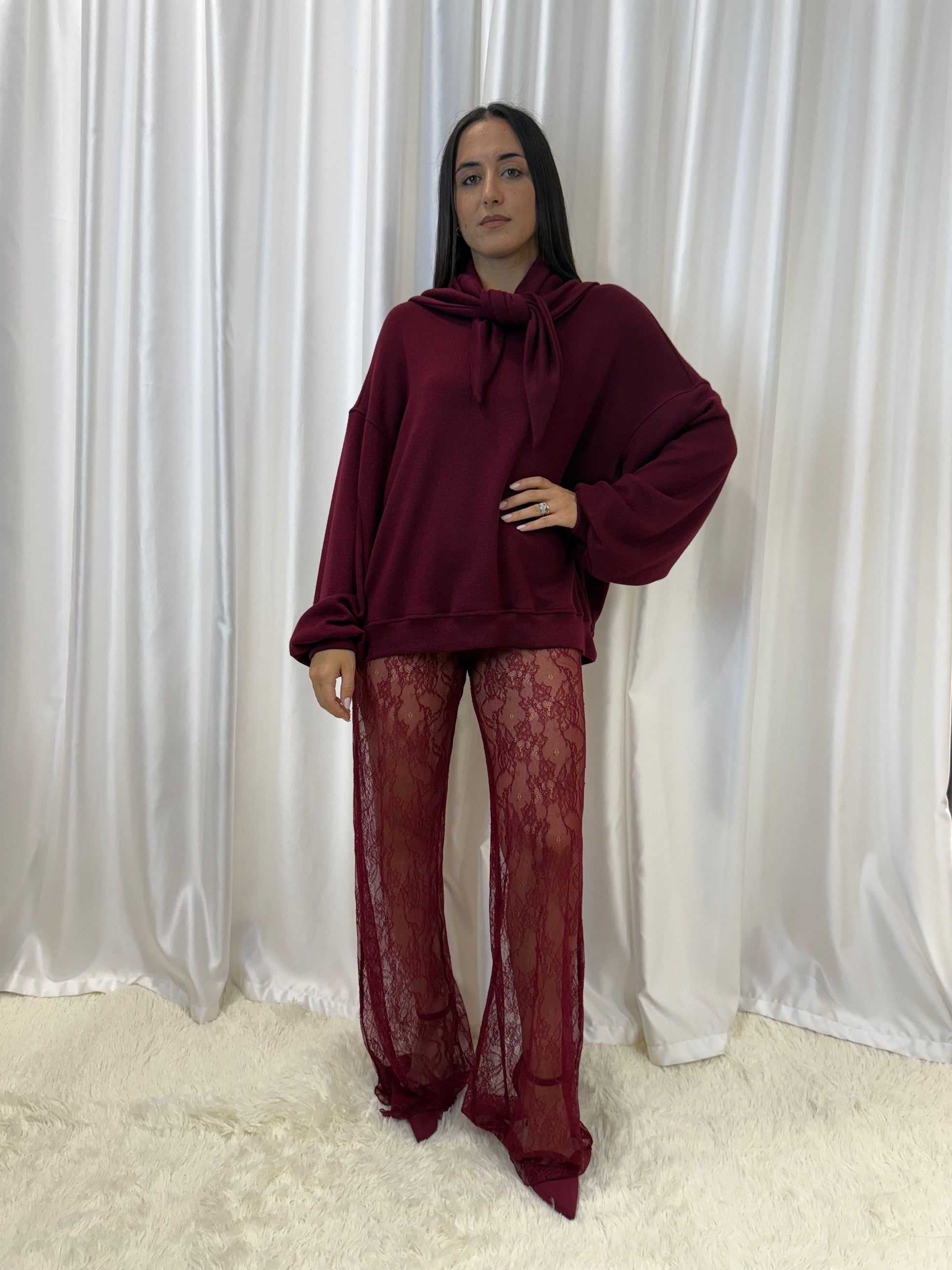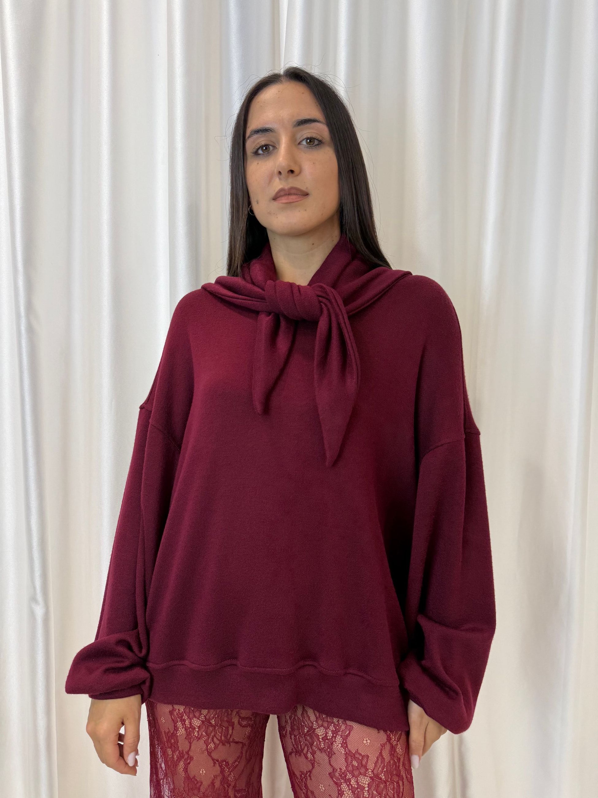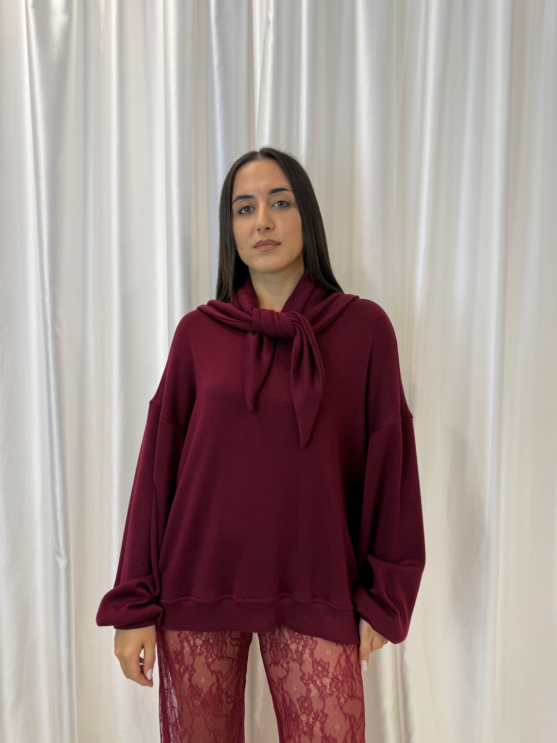 Maglione con foulard in maglia bordeaux – Kostumn1
