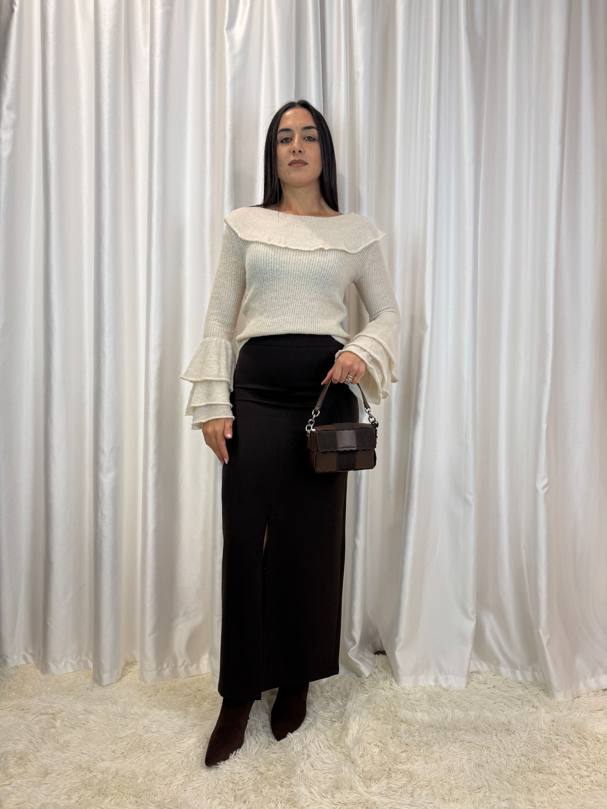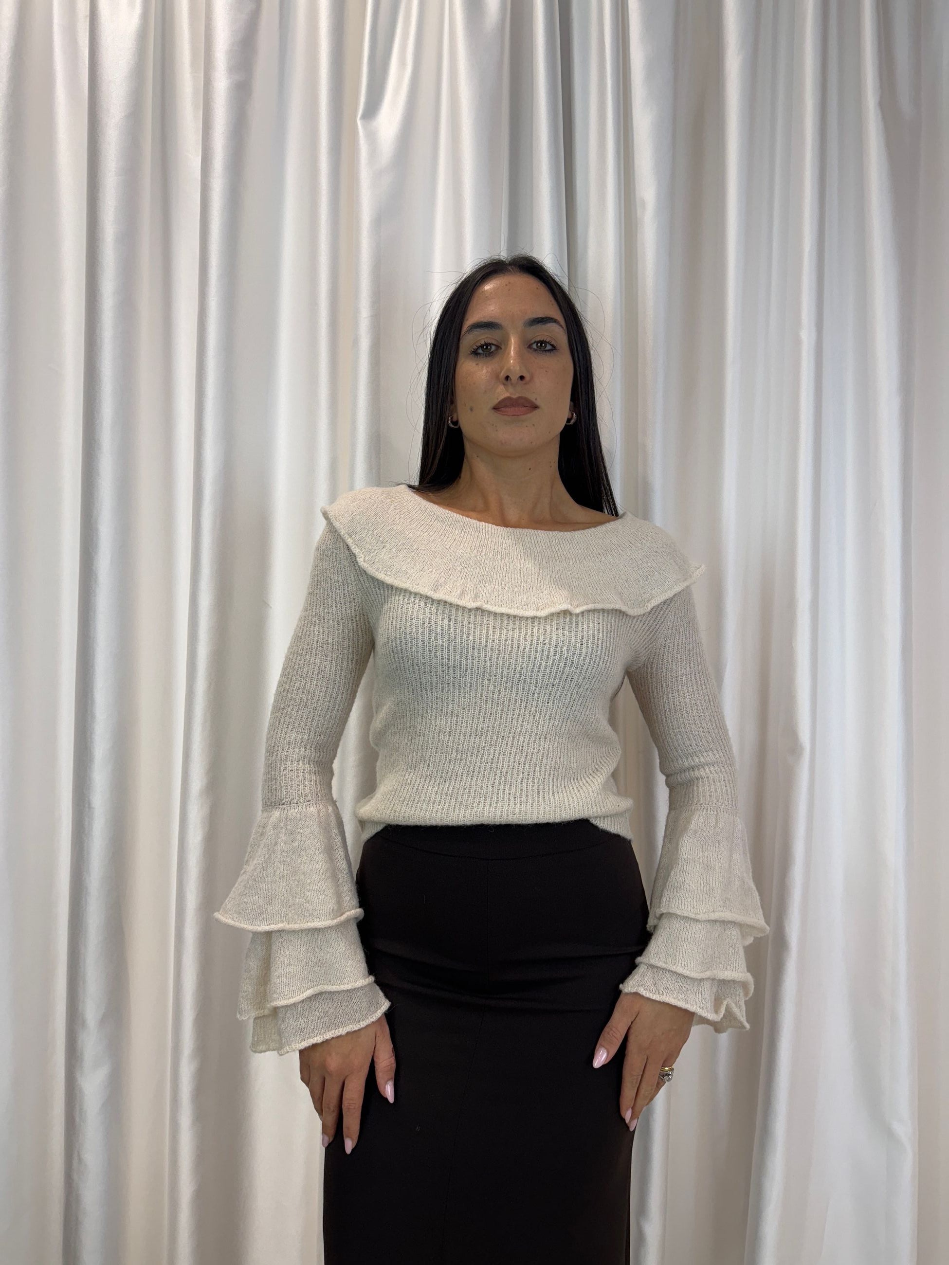 ✔️ Maniche lunghe con balze per un dettaglio elegante