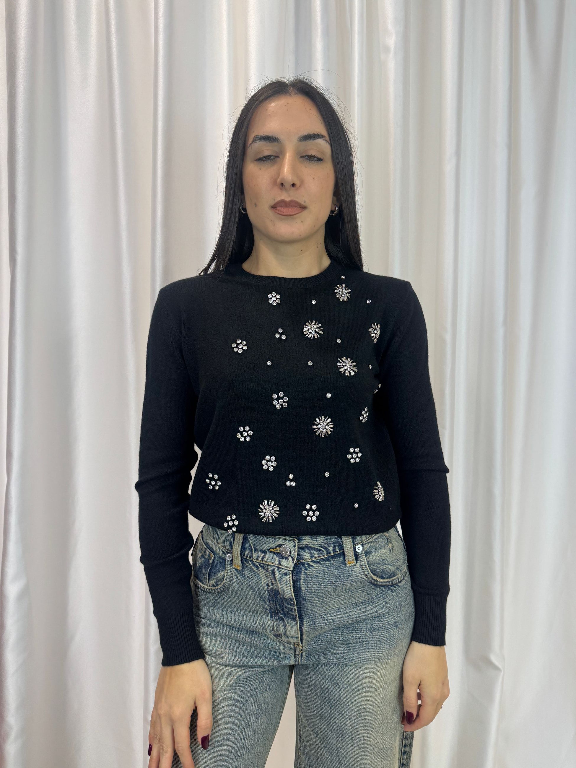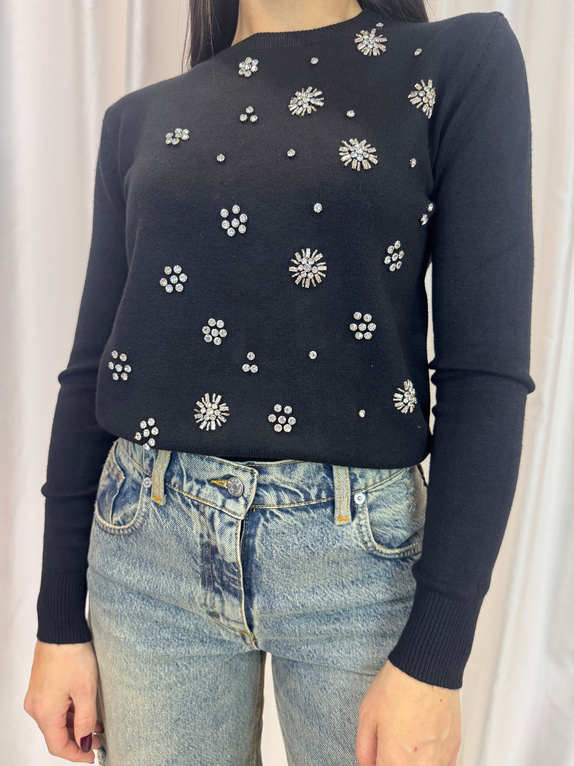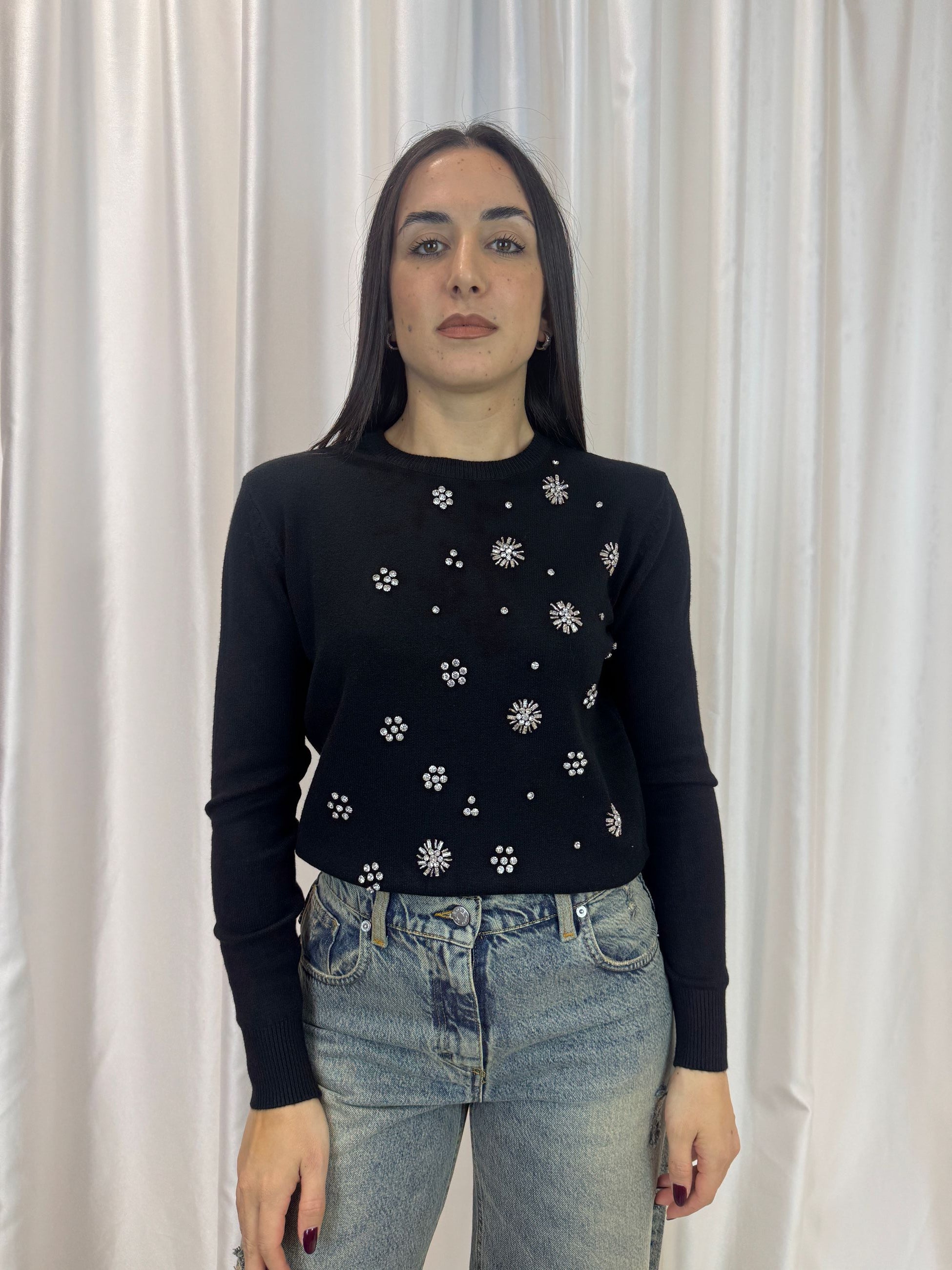 Maglioncino gioiello nero in viscosa – Haveone