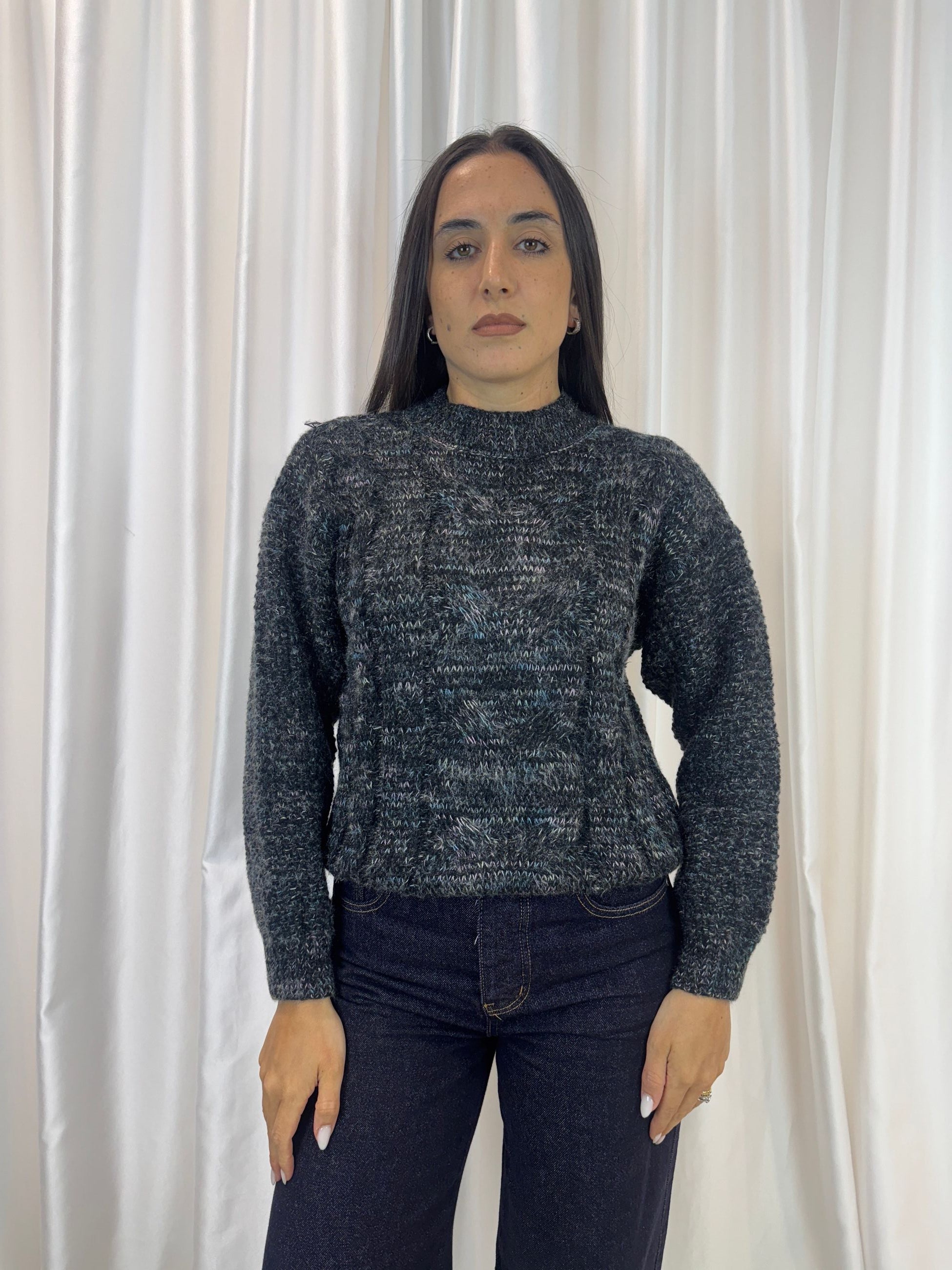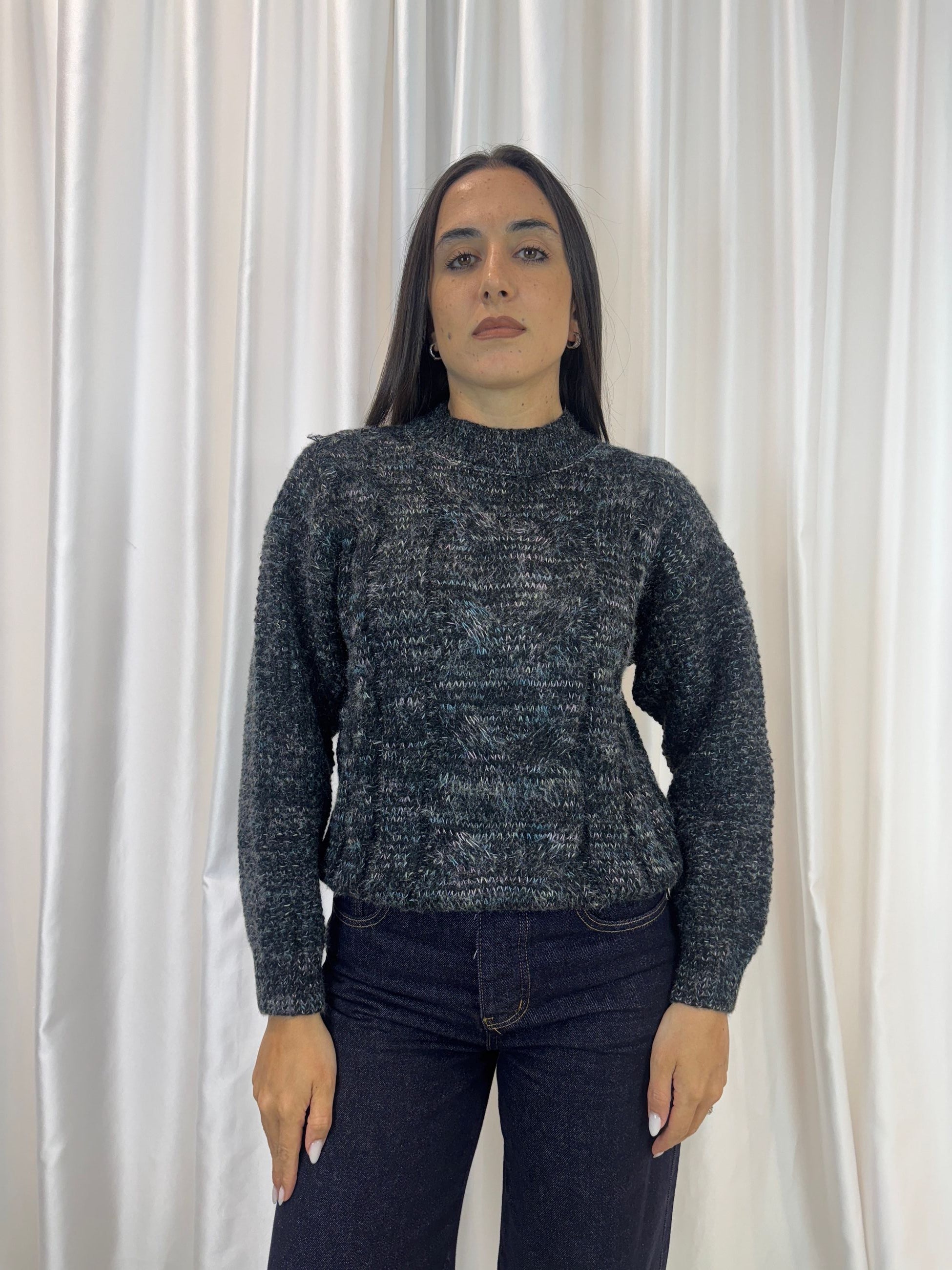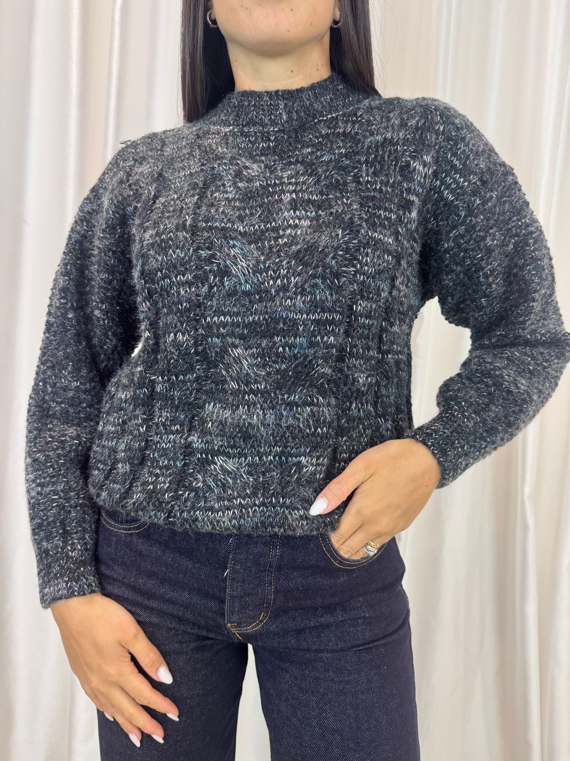 Maglione tricot con trecce nero – Vicky Mood
