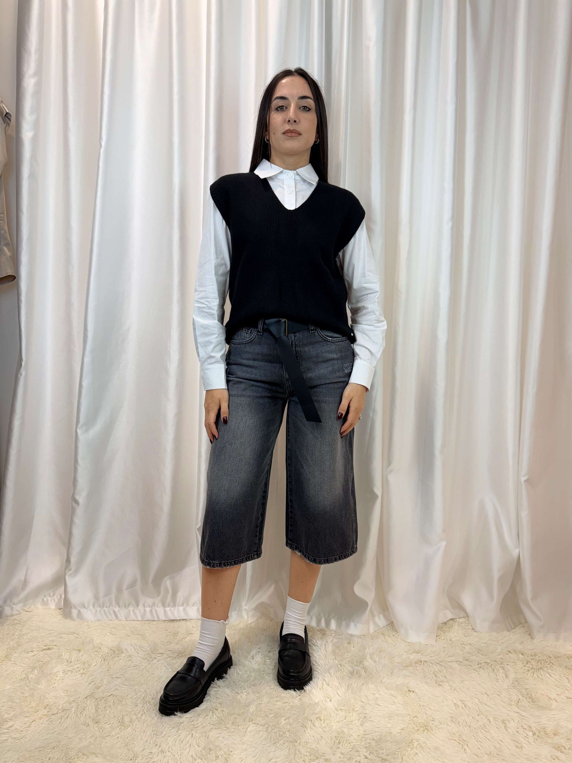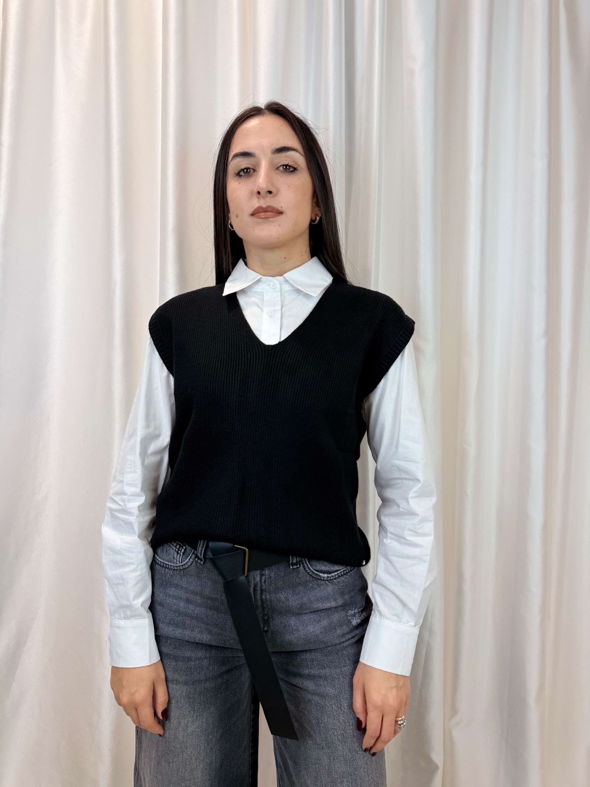 Gilet in maglia costa inglese nero - White Wise