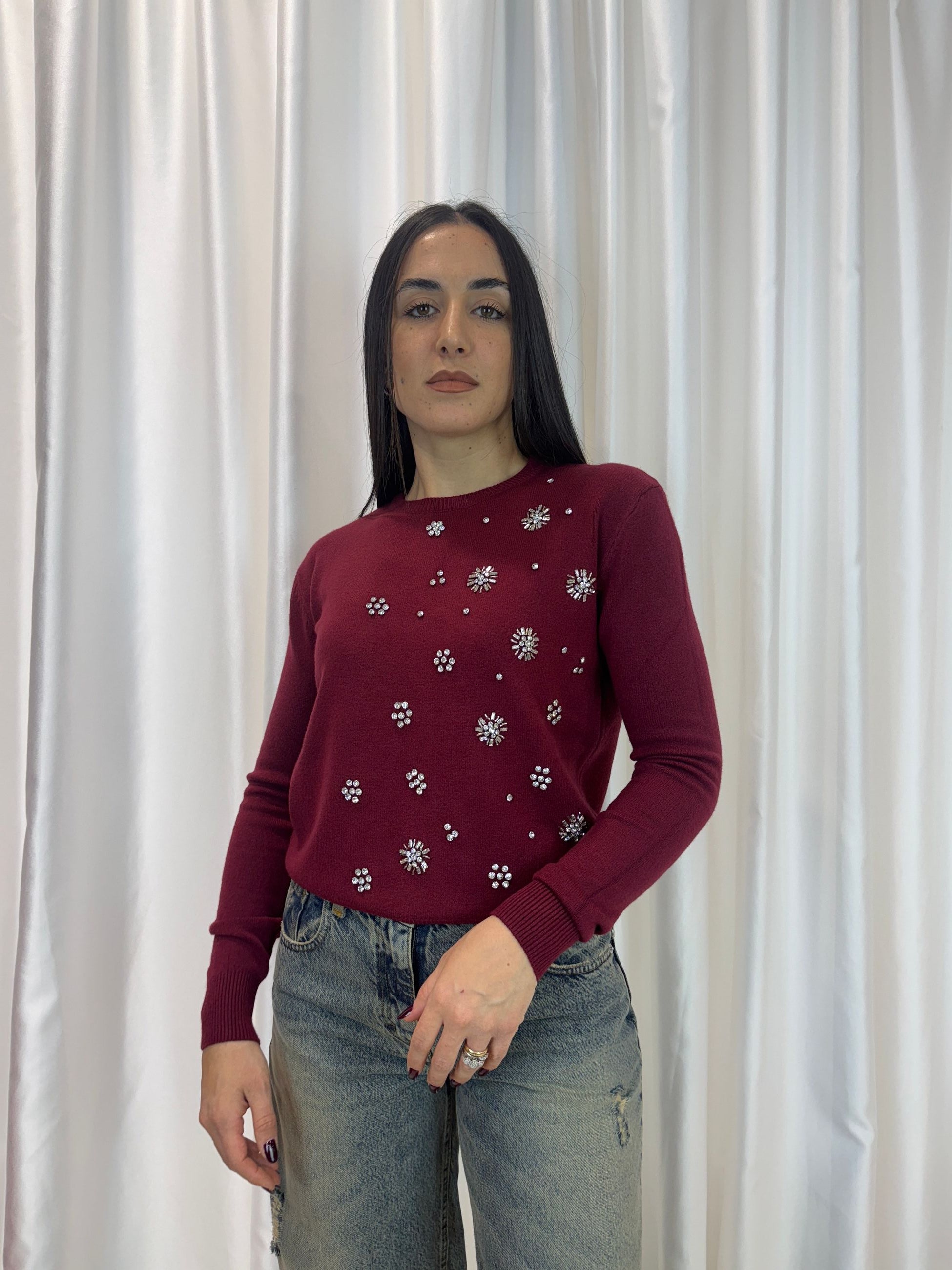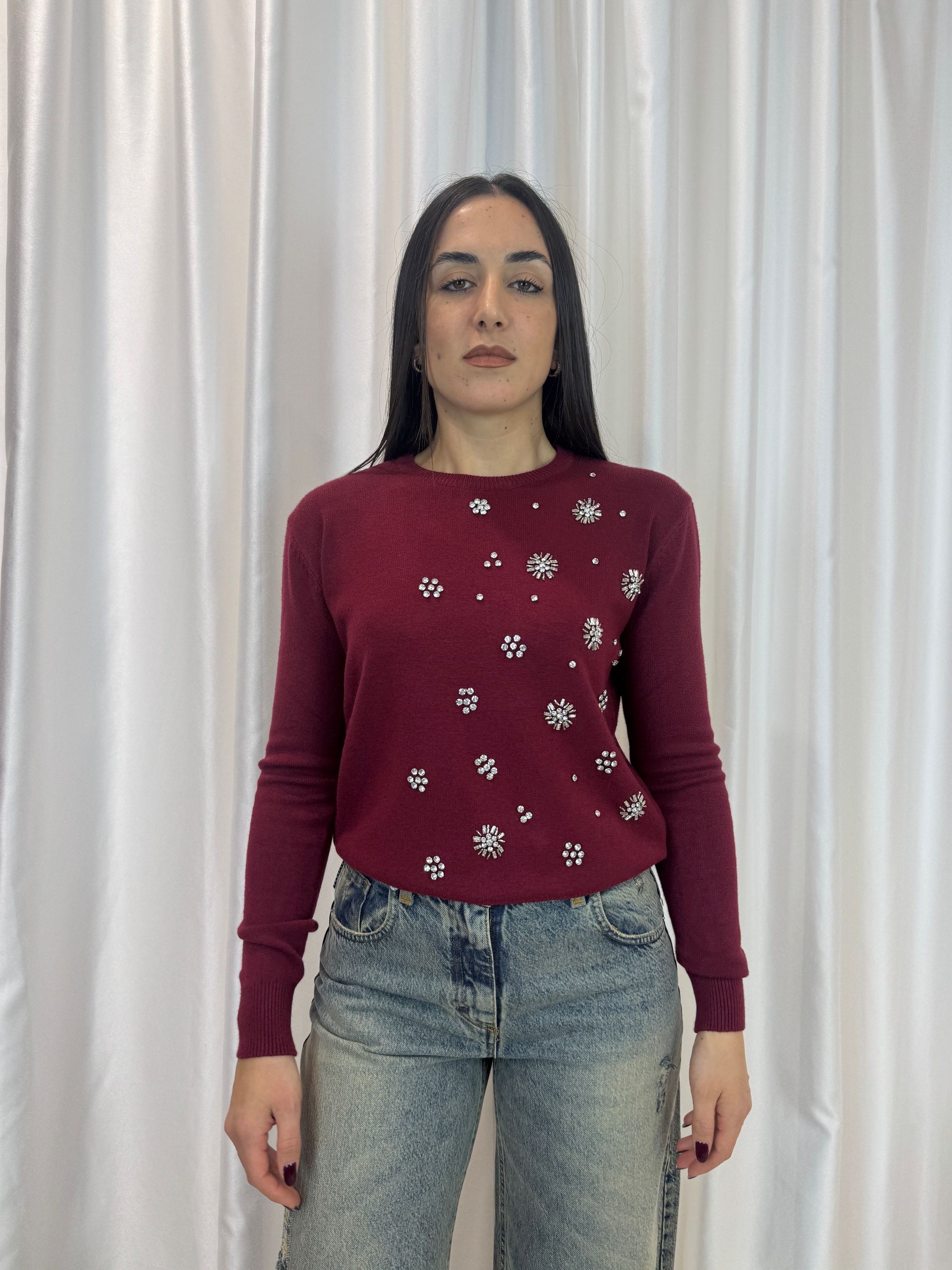 Maglioncino gioiello bordeaux in viscosa – Haveone
