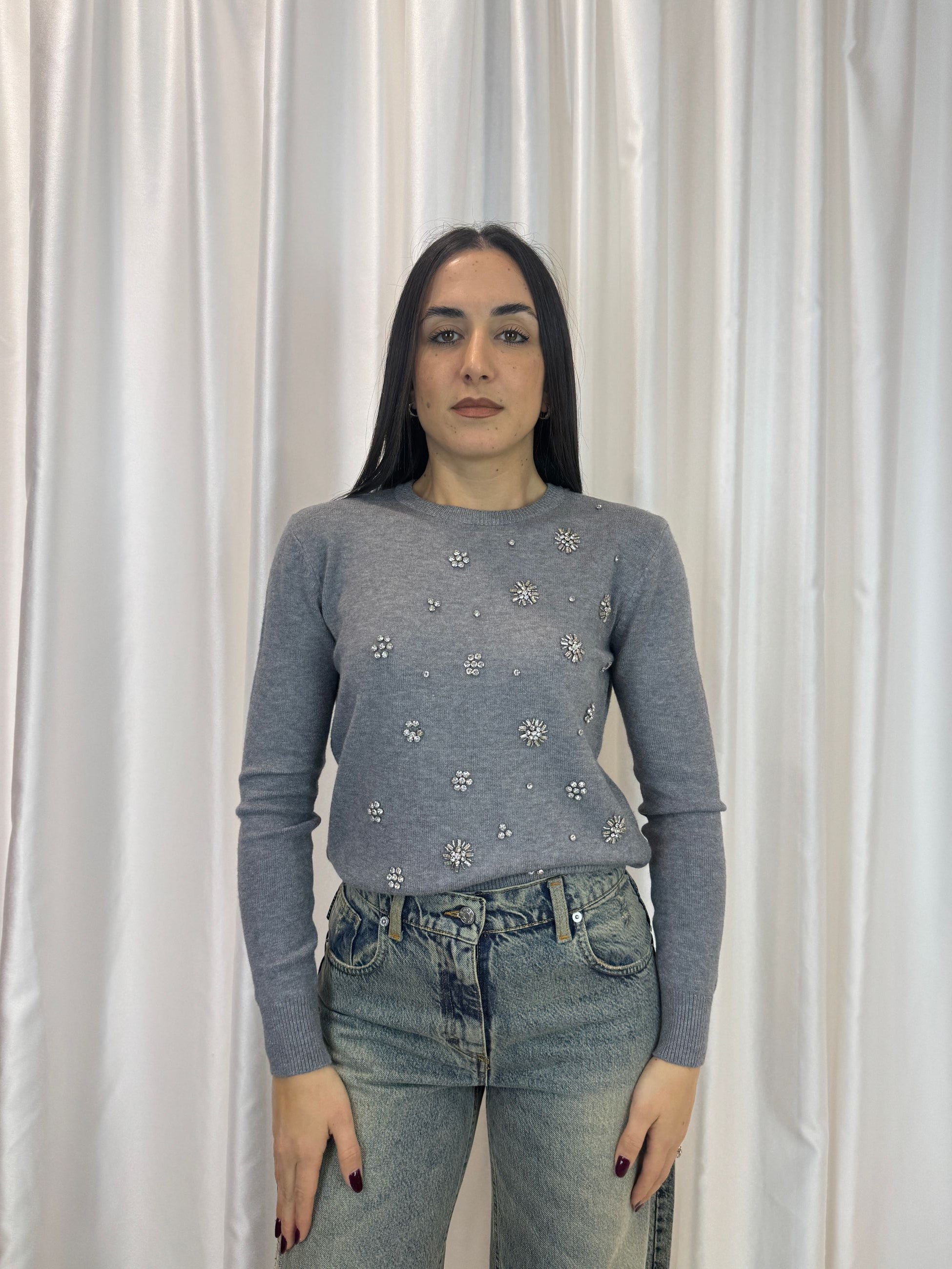 Maglioncino gioiello grigio in viscosa – Haveone