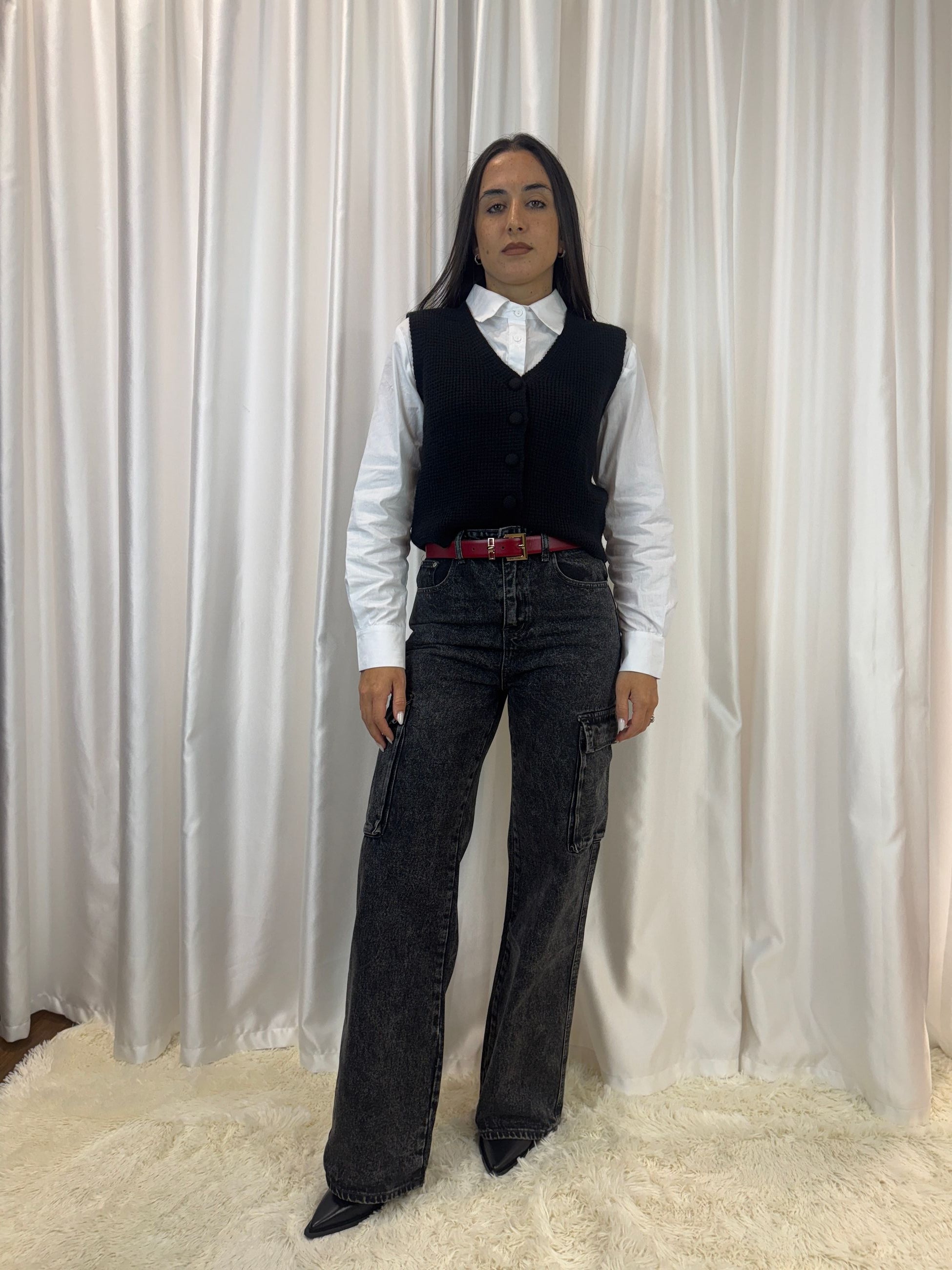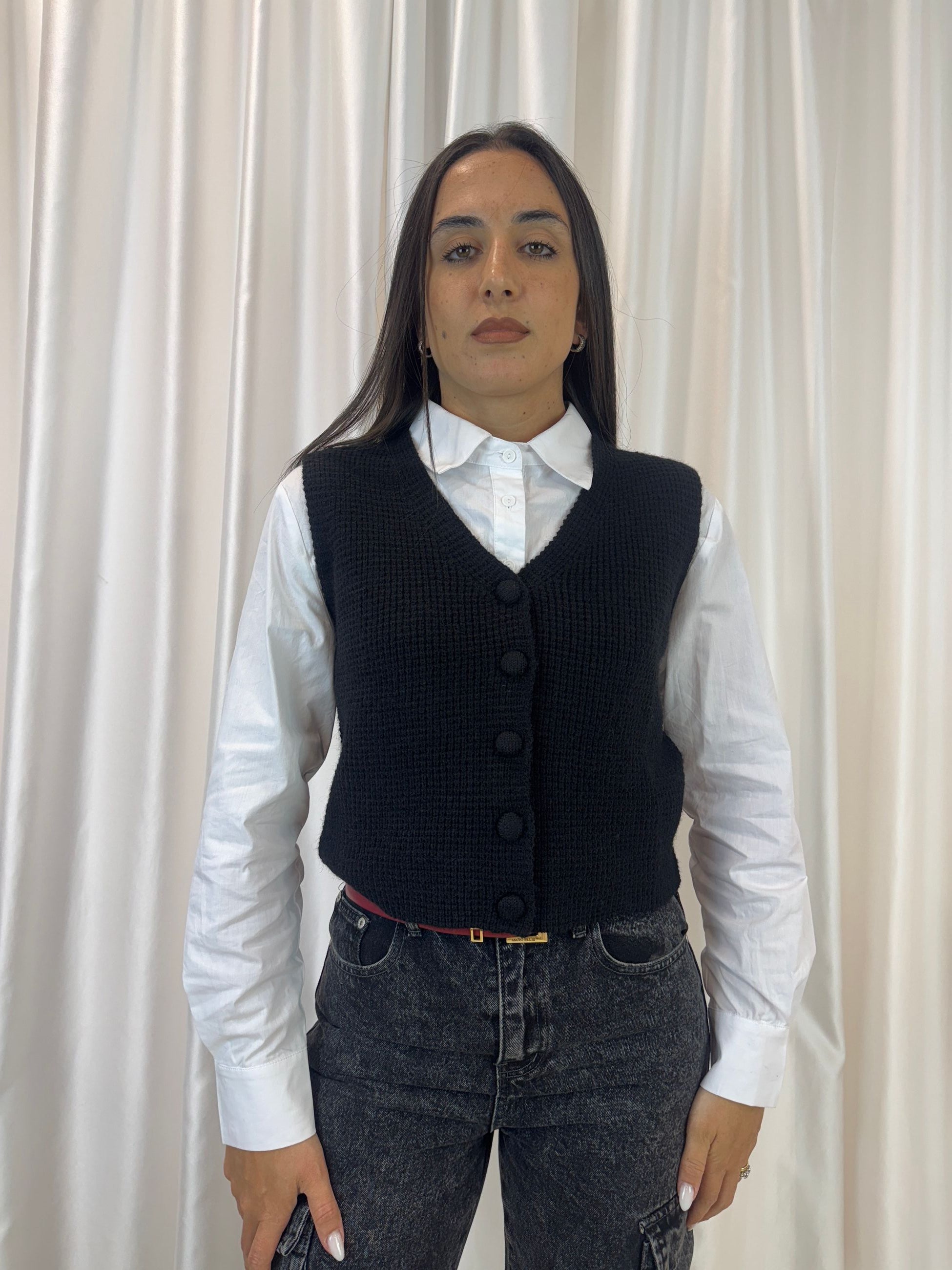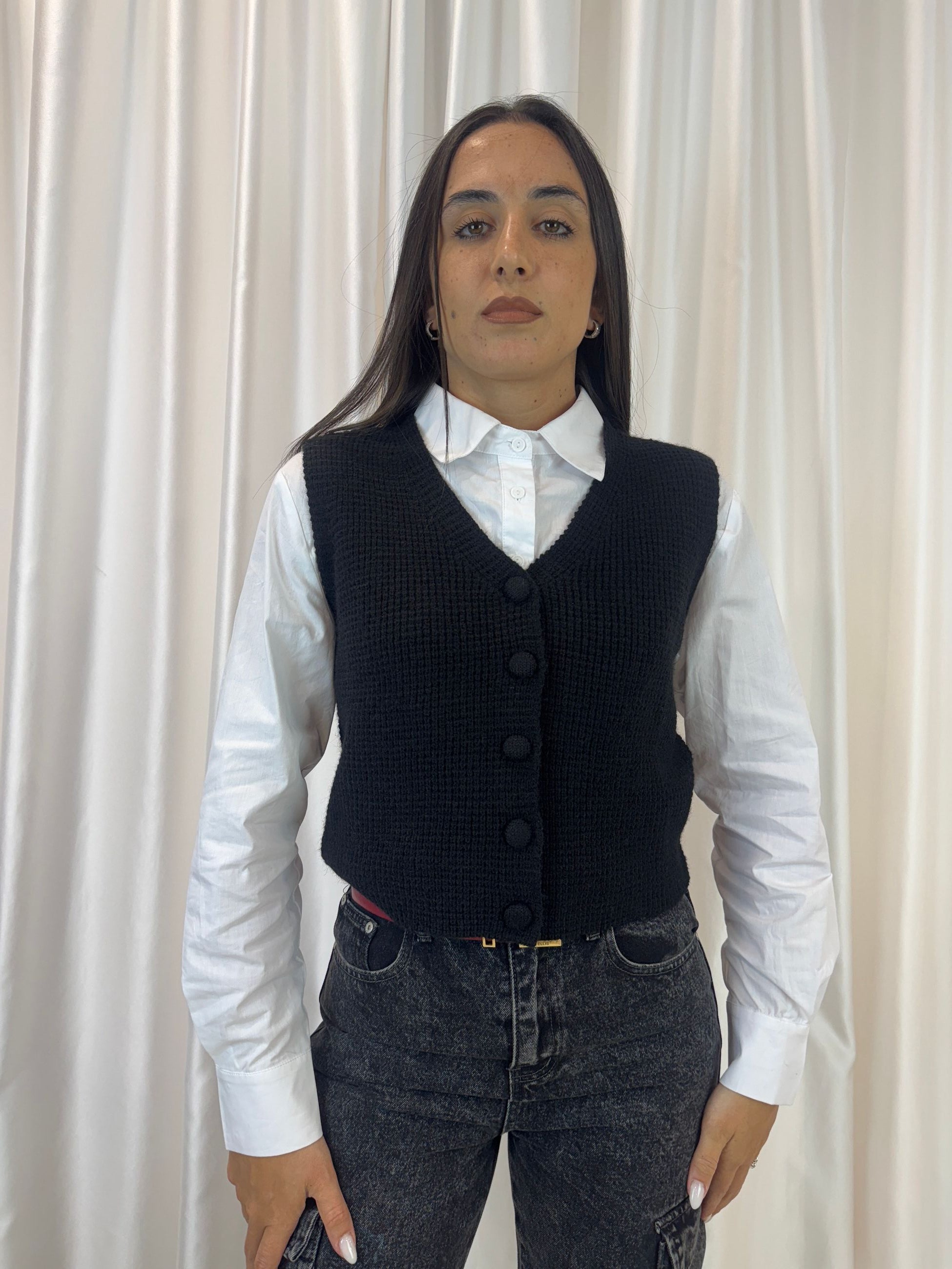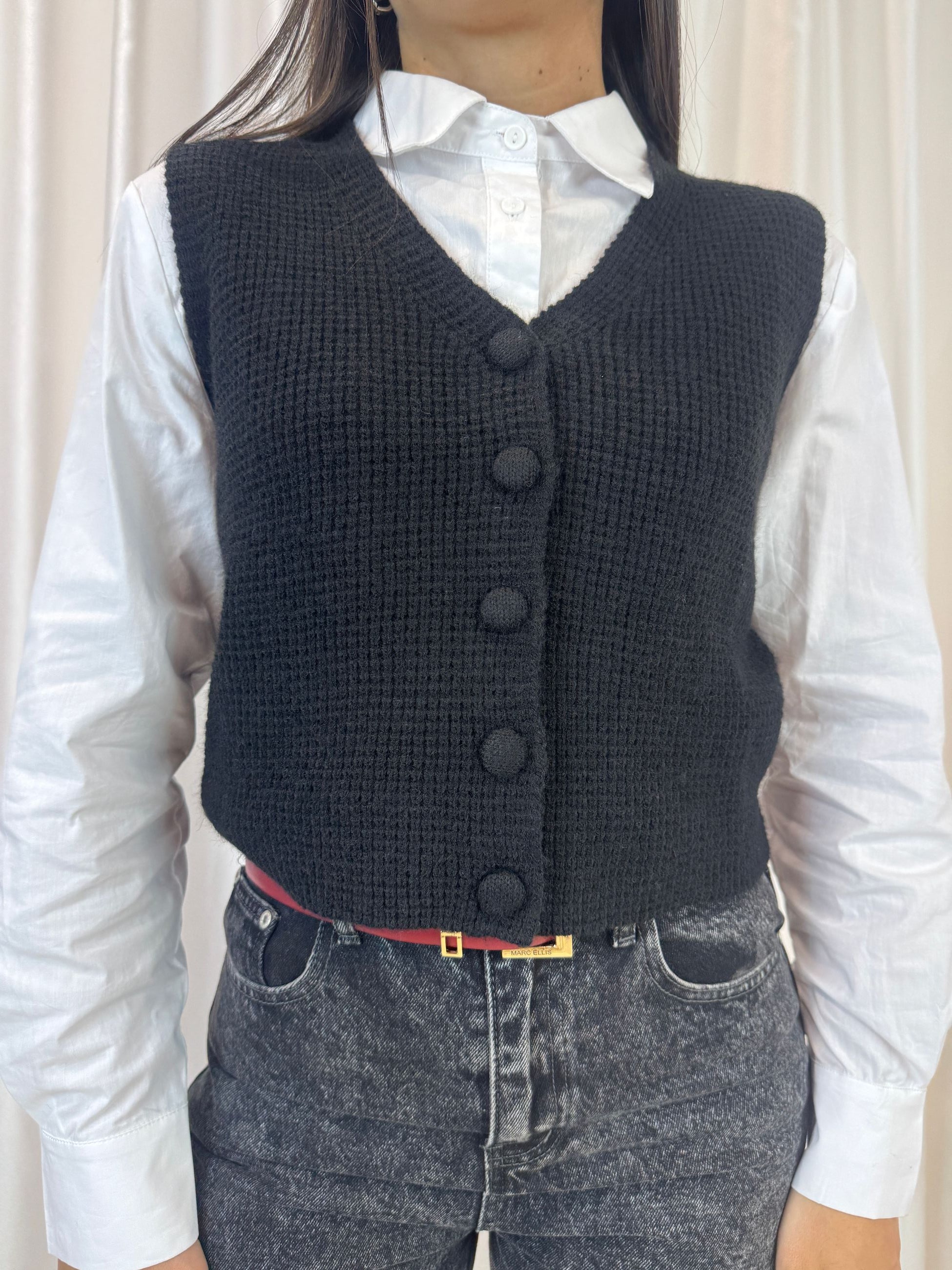 Gilet in maglia con bottoni nero – Vicky Mood