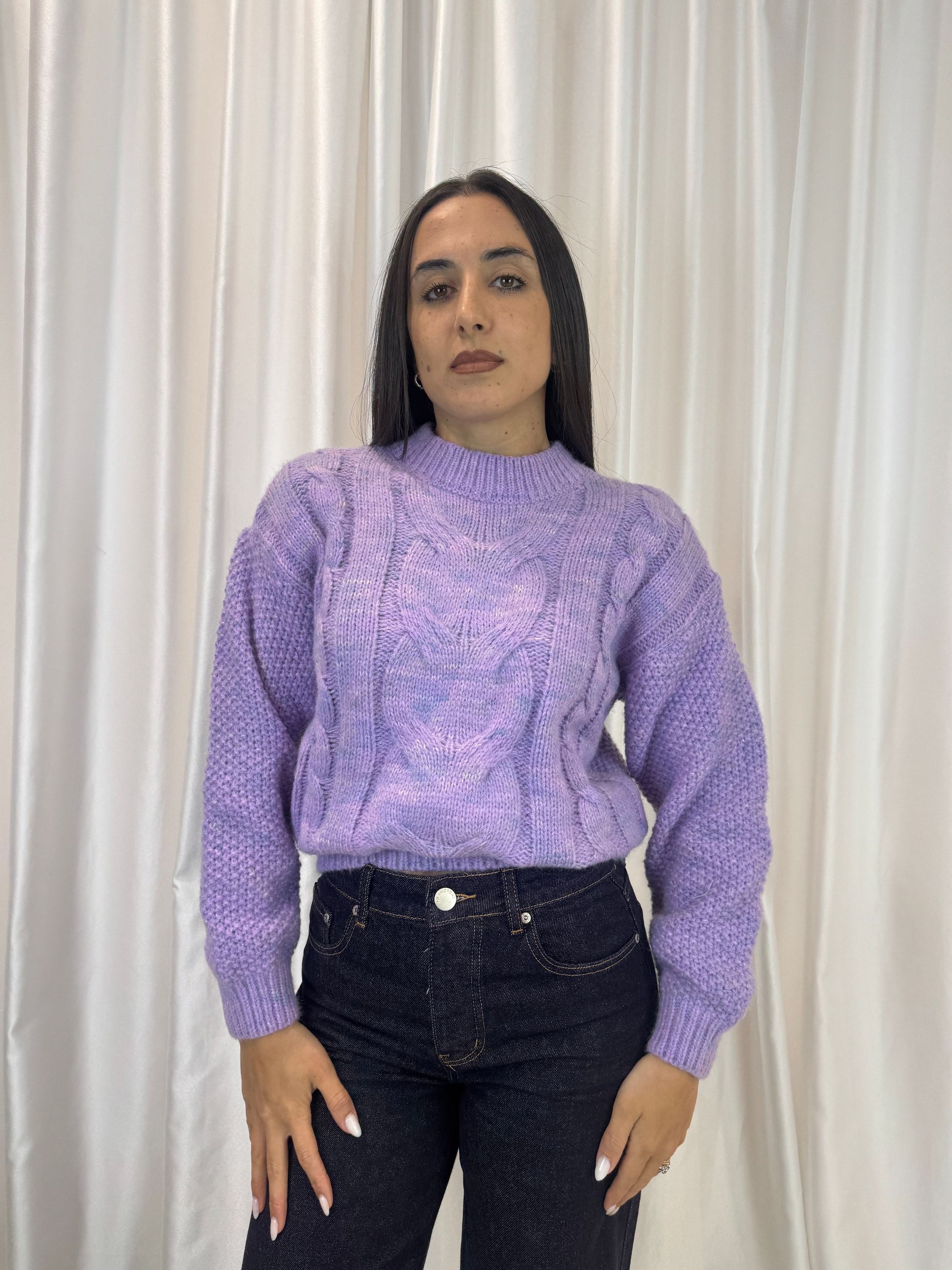 Maglione tricot con trecce lilla– Vicky Mood