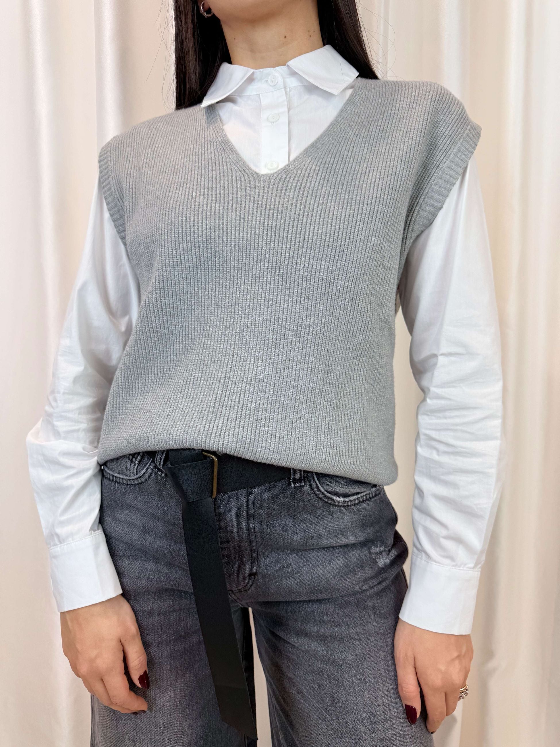 Gilet in maglia costa inglese grigio - White Wise