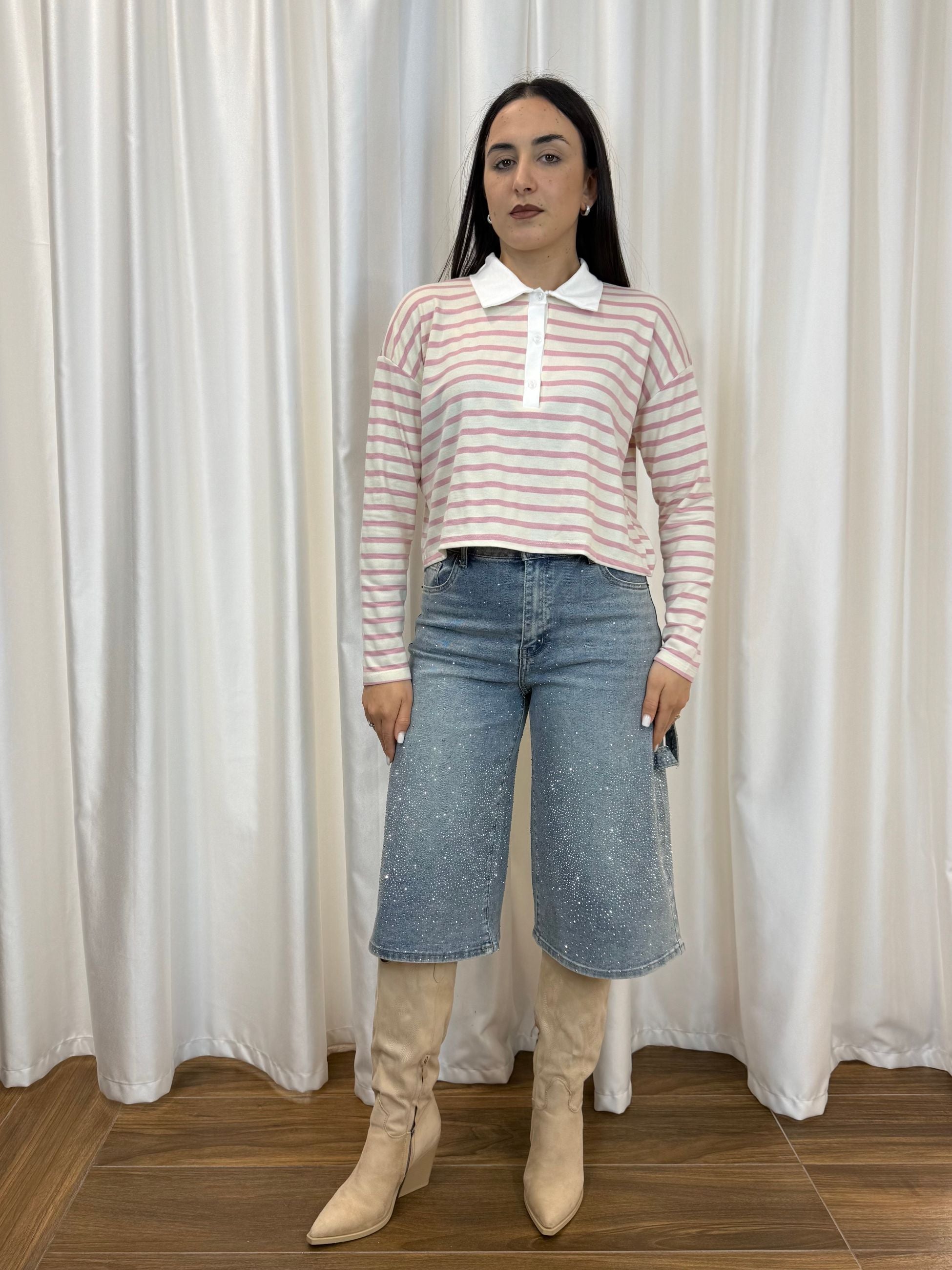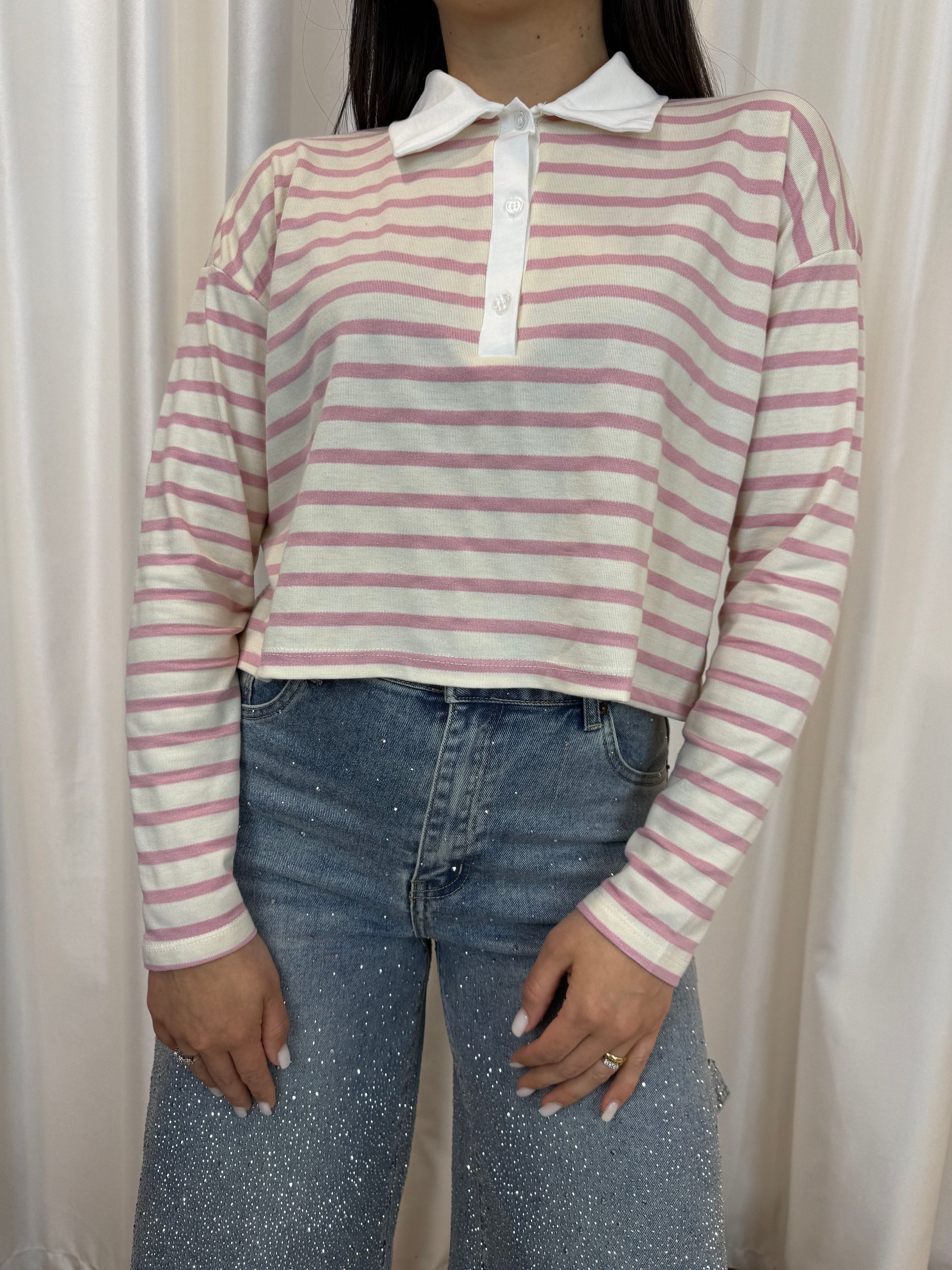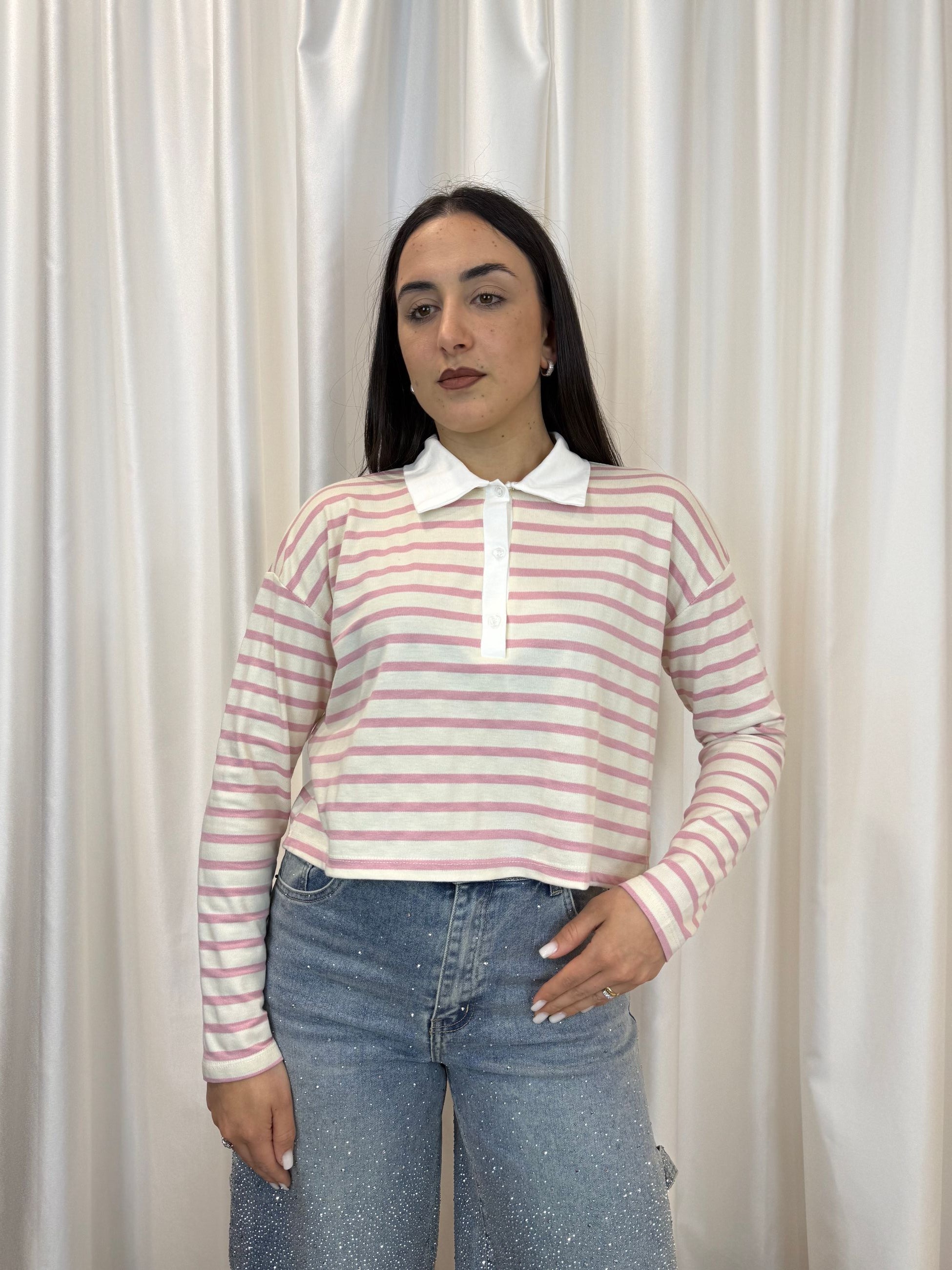 Un capo semplice ma ricercato che unisce lo stile casual al fascino preppy! Perfetta con jeans, pantaloni o gonne, è l’alleata ideale per i tuoi look quotidiani, sempre con un tocco di personalità.