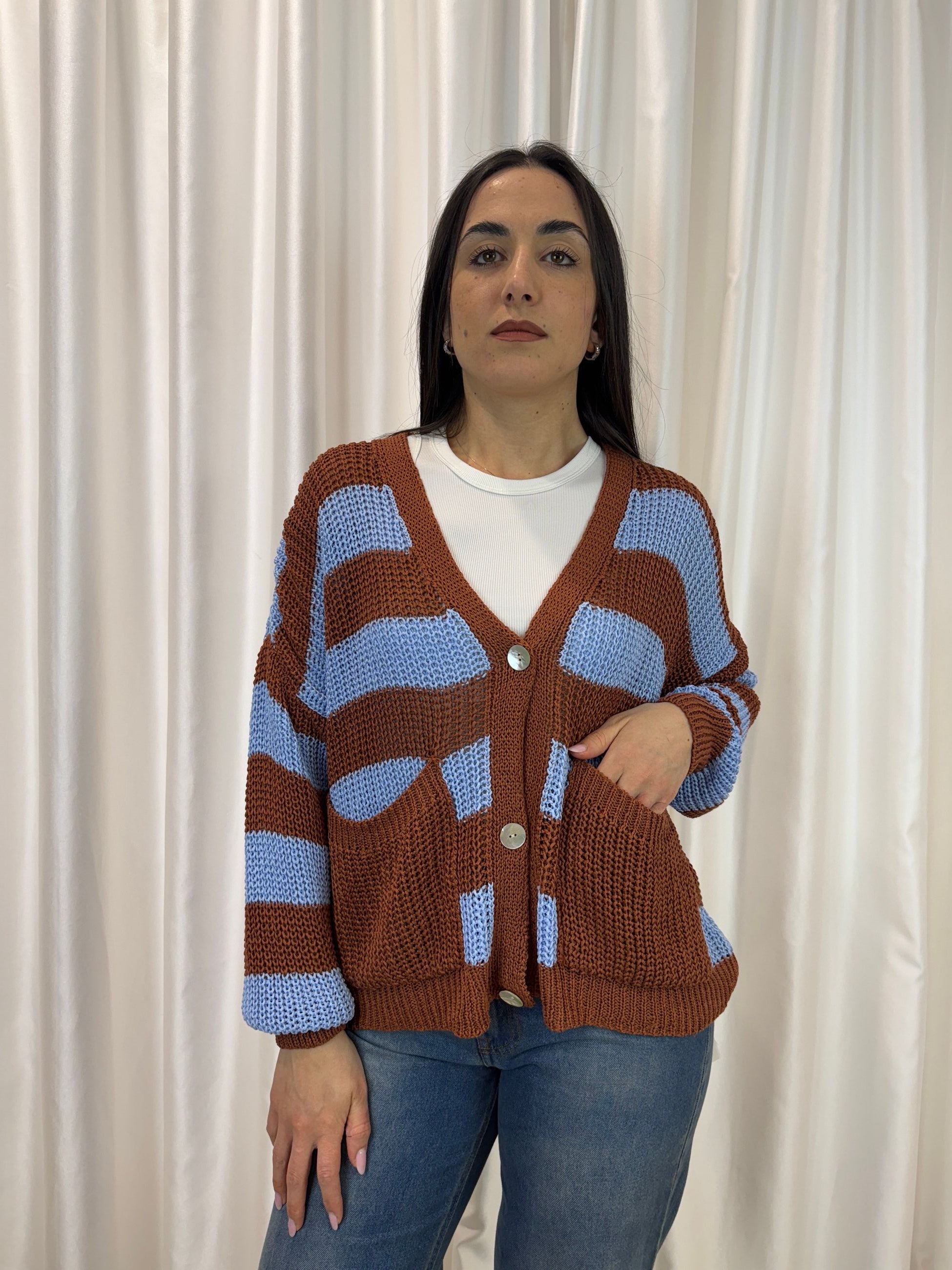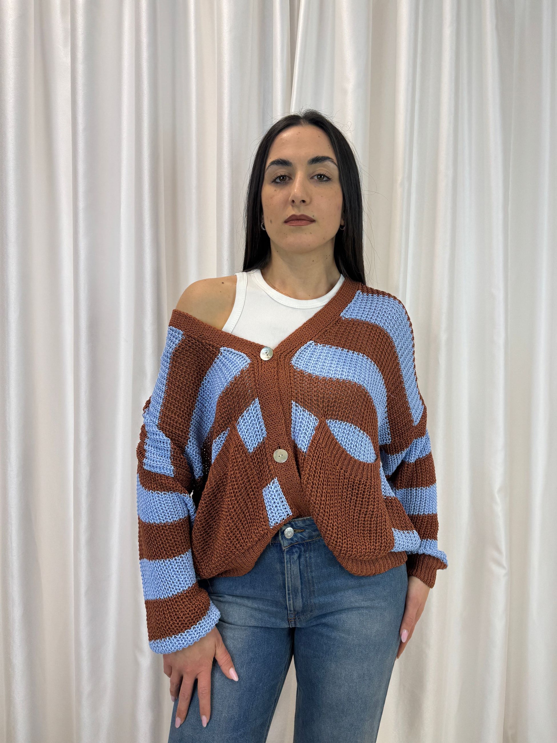 Cardigan donna a righe cuoio/cielo – Lokita