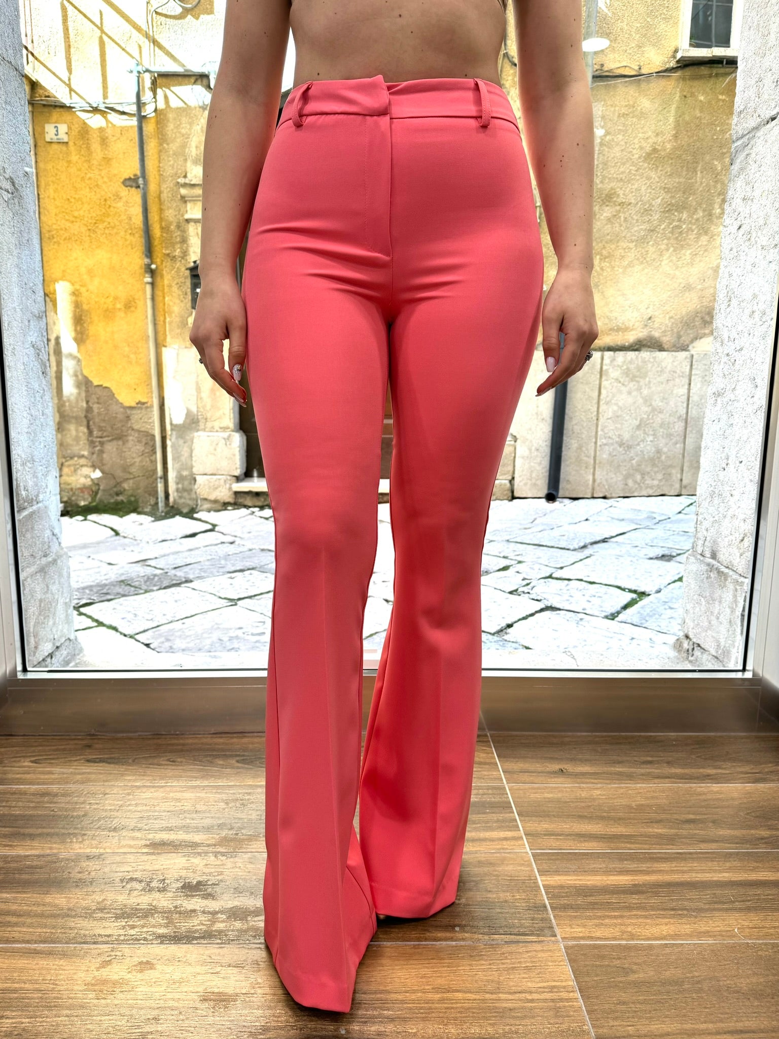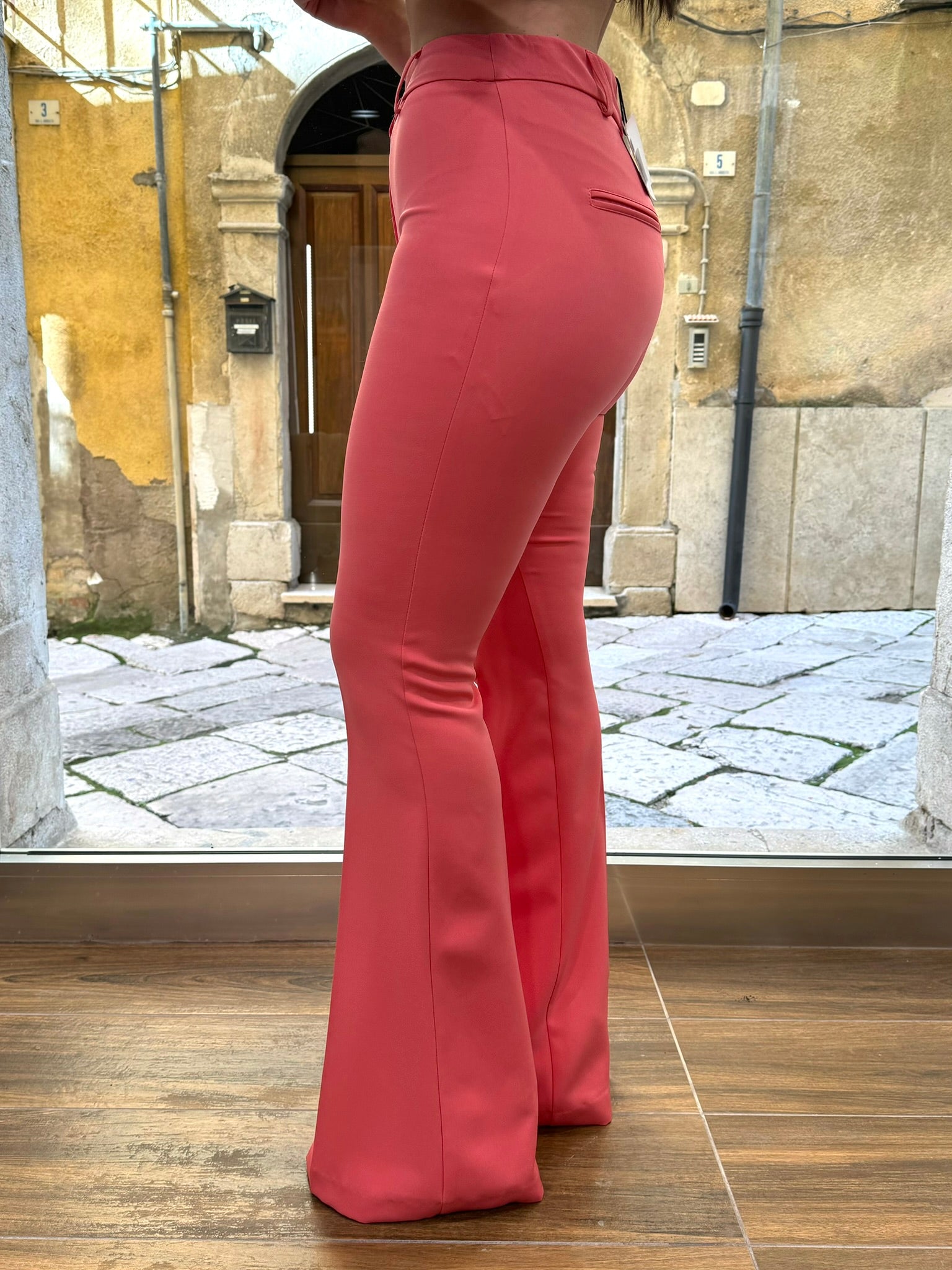 Linea slanciata, fit impeccabile e colore vibrante: questo pantalone a zampa è il pezzo chiave per look sofisticati e femminili. Il taglio a vita alta allunga otticamente la silhouette, mentre il fondo svasato dona un’eleganza retrò che conquista. Perfetto con il blazer coordinato per cerimonie o eventi, ma anche con una semplice camicia per un look da ufficio ricercato.