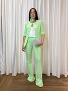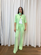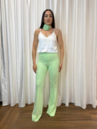 Un tocco di freschezza nel guardaroba! Questo pantalone verde menta è perfetto per chi ama farsi notare con stile, senza rinunciare alla comodità.