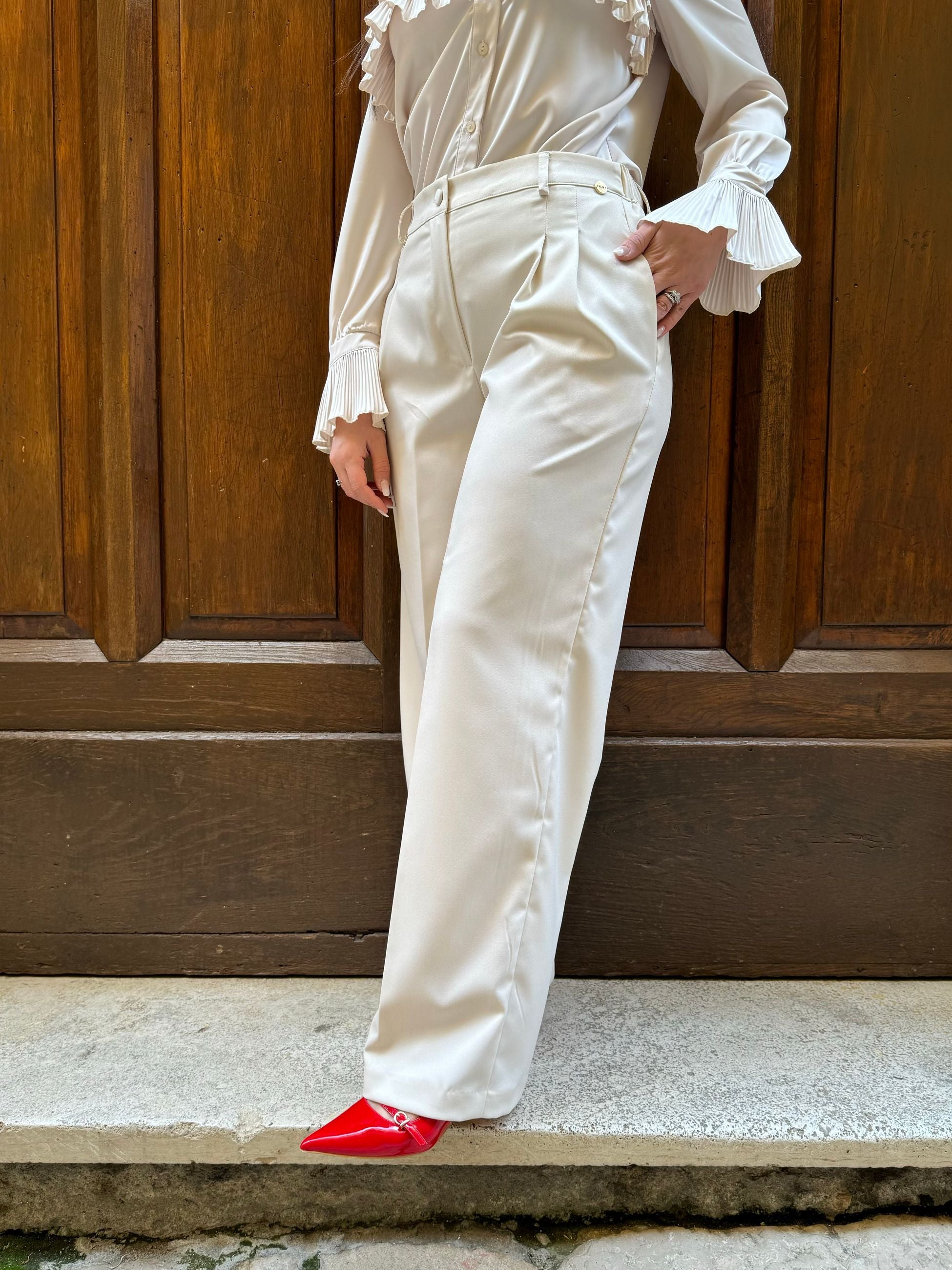 Linee pulite, taglio sartoriale e un colore raffinato: questi pantaloni sono un vero passe-partout per creare look sofisticati e versatili. Perfetti sia con bluse romantiche che con il gilet coordinato