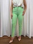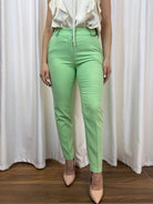 Perfetto per la bella stagione, questo pantalone a sigaretta valorizza la silhouette con eleganza e semplicità. Un tocco di colore che si abbina facilmente sia per il giorno che per la sera.