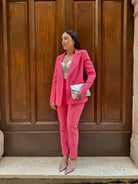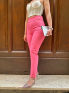 Pantalone a sigaretta in tessuto sostenuto con bustino e zip laterale a scomparsa.