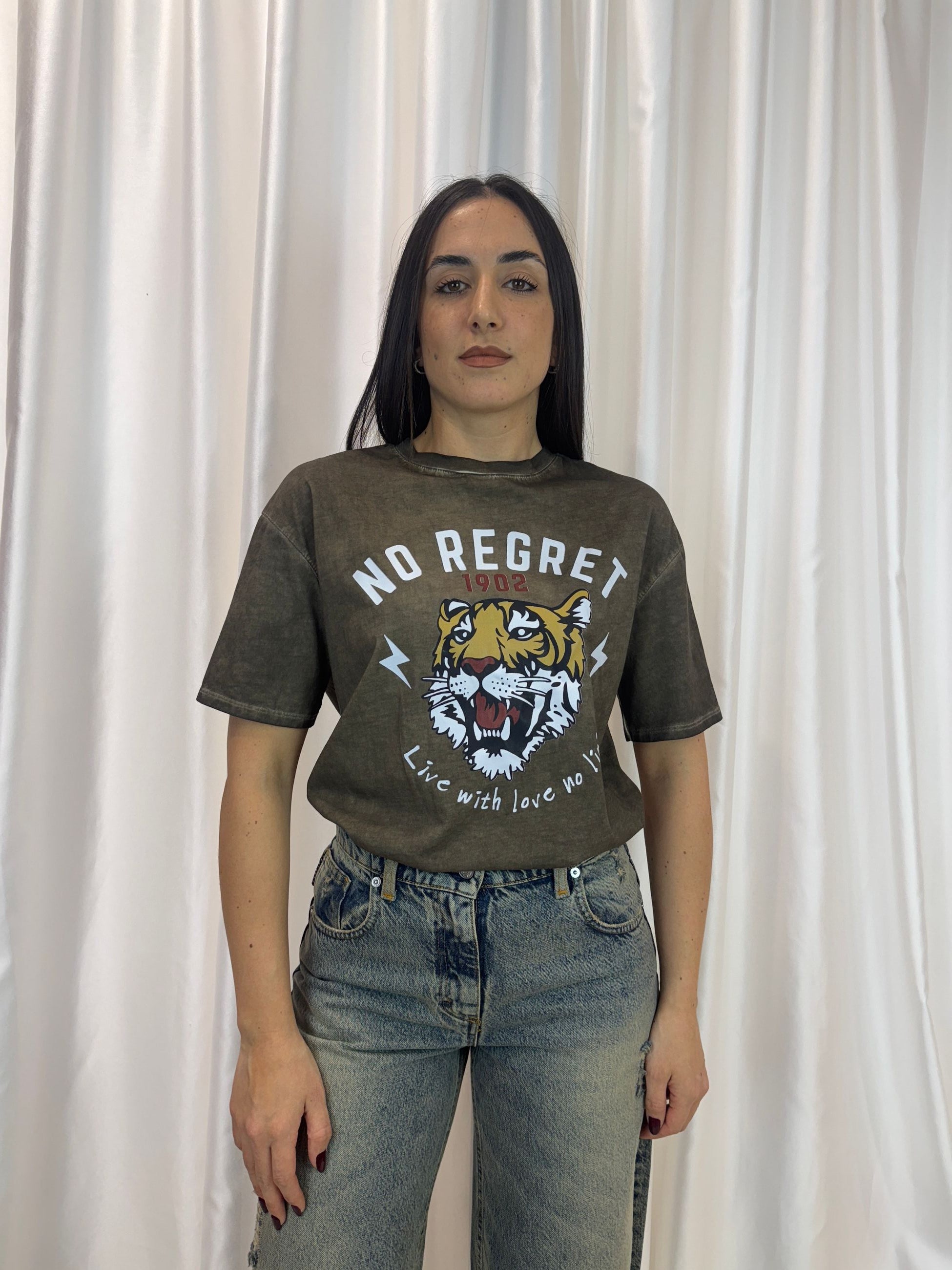 T-shirt over nera con stampa tigre Dreamer – Haveone