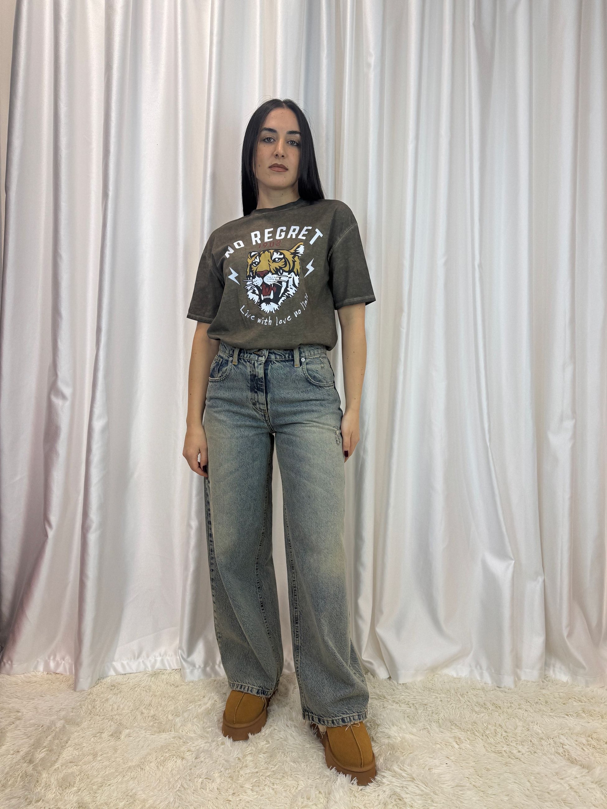 ✔️ Stampa grafica “NO REGRET” con tigre e lettering
