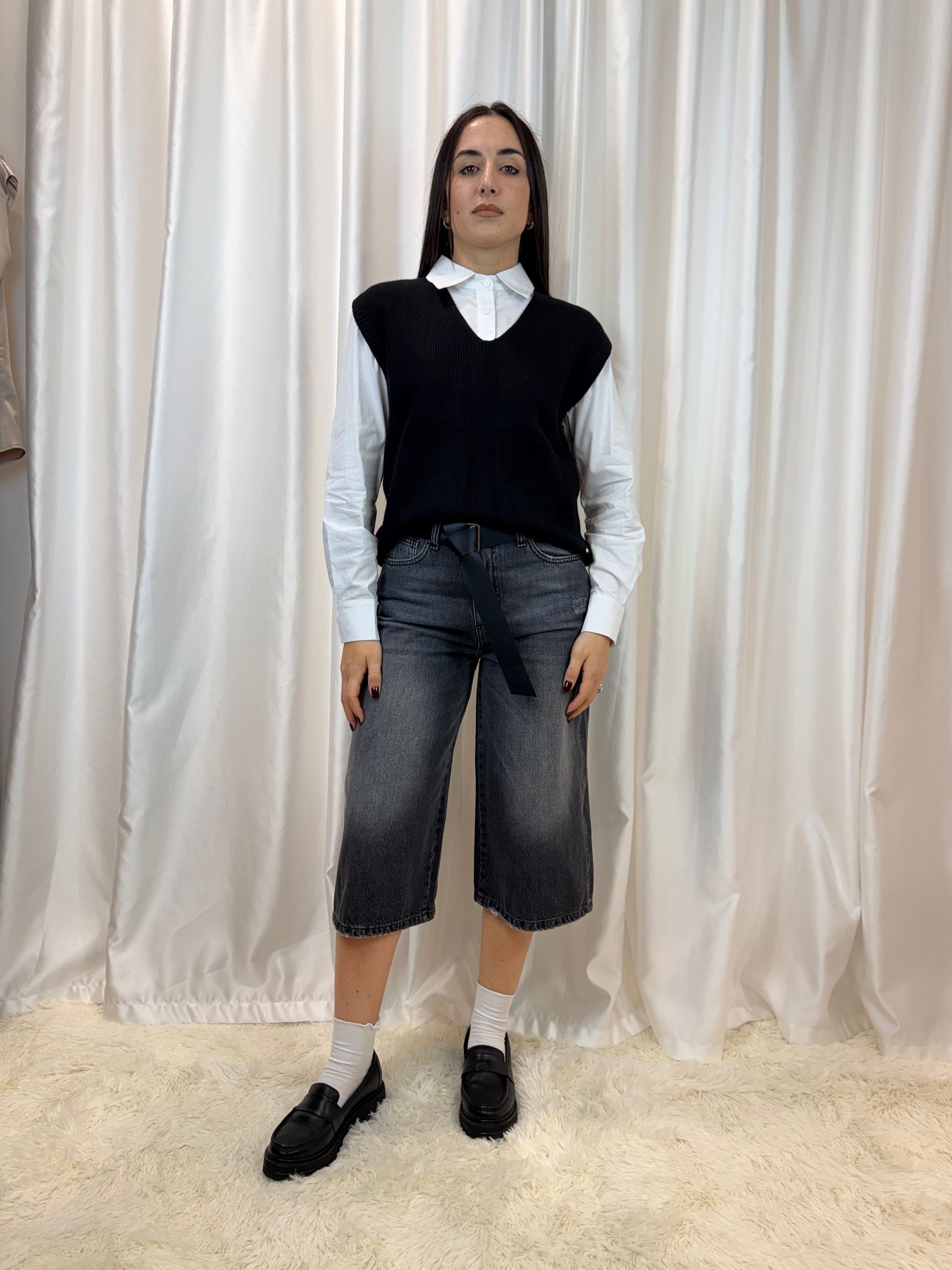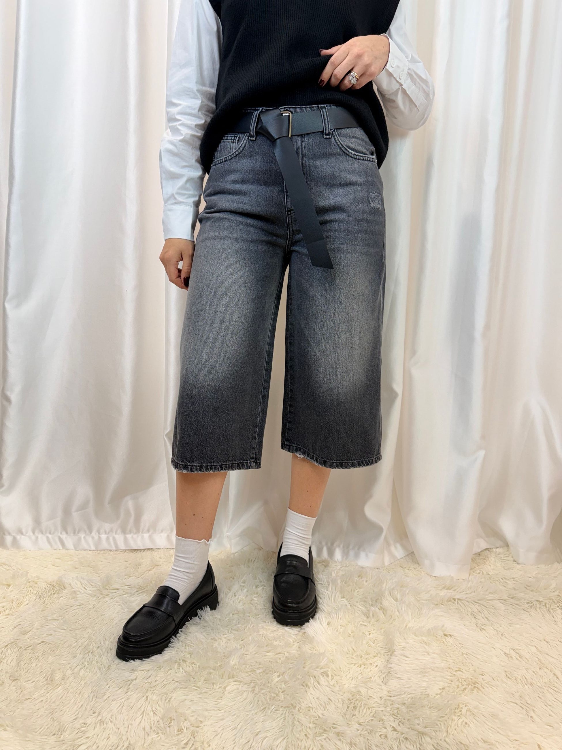 Bermuda Koji in denim grigio con cintura – Haveone