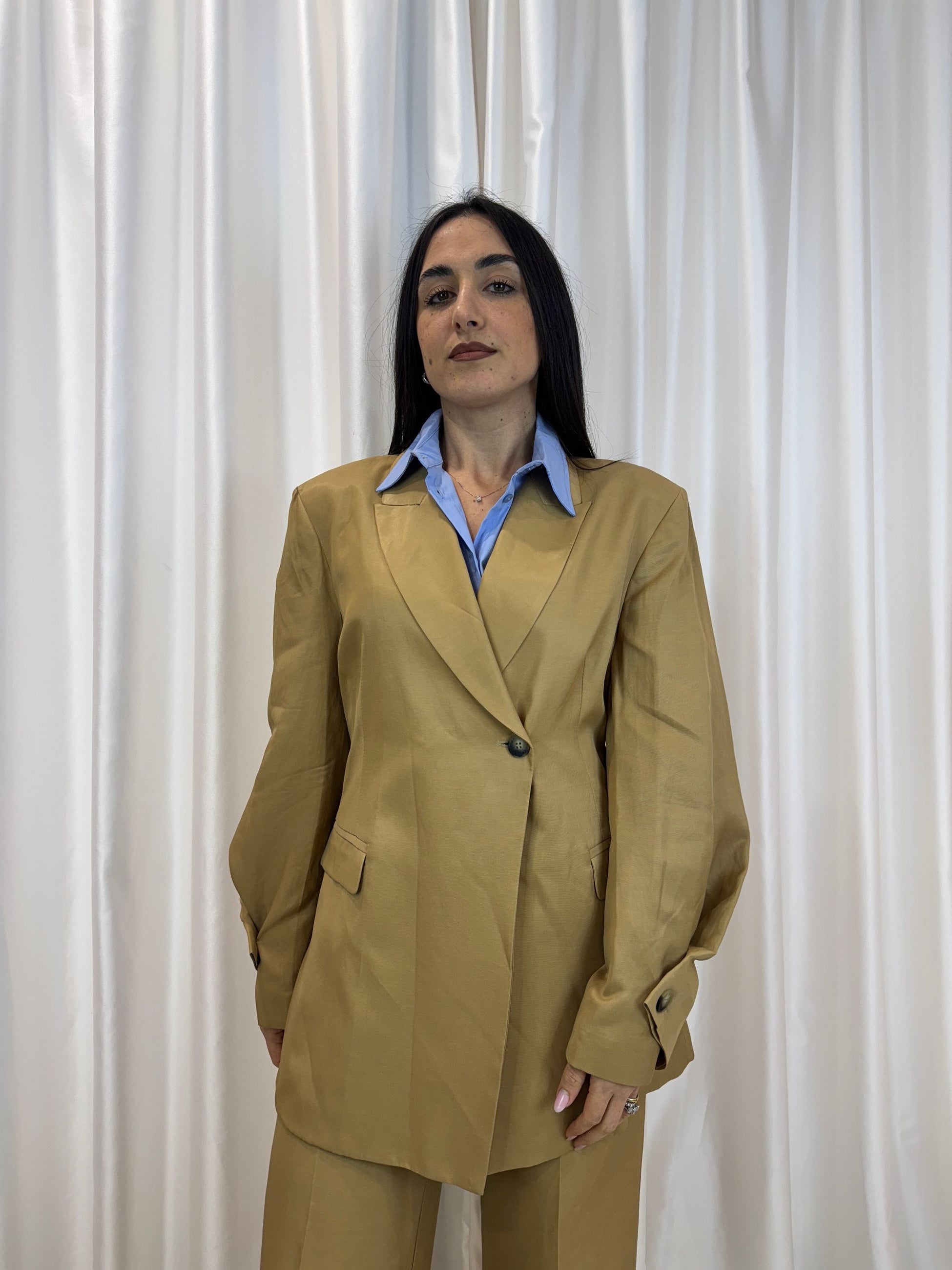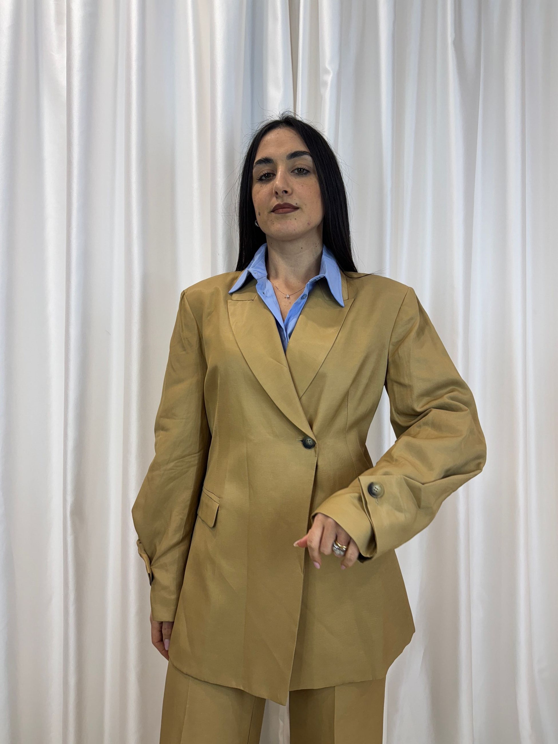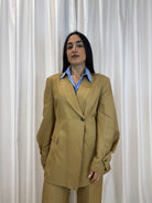 Blazer miele viscosa e lino con manica balloon - Haveone