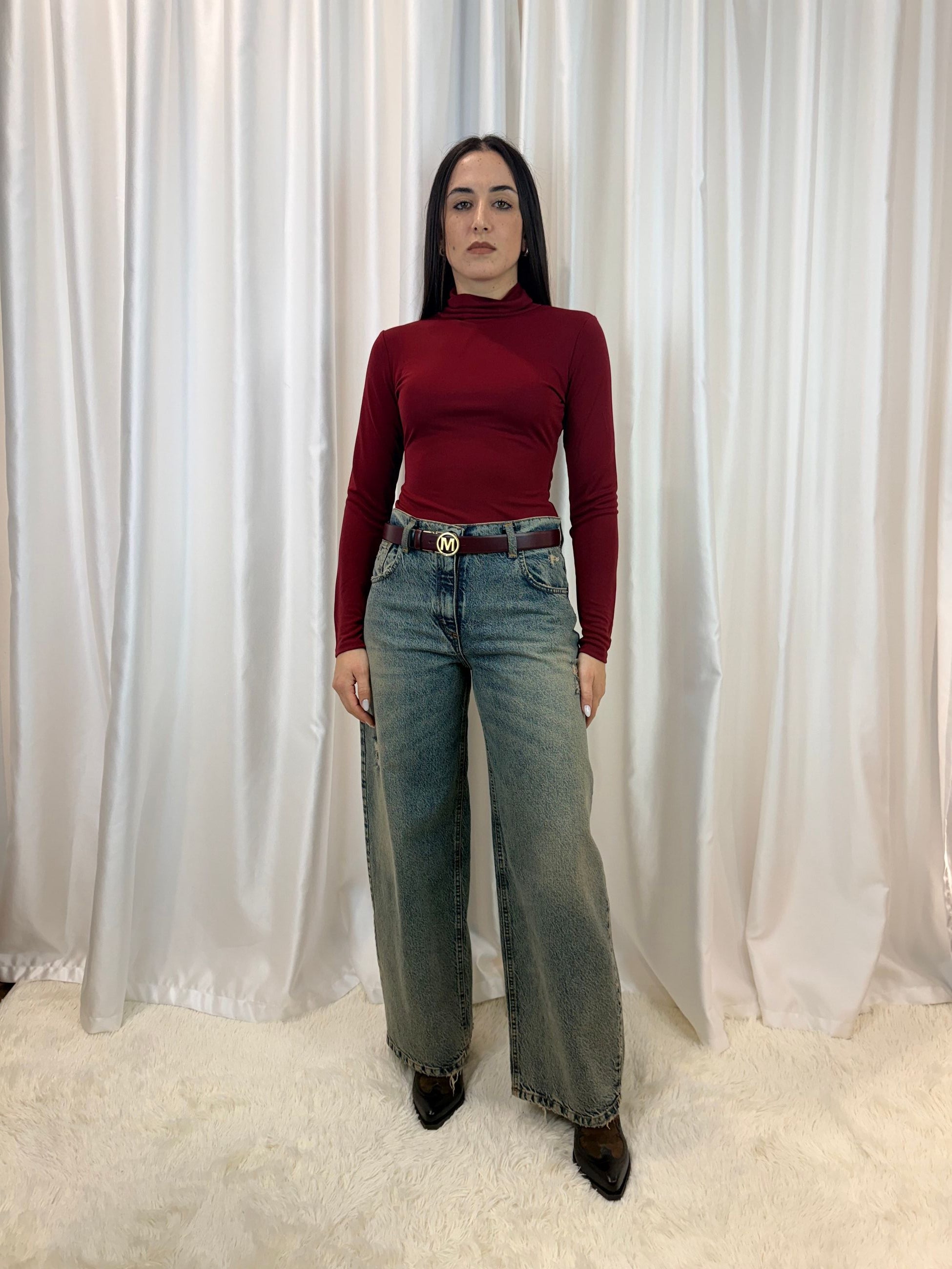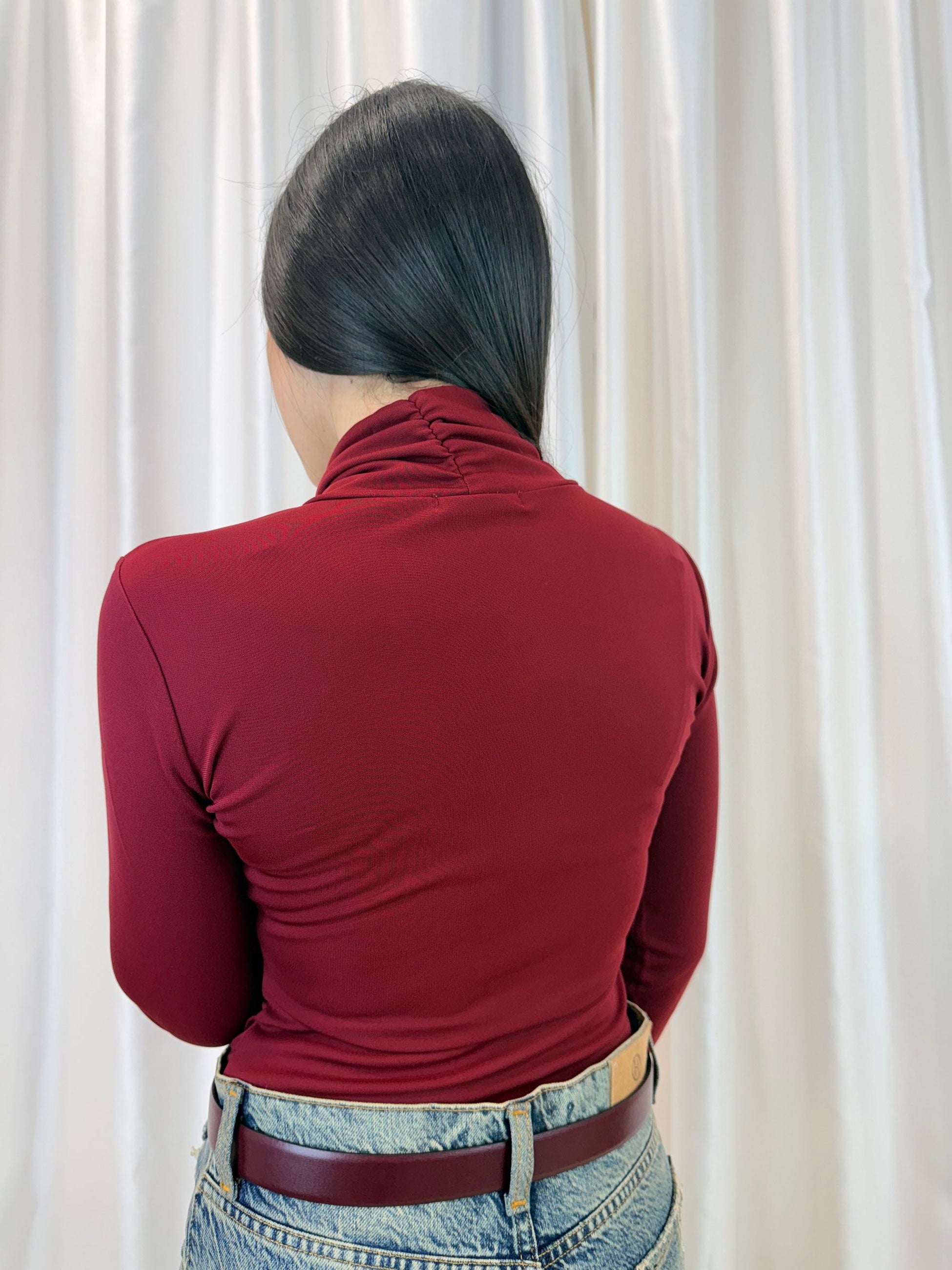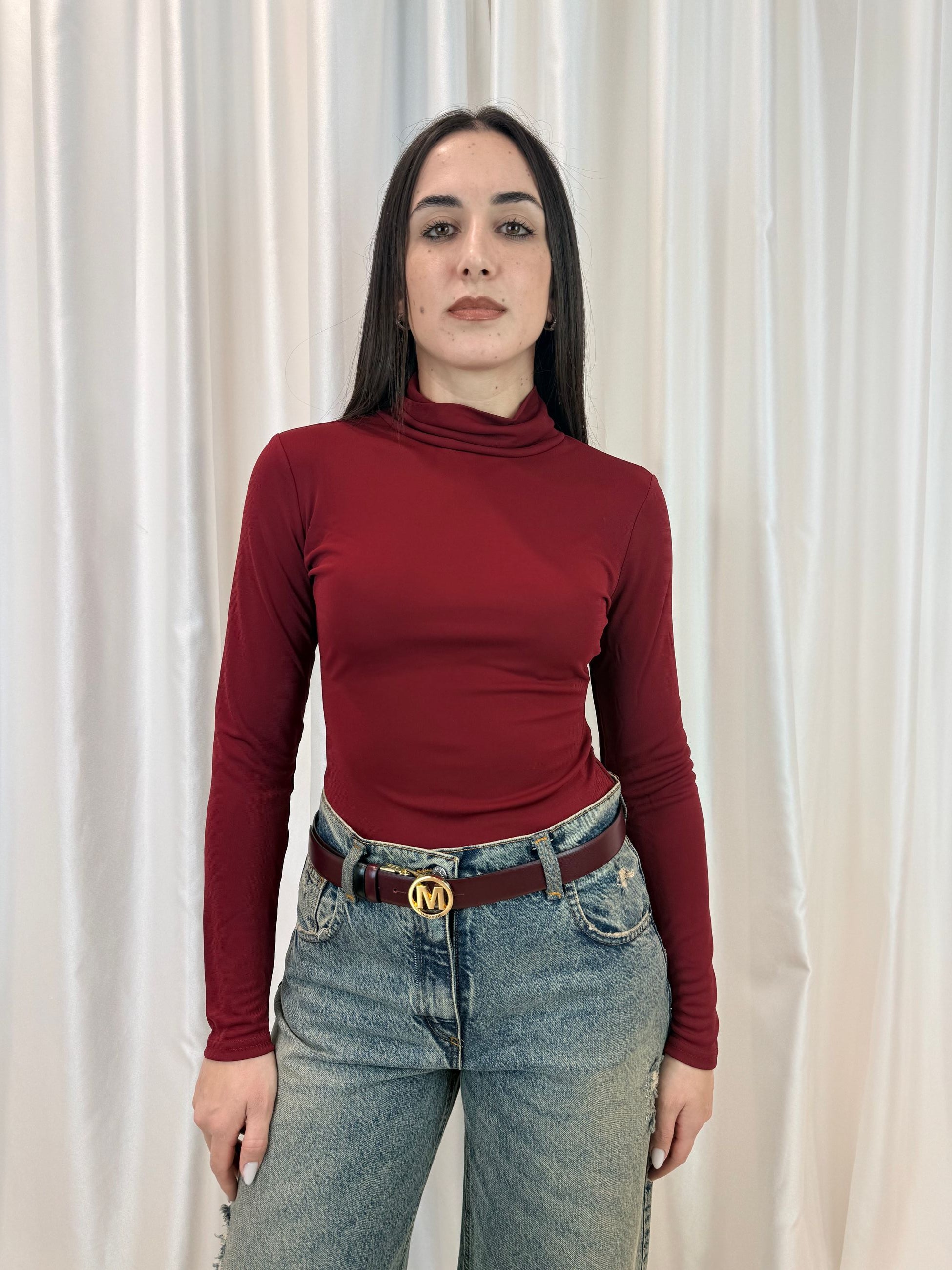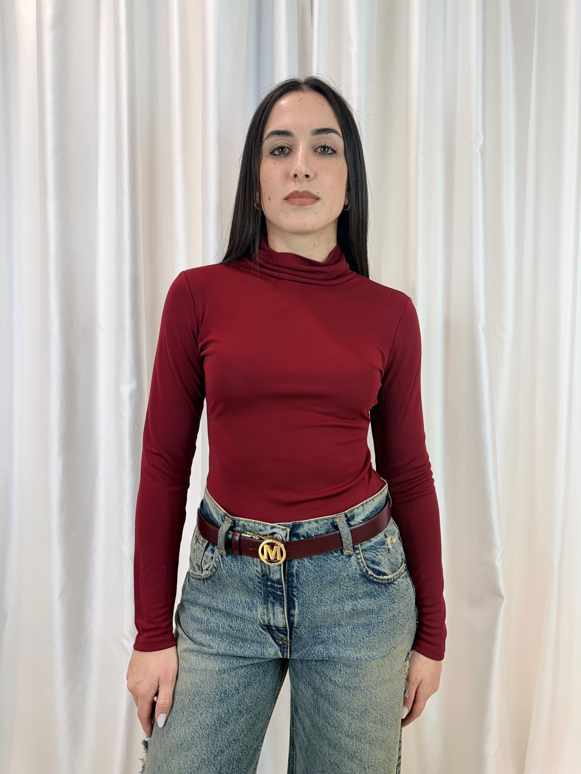 Body donna a maniche lunghe con collo alto bordeaux – Glamorous