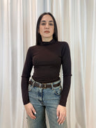 Body donna a maniche lunghe con collo alto cioccolato – Glamorous