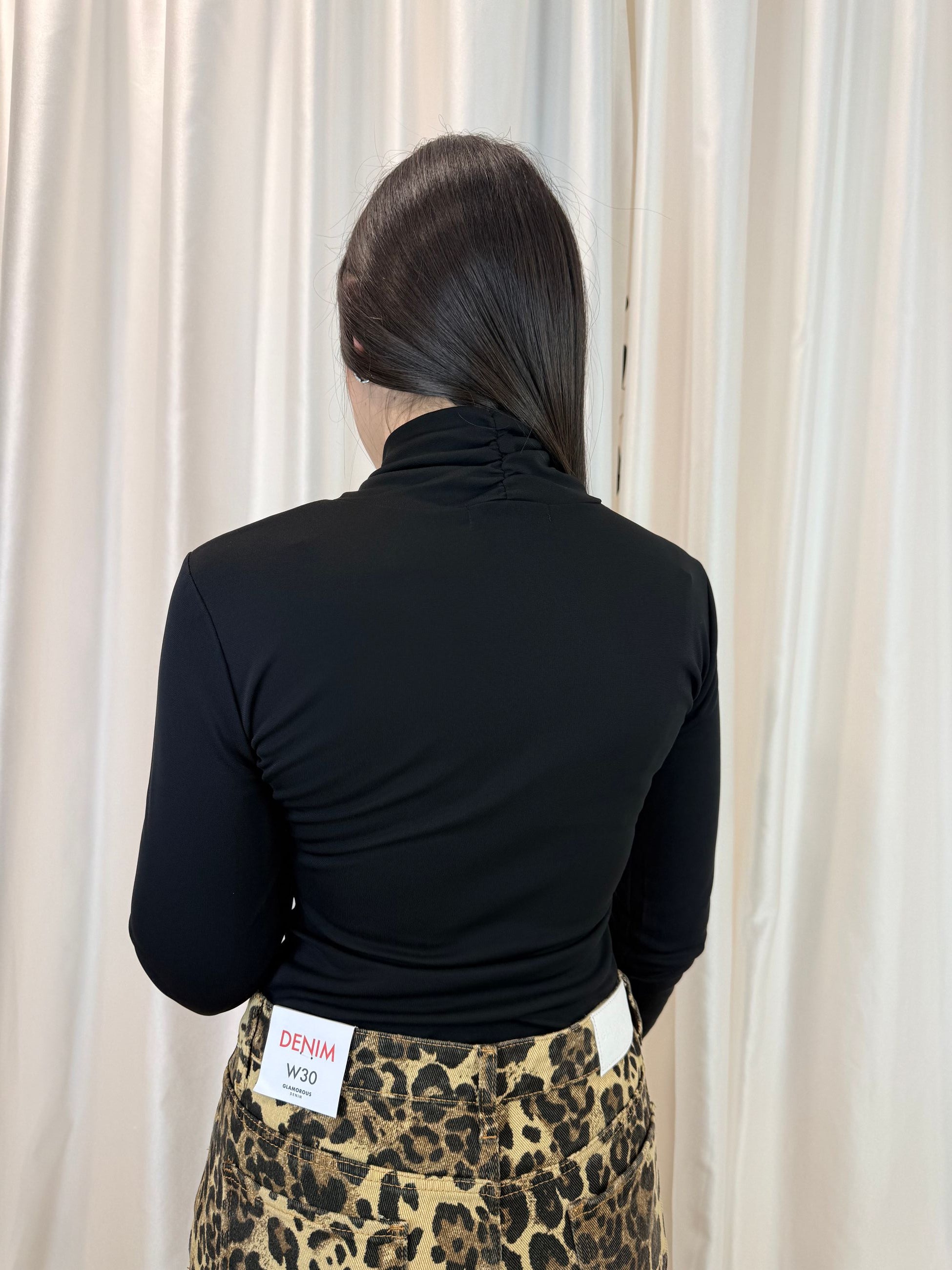 Body donna a maniche lunghe con collo alto nero – Glamorous