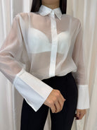 ✔️ Colletto classico e chiusura frontale con bottoni tono su tono