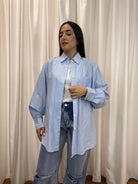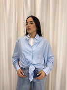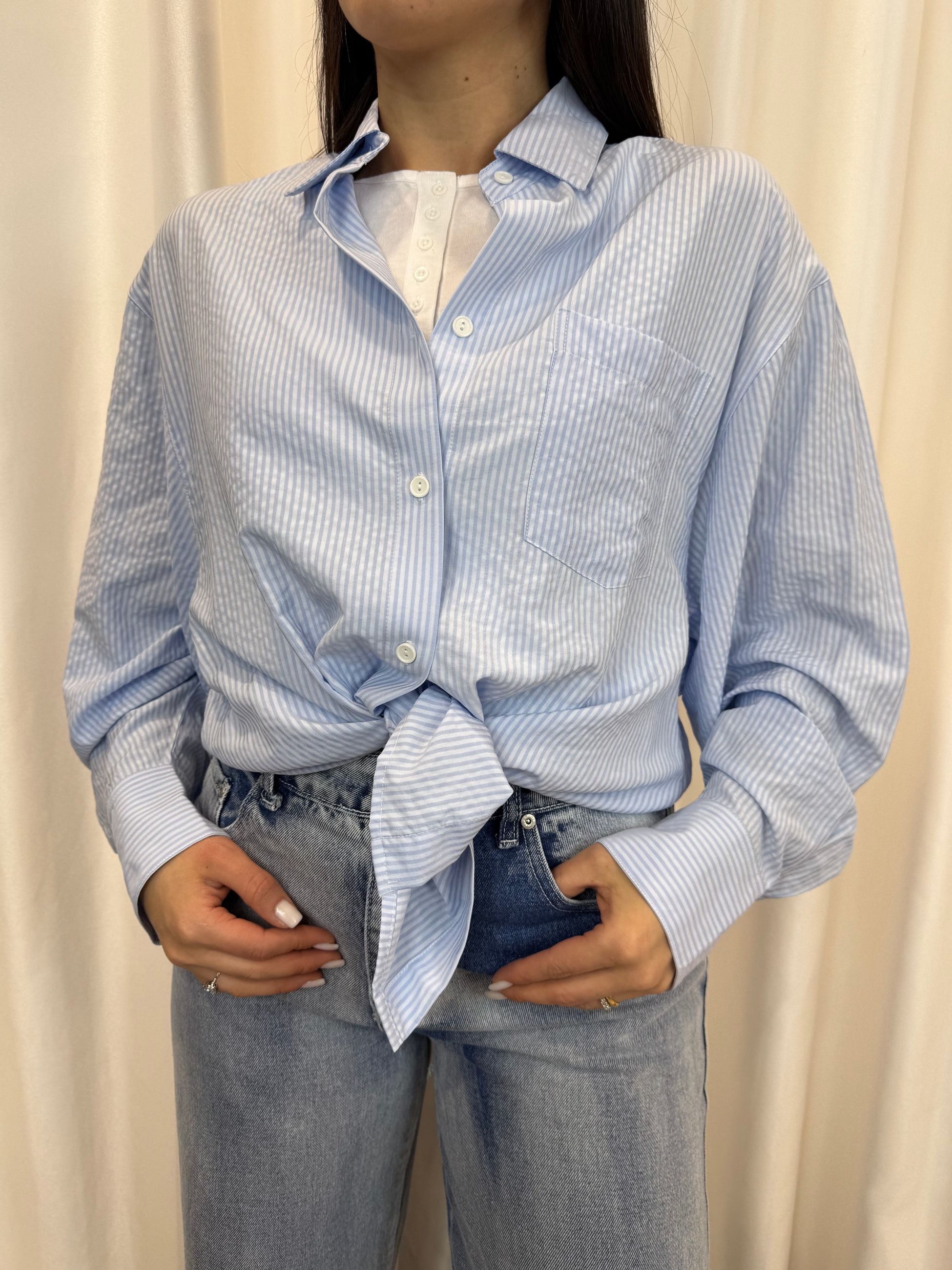 Un grande classico rivisitato in chiave moderna! Questa camicia a righe azzurre è il capo jolly per look casual e sofisticati. Perfetta da indossare aperta su una t-shirt o chiusa con un nodo in vita.