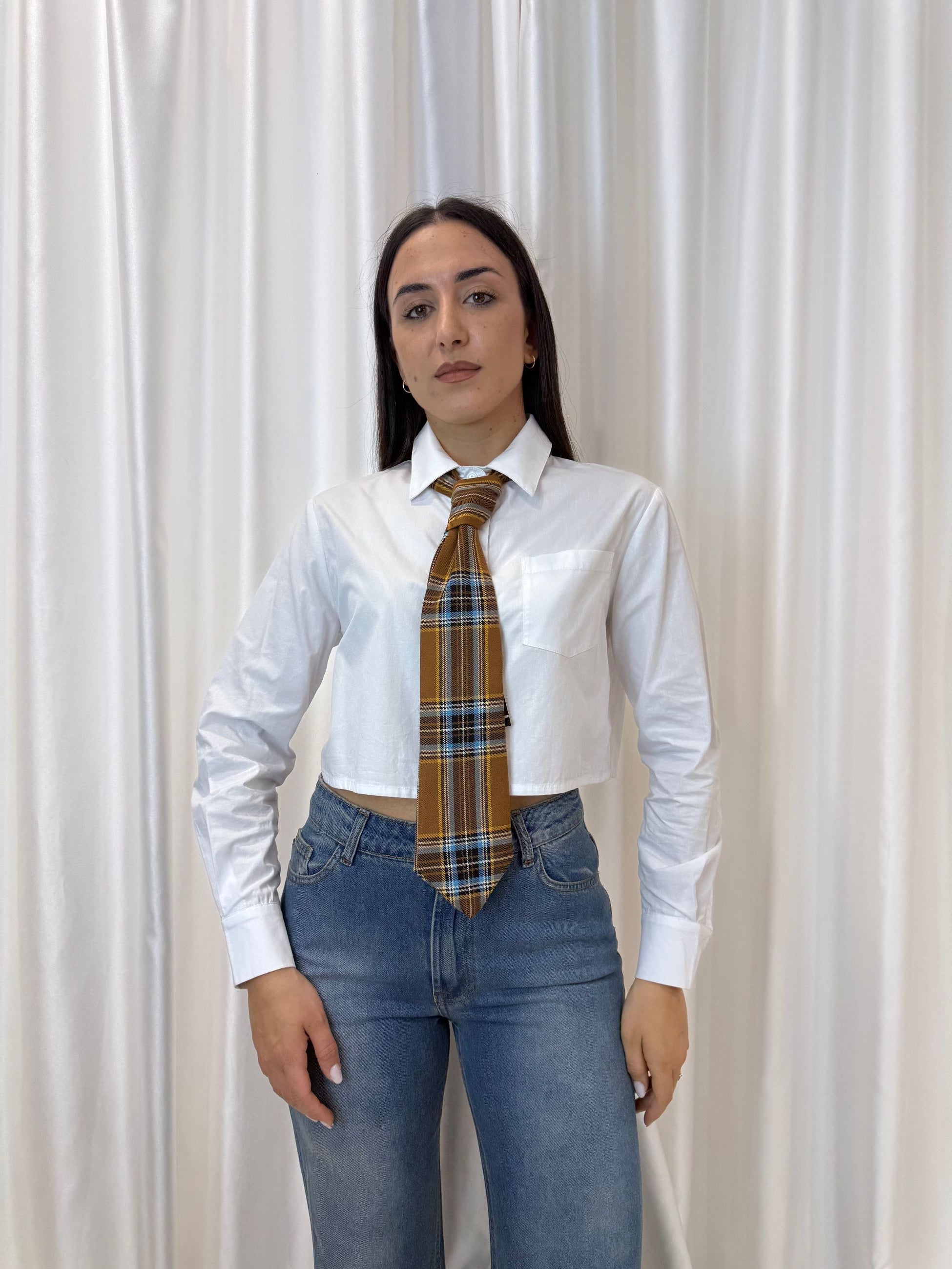 Un must-have fresco e contemporaneo! Questa camicia corta con colletto classico è perfetta per dare un twist moderno ai tuoi outfit casual o eleganti.