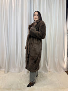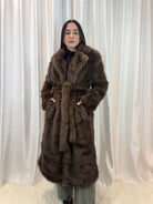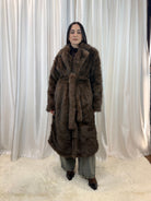 Ecopelliccia lunga marrone con cintura – Glamorous