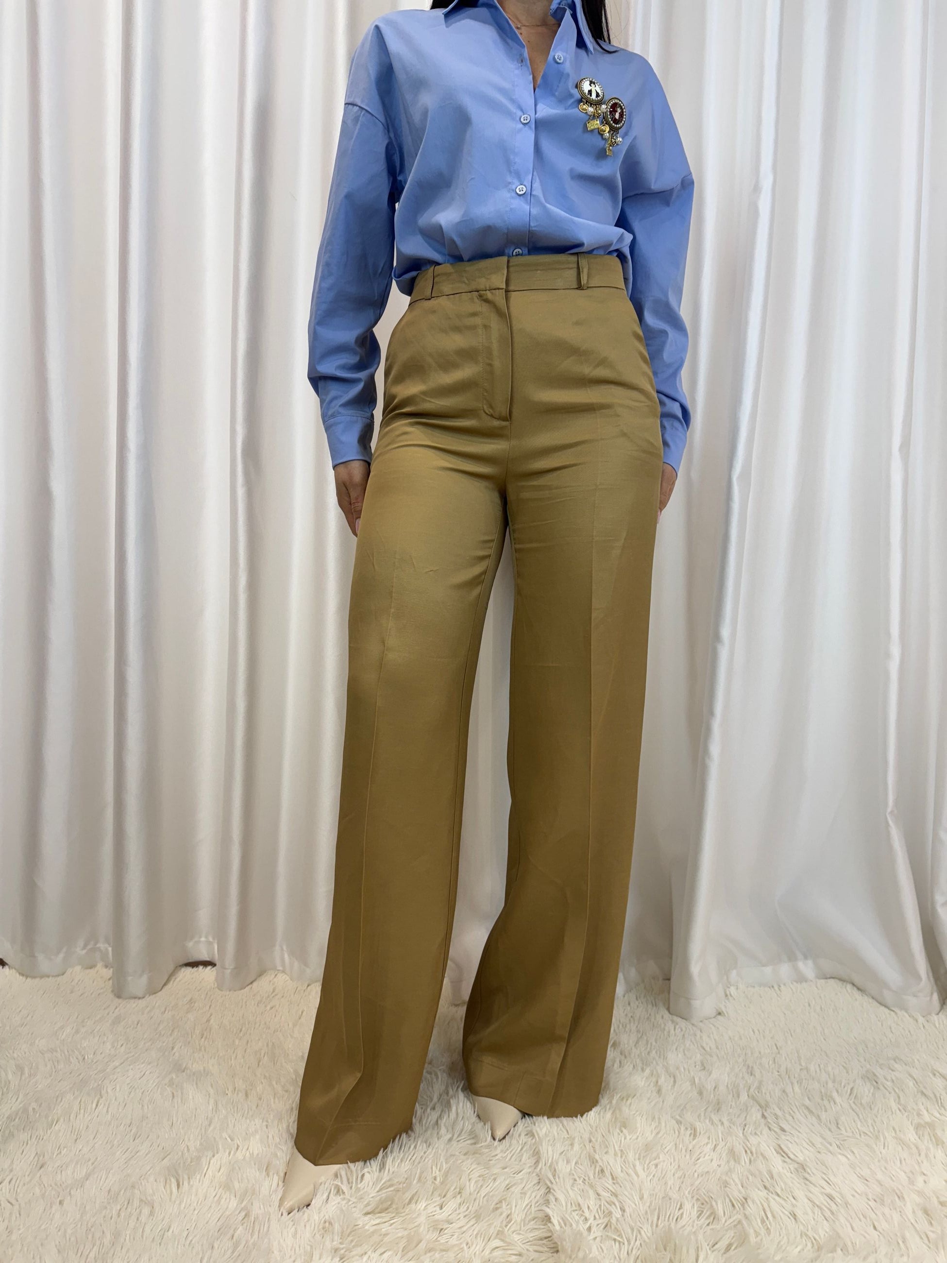 Pantalone palazzo miele viscosa e lino - Haveone